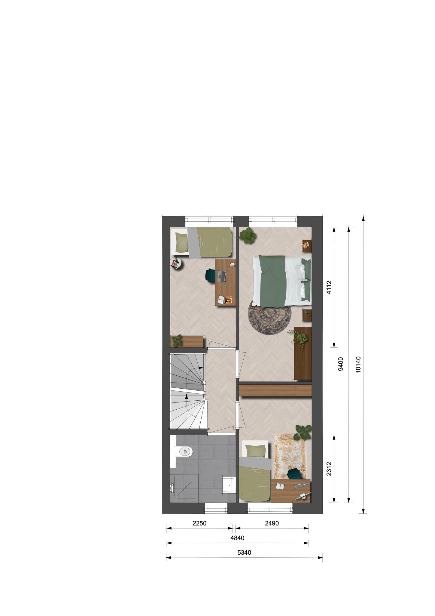 De eerste verdieping van deze woning heeft drie slaapkamers en een badkamer met een douche, een wastafel en een tweede wandcloset. Op zolder staan de technische installaties en is ook de aansluiting voor de wasmachine. De accentwoning heeft een prachtig accent in de voorgevel. Daarom heb je op zolder extra ruimte. Heb je eigen wensen? Geen probleem! Laat je verrassen door onze flexibiliteit en schroom niet om jouw eigen ideeën bij ons kenbaar te maken.