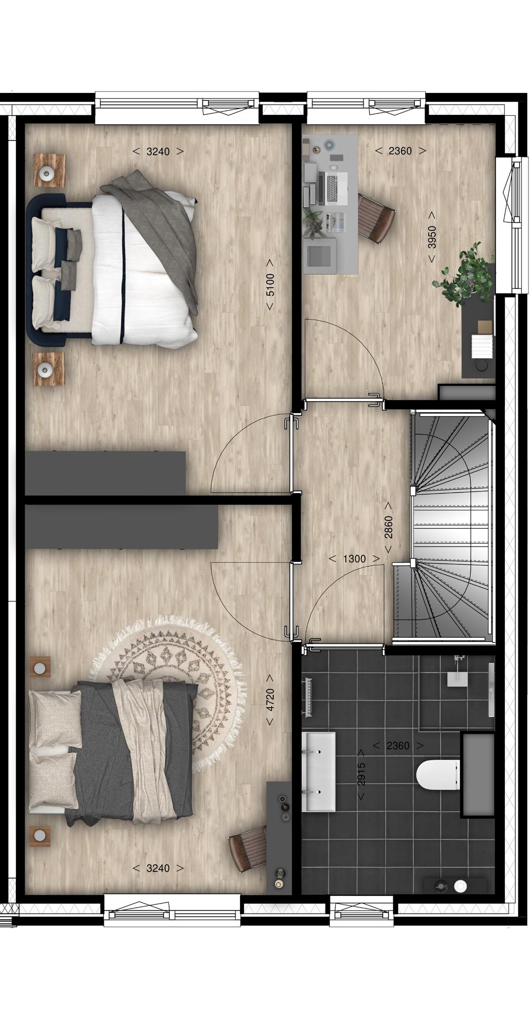 Er zijn 2 verschillende types met verschillende afmetingen, welke met een unieke ligging in een praktische indeling.