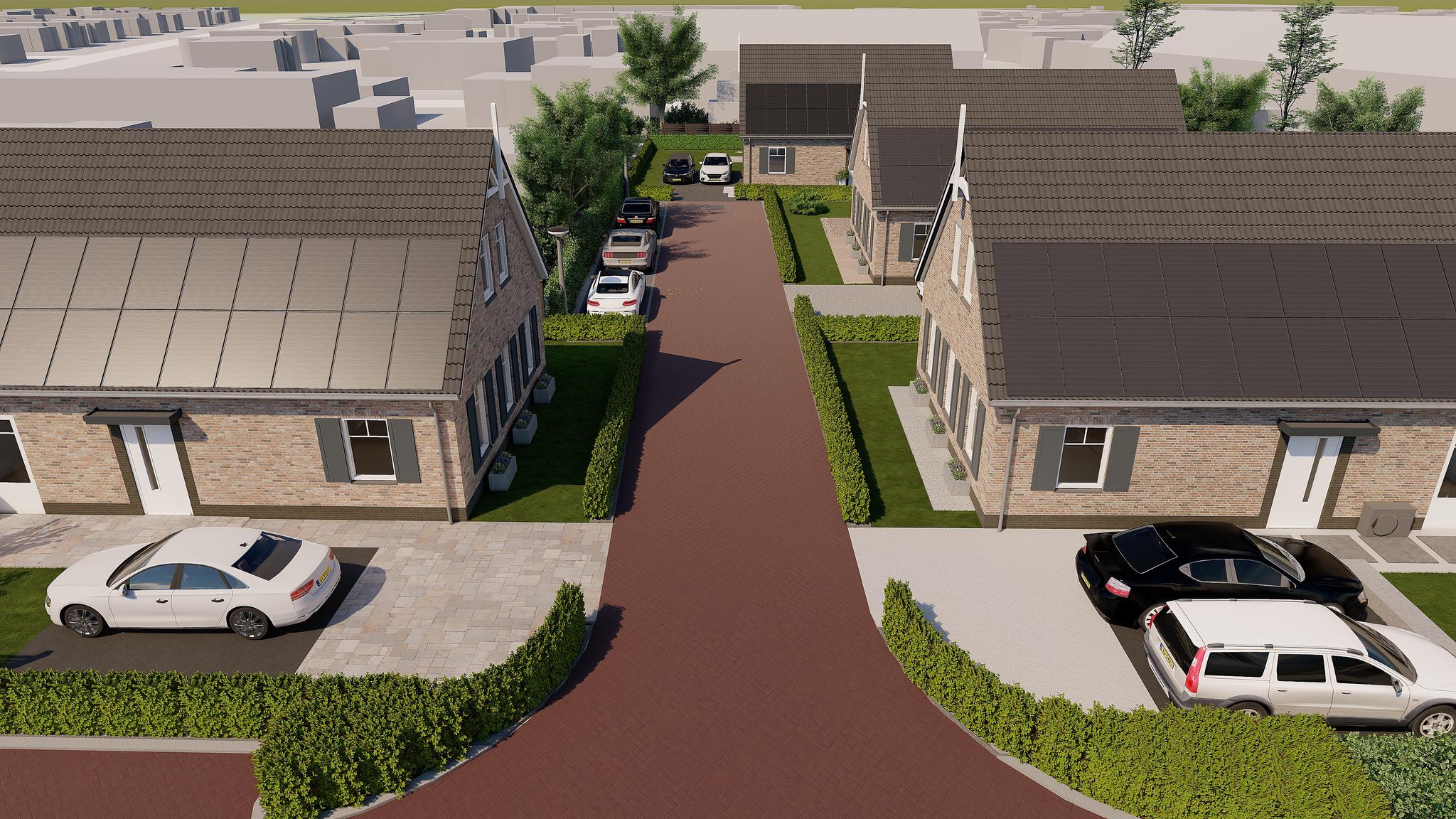 De percelen rondom de villa's zijn eveneens royaal te noemen. Daarnaast is iedere woning voorzien van twee parkeerplekken op eigen terrein, ideaal! Tevens worden er 3 extra (bewoners)parkeerplekken gerealiseerd langs het laantje.