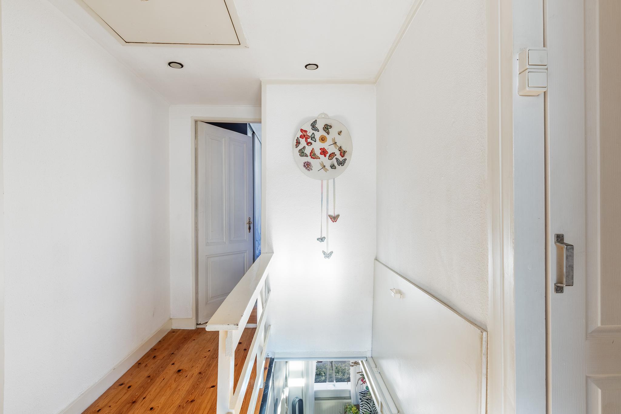 Overloop met toegang tot de slaapkamers en badkamer, tevens bevindt zich hier het luik met vlizotrap naar de vliering. Vanaf de overloop is het trapgat middels een luik af te sluiten.