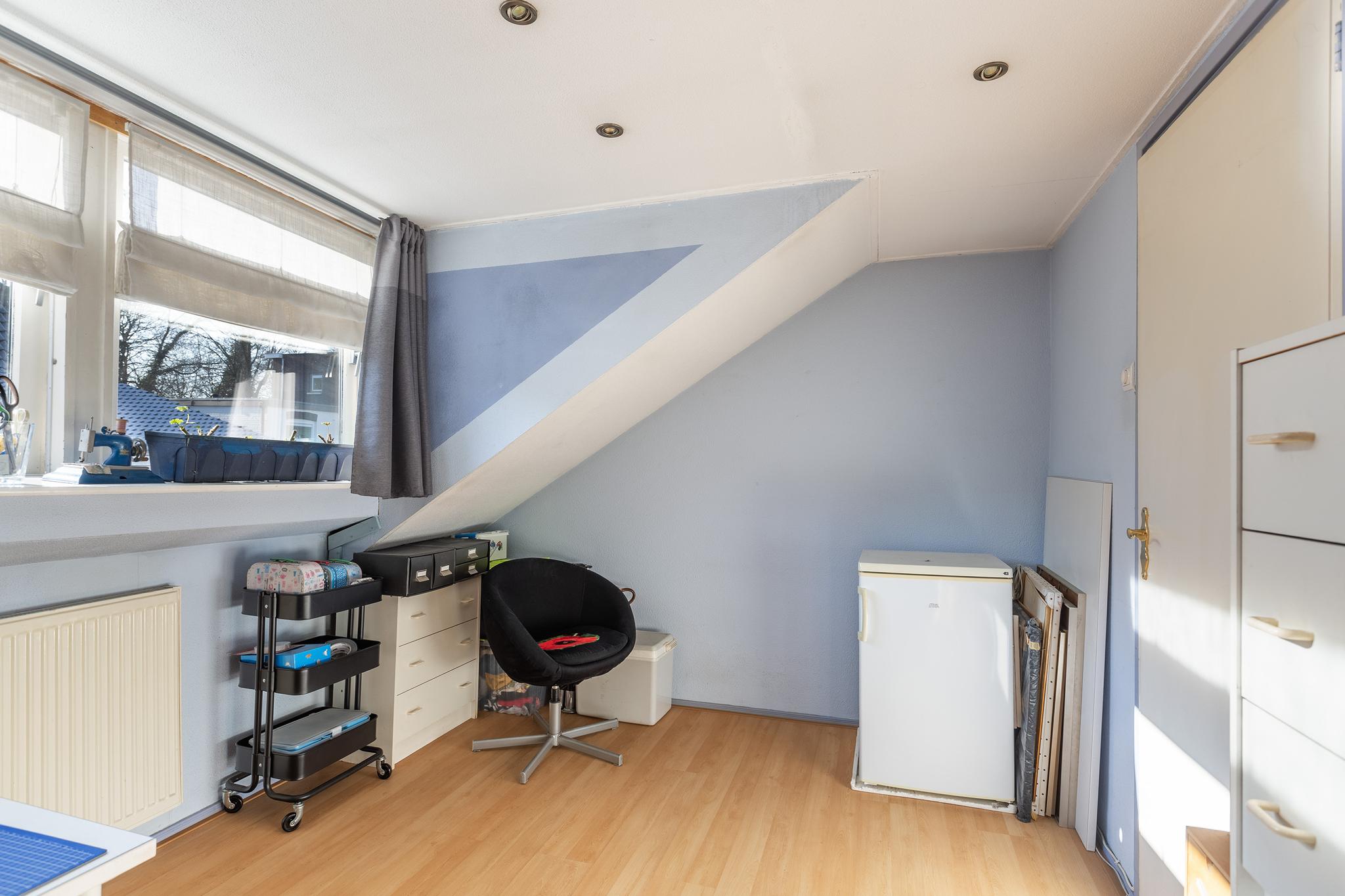 Slaapkamer aan achterzijde, deze kamer is door de grote dakkapel heerlijk ruim en voorzien van inbouwspots.