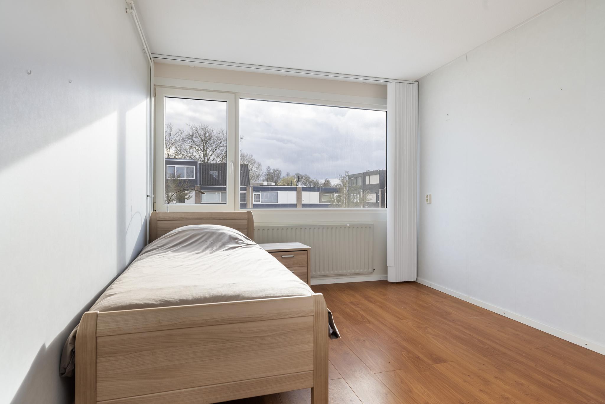 Slaapkamer 2 is afgewerkt met laminaat en behang wanden.