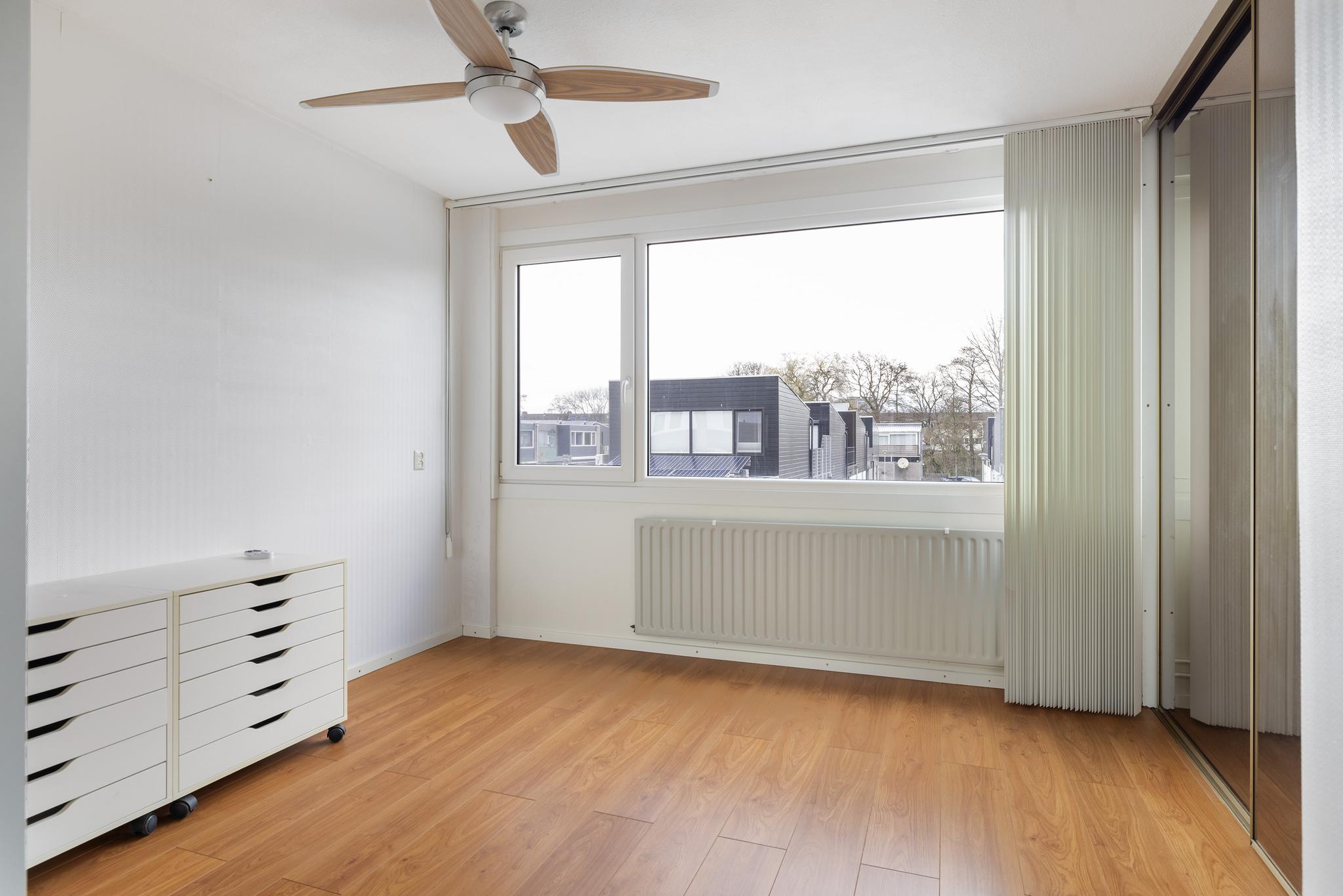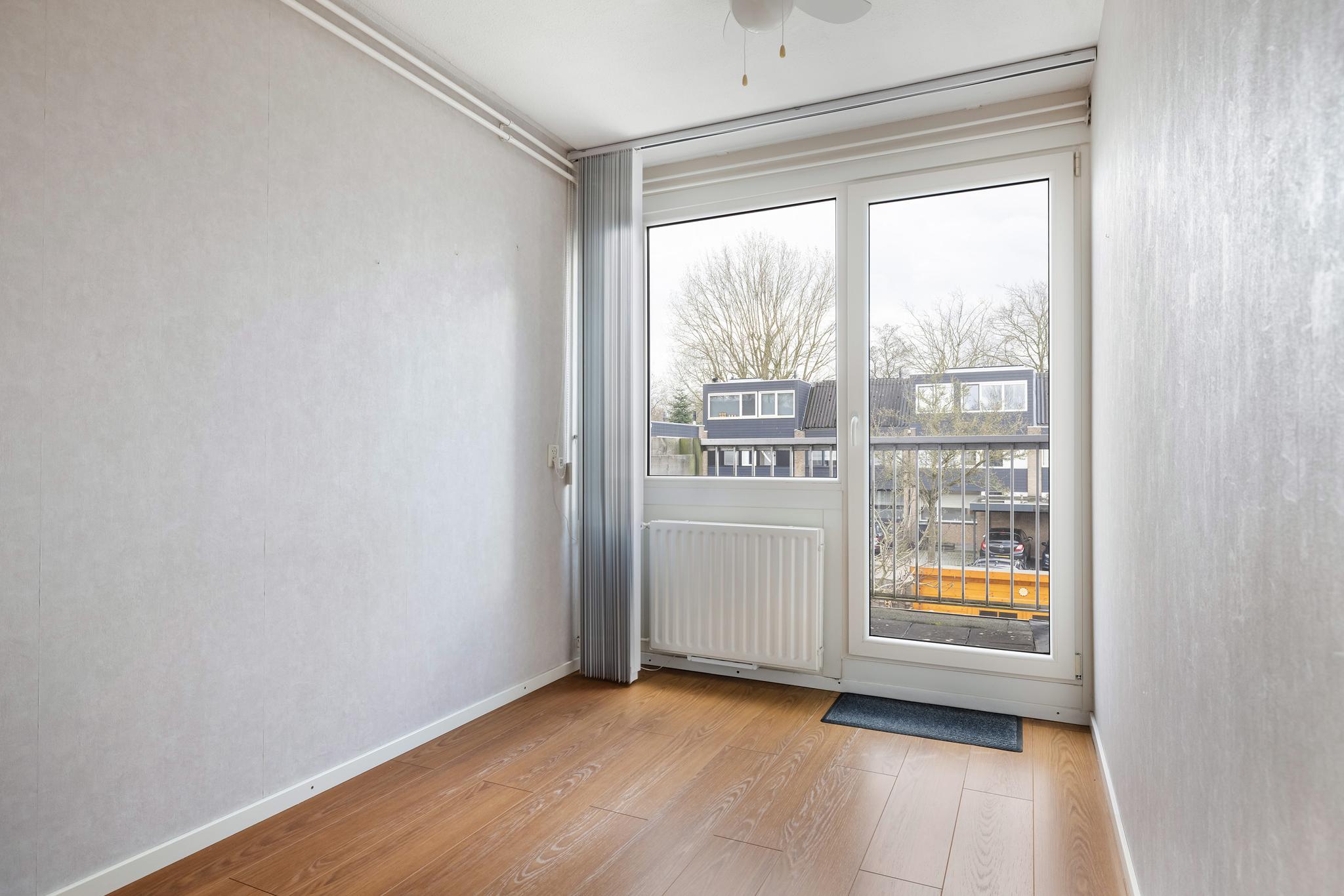 Slaapkamer 3 heeft een eigen balkon en een 2 deurs vaste schuifkast.