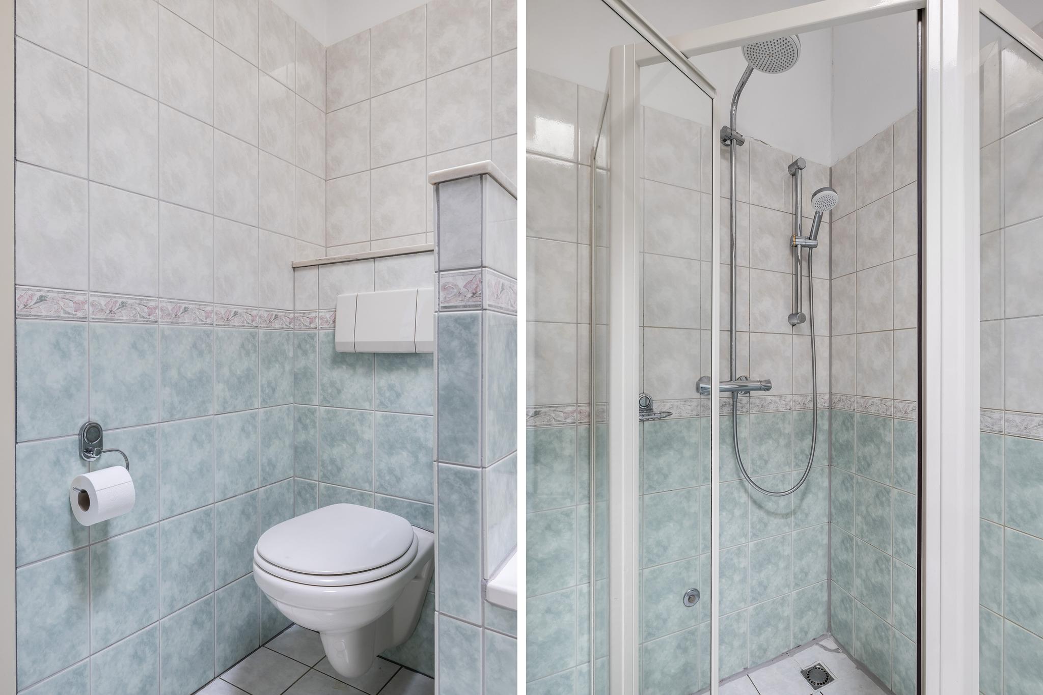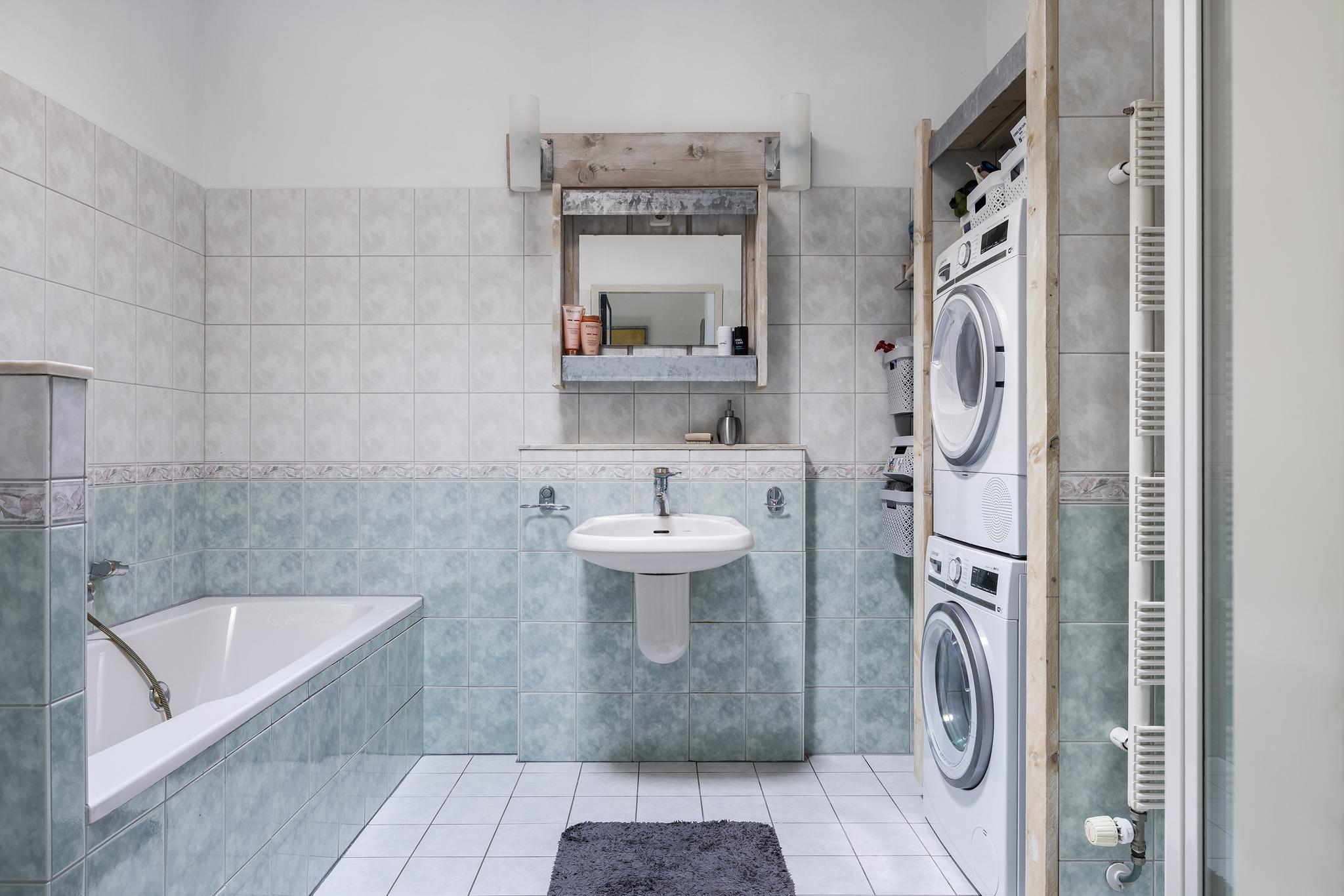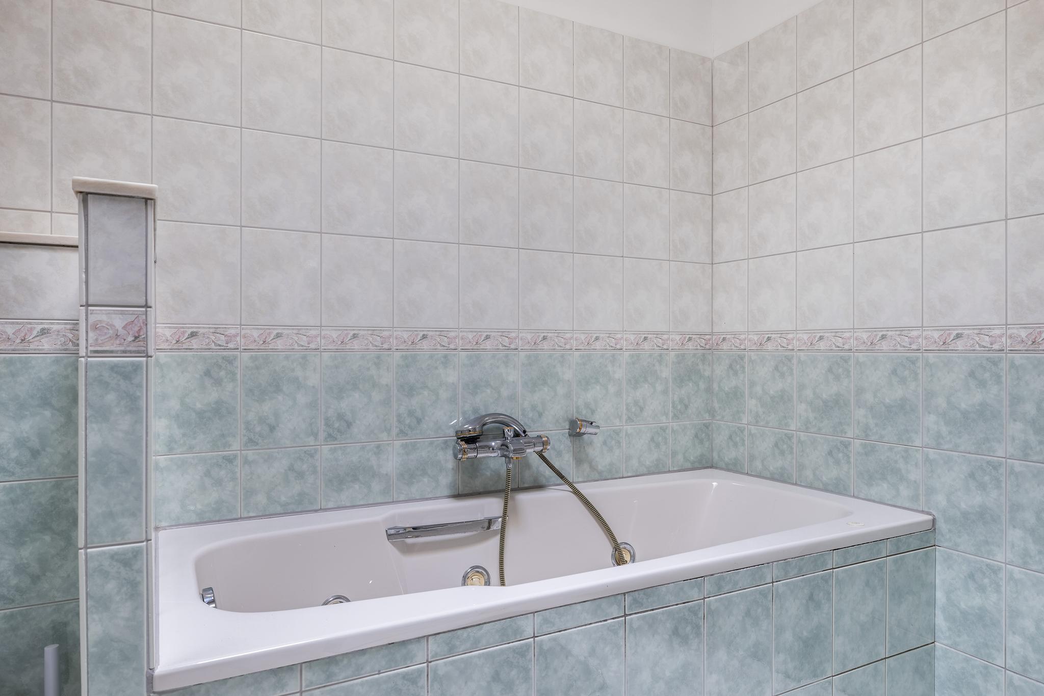 De inpandige badkamer verdient een update maar is bruikbaar! Hij is goed groot en op dit moment voorzien van een douche met thermostaatkraan, bad met jets (defect), wastafel, vrijhangend toilet, was aansluiting, vloerverwarming en een dakkoepel voor extra licht.
