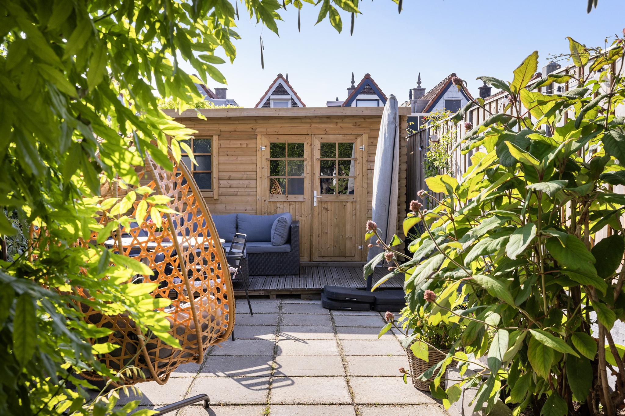 De achtertuin is gelegen op het zuidoosten en is meer dan 10 meter diep, hoe fijn is dat?! Een gezellig zitje bij de keuken, een lekkere lounge set of grote eettafel achterin de tuin, hier past het allemaal! De tuin is lekker groen door de fraai begroeide pergola en de vaste perken. Achterin de tuin is een mooie berging geplaatst, voorzien van elektra.