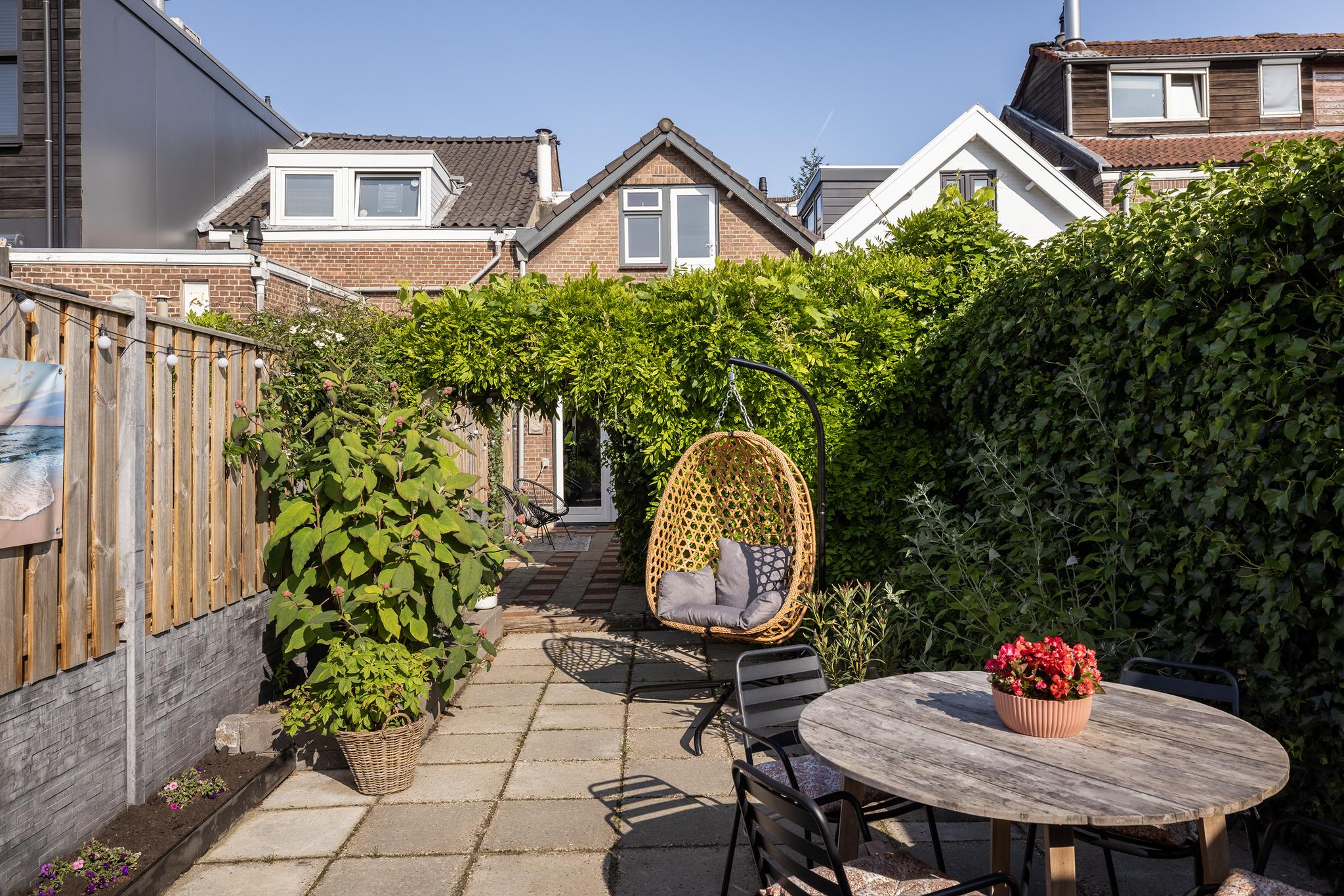 En dan de heerlijke achtertuin... Je pakt er de eerste zonnestralen en kunt vervolgens de hele dag blijven genieten van het zonnetje, de rust en het groen.