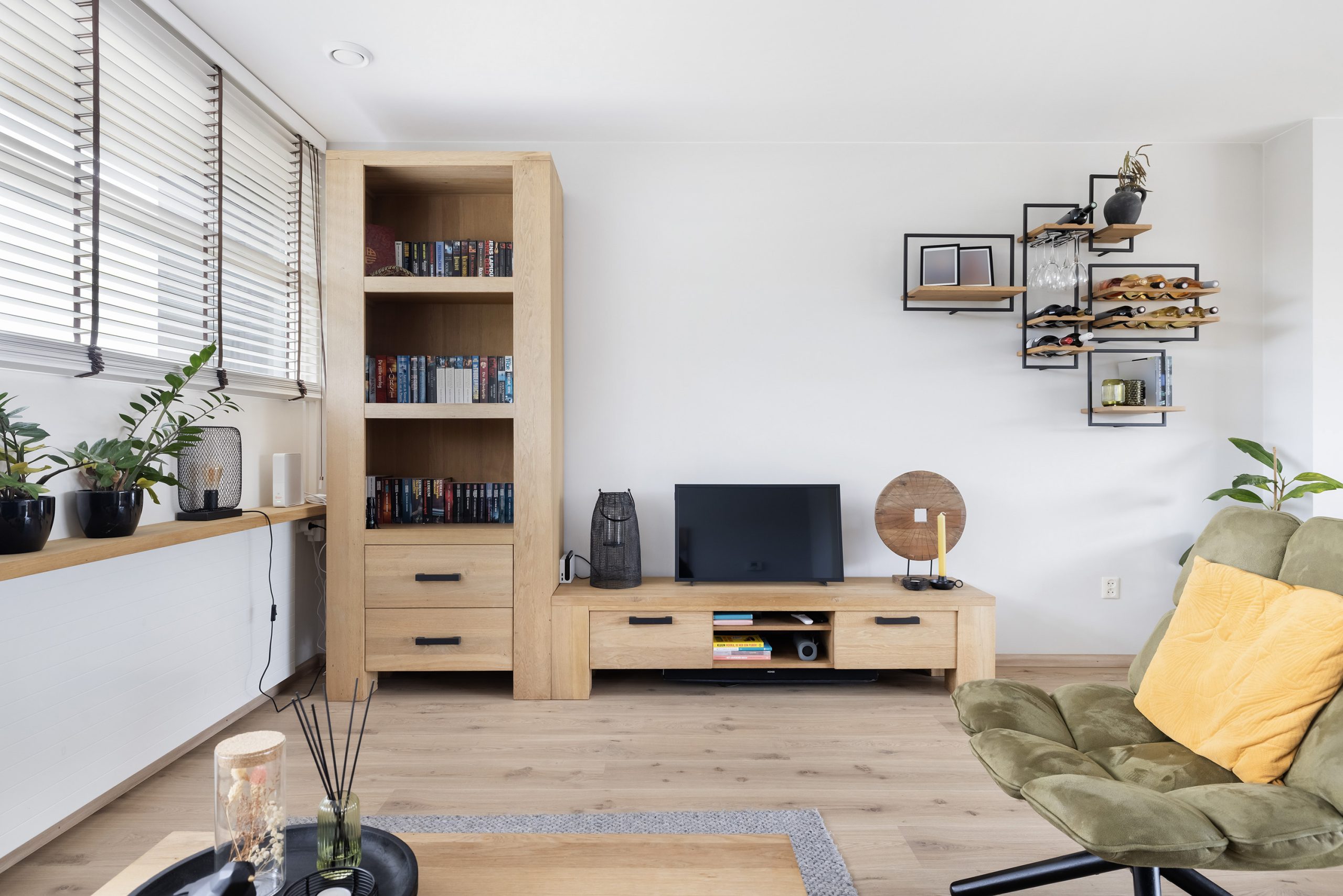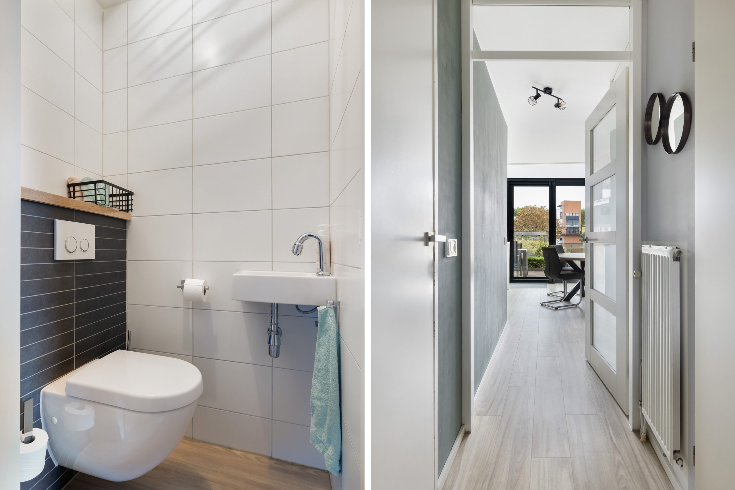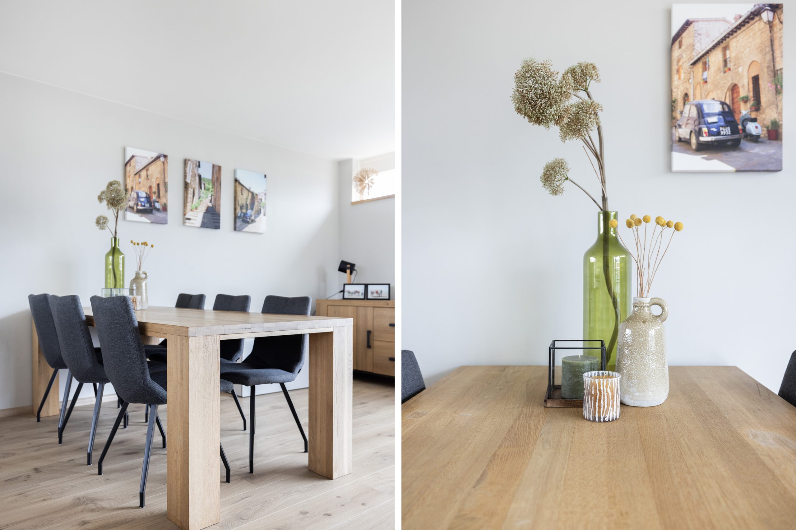 Binnen is het al net zo’n feestje. De speelse indeling zorgt voor een verrassend ruimtelijk gevoel. Je komt binnen, loopt via de hal naar de moderne keuken en daar begint het wegdromen al. Door de grote schuifdeuren stap je zó de tuin in, richting de vlonder aan het water. Even zitten, eendjes kijken, een drankje erbij... Meer heb je eigenlijk niet nodig, hier word je al helemaal zen.