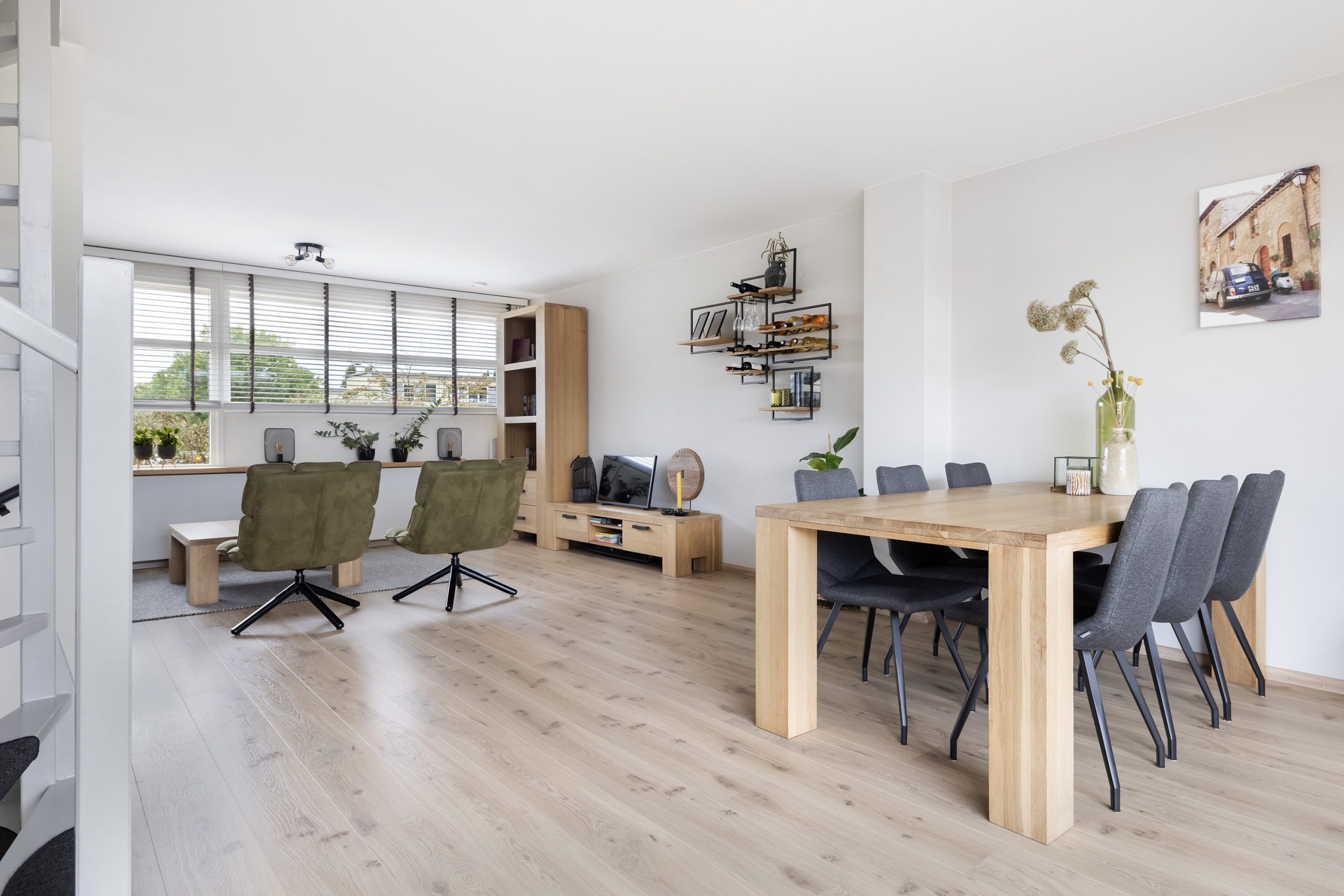 Deze verdieping is in zijn geheel woonkamer, met andere woorden: enorm ruim, licht en met prachtig uitzicht over het water aan de achterzijde en groen aan de voorzijde.