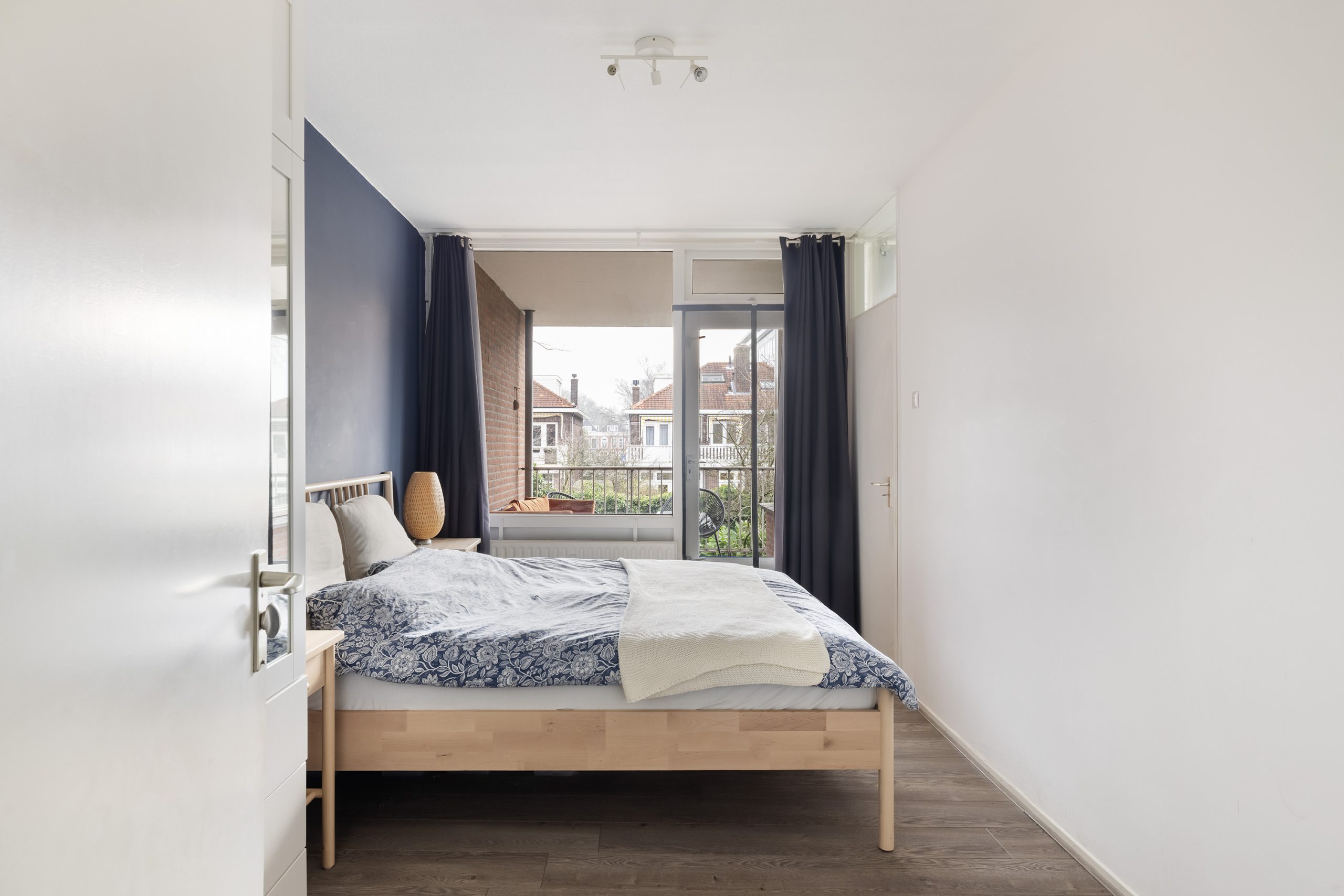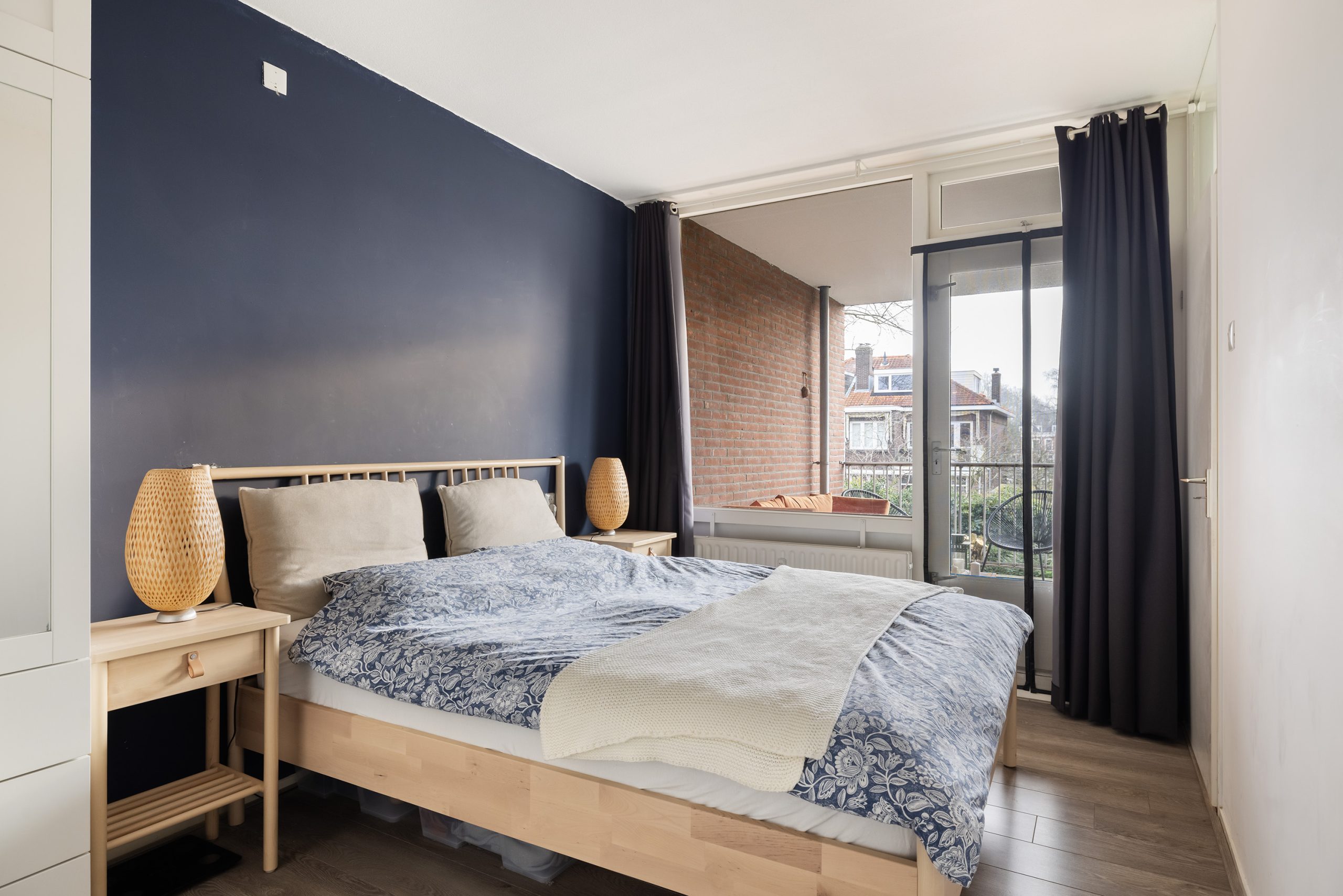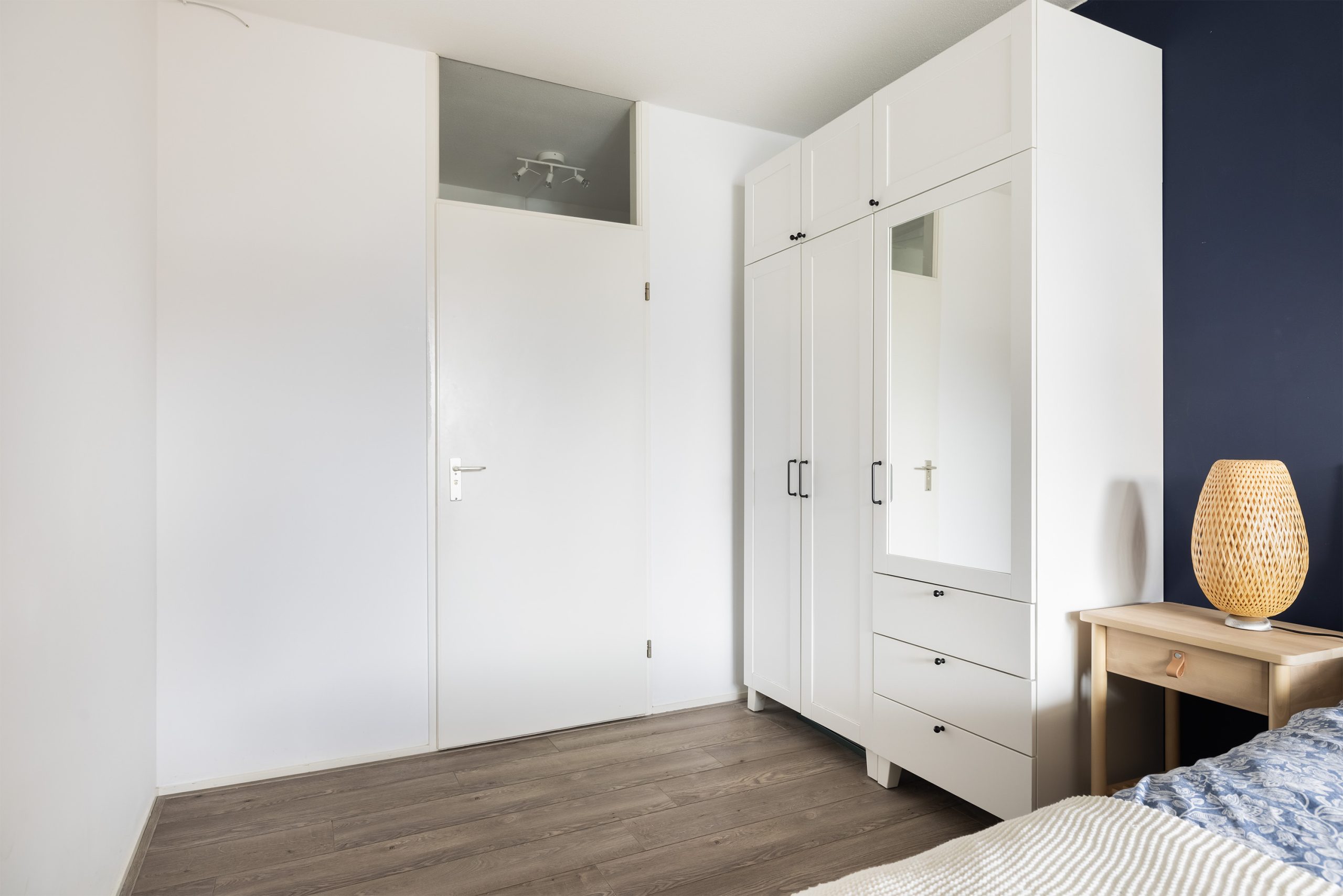 De ruime slaapkamer biedt genoeg ruimte voor een groot bed en kastenwand. De slaapkamer is voorzien van een laminaatvloer en stucwerk wandafwerking en biedt toegang tot het royale balkon. Tevens is de badkamer begaanbaar vanuit deze kamer.