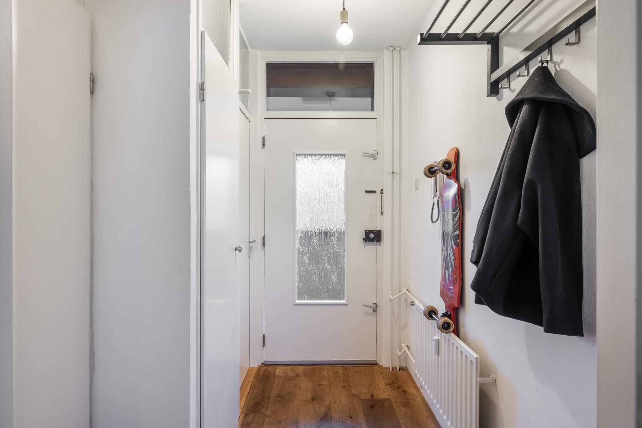 Entree in de hal met inpandige berging, meterkast, toegang tot de badkamer en de woonkamer.