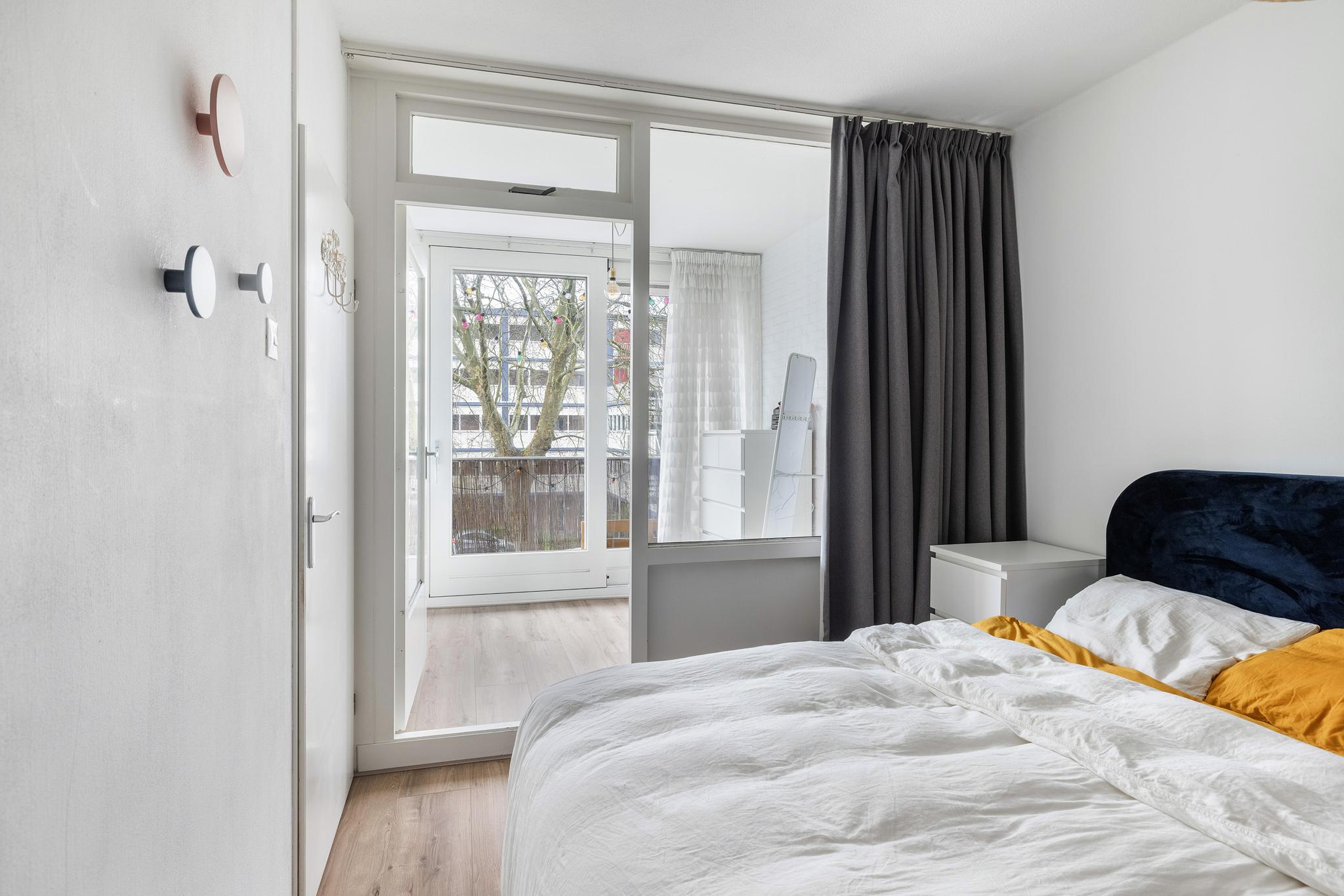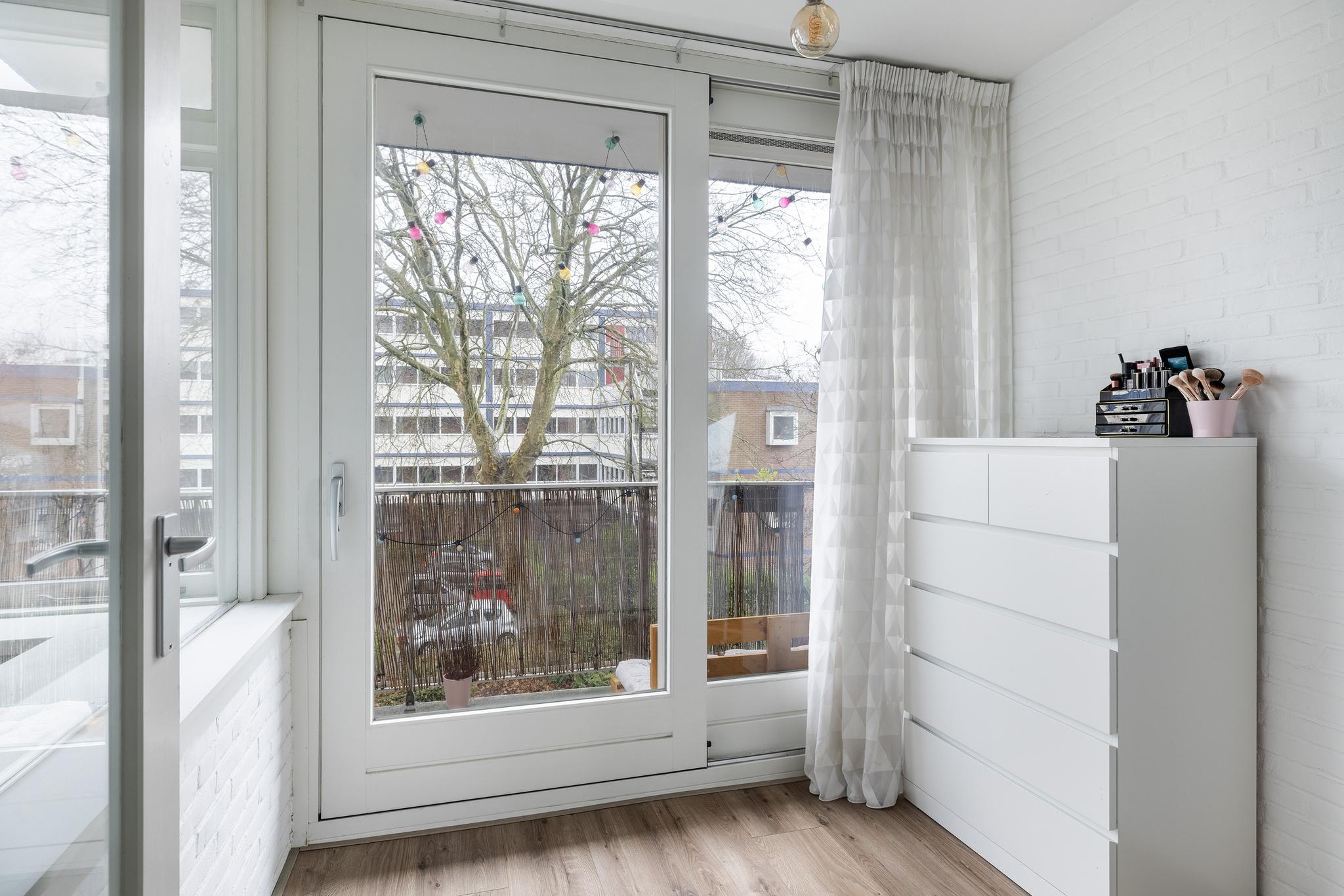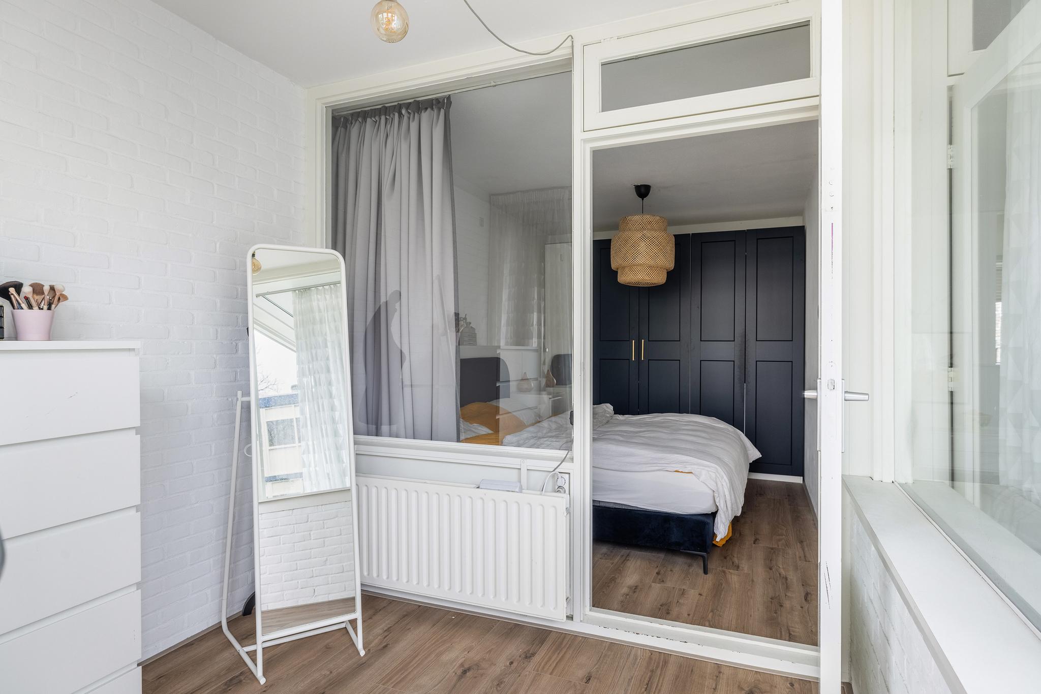 Vanuit de slaapkamer is via een deur de loggia bereikbaar en van daaruit kun je via de schuifpui het balkon op. De loggia kun je dus als tuinkamer gebruiken, als kantoor of als heerlijke extra zit in de winter door de pui dicht te houden.