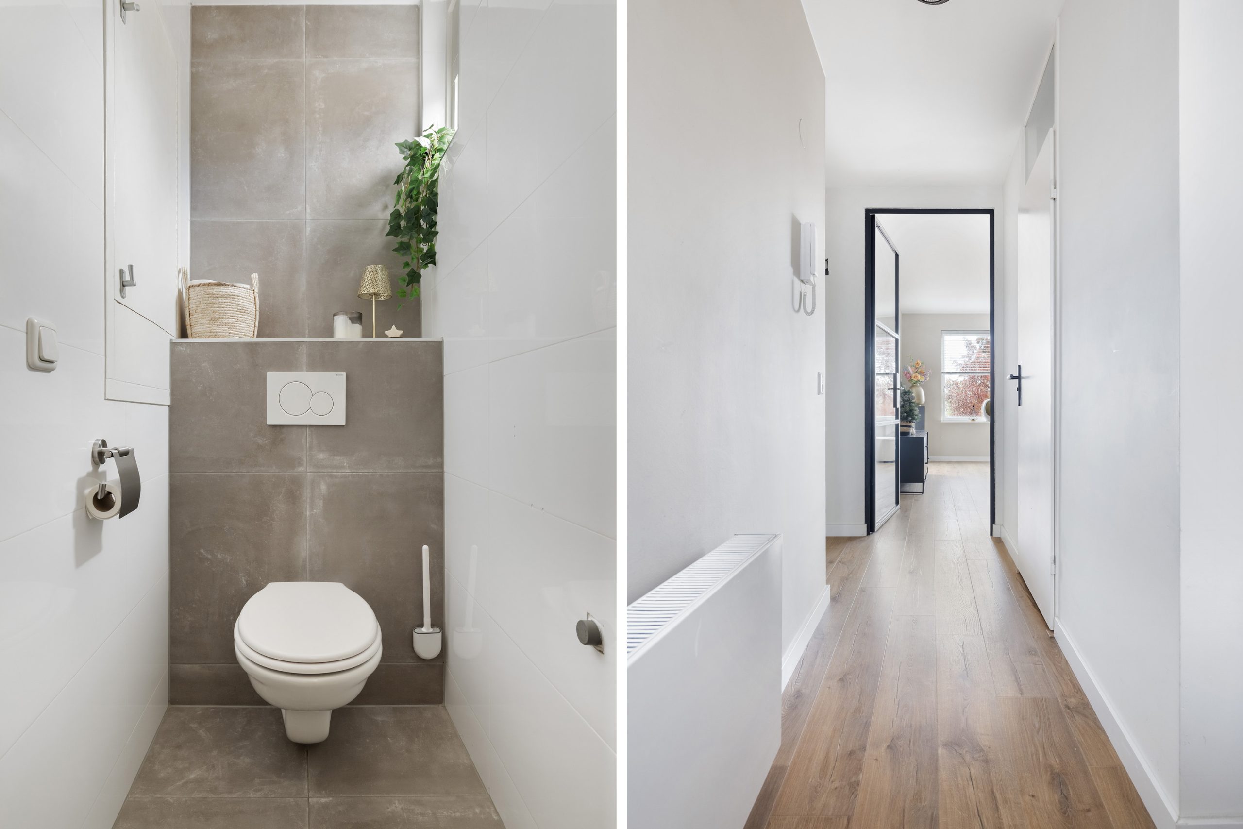 Ruime hal met meterkast, toiletruimte en toegang naar alle ruimtes.