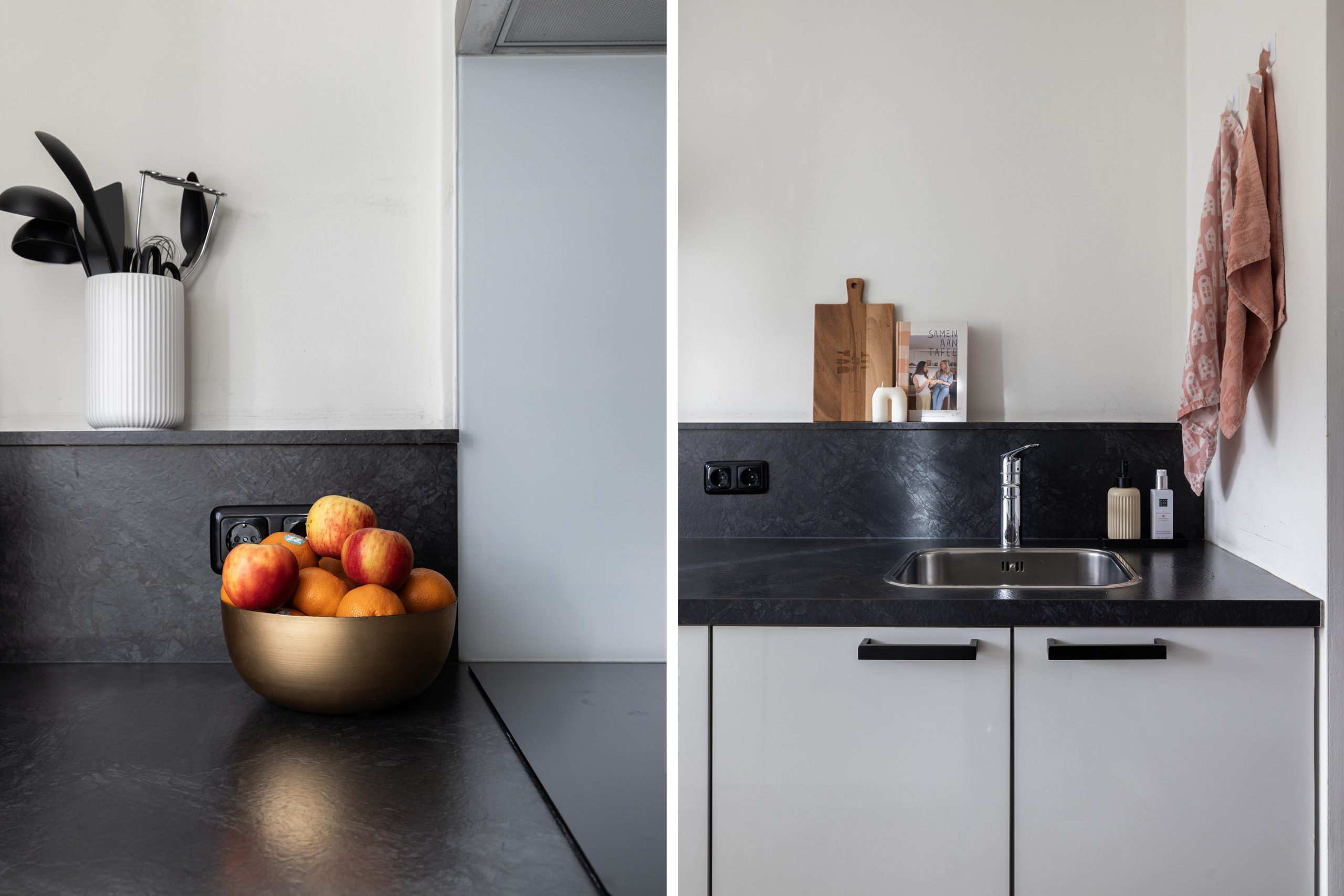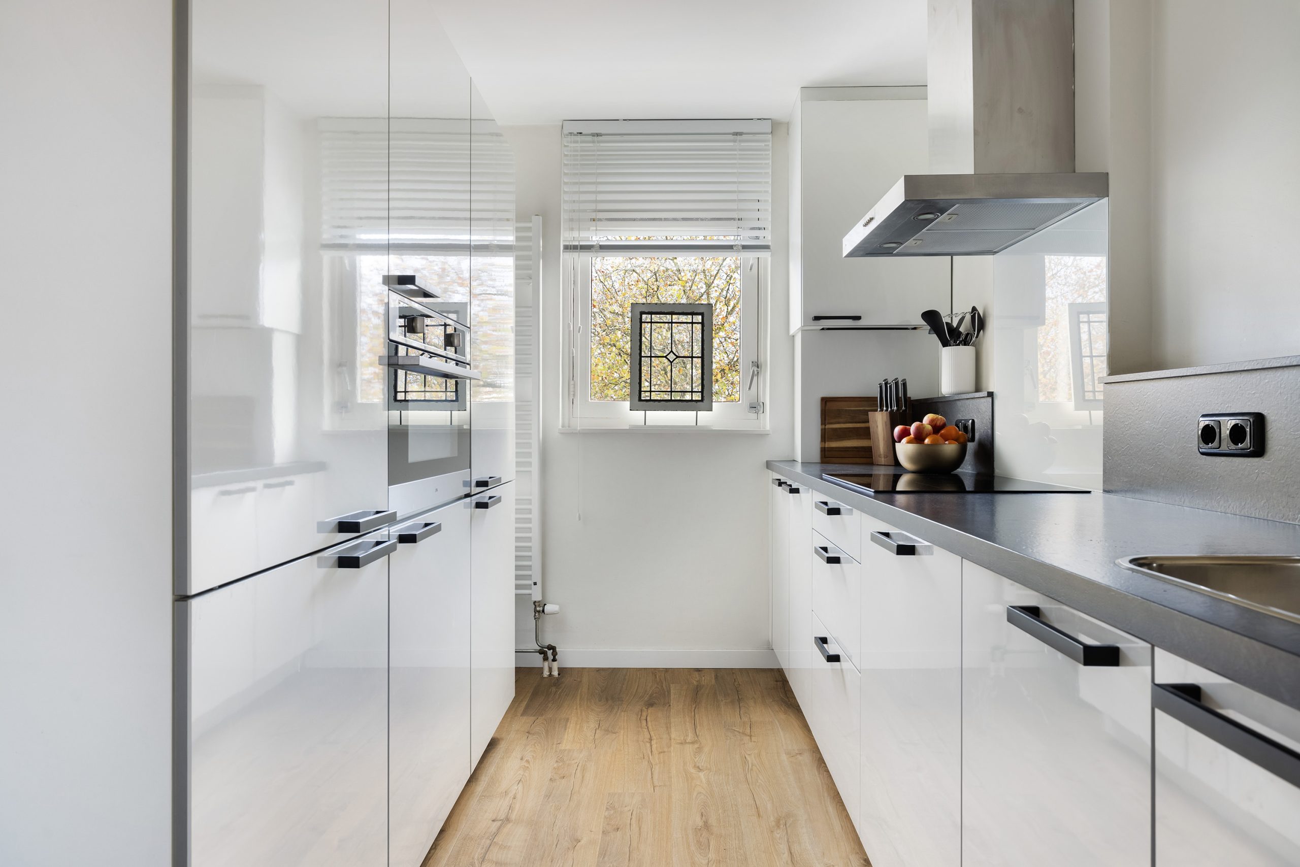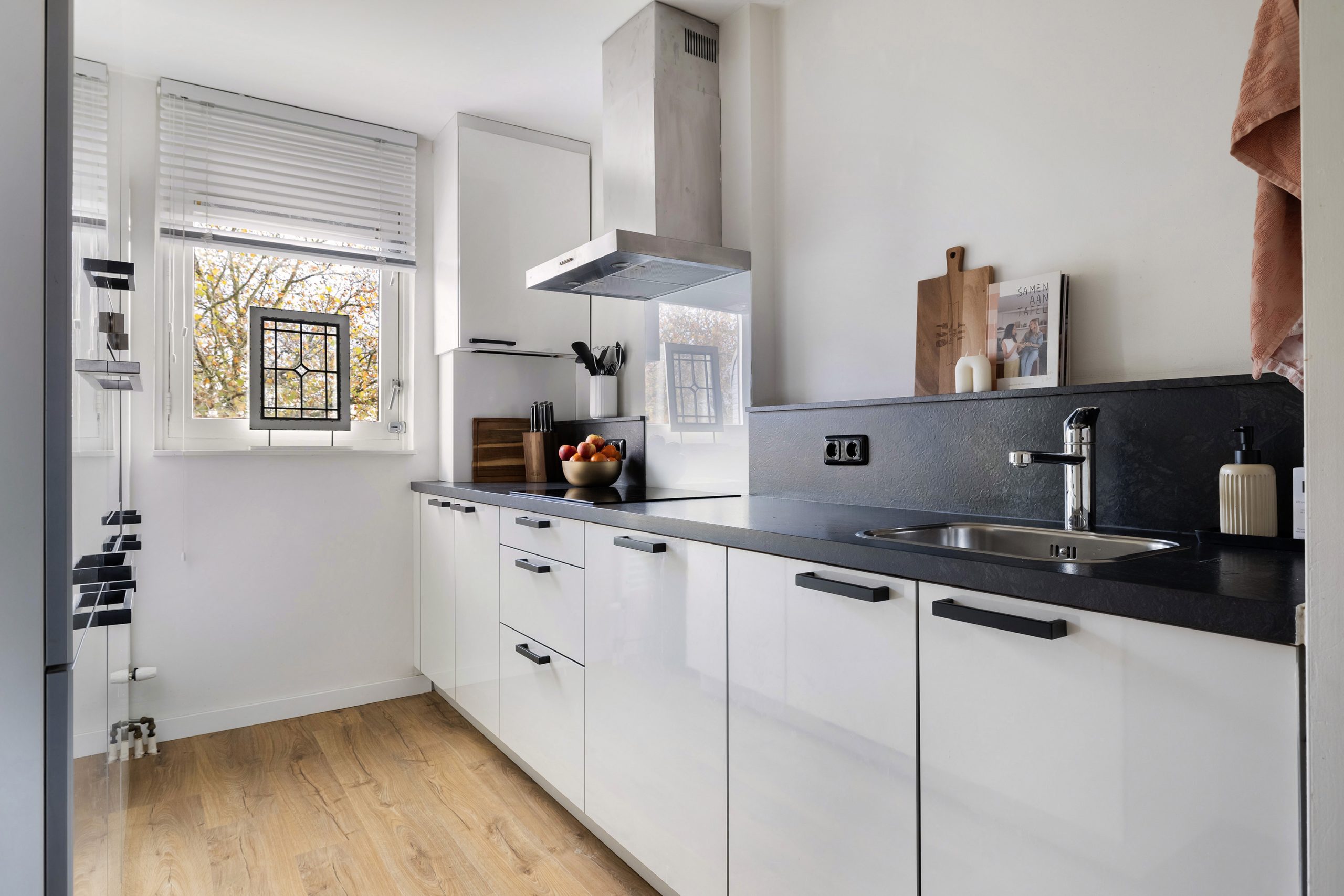 De open keuken is voorzien van een dubbele wandopstelling en beschikt over een 4-pit inductie kookplaat, afzuigkap, koel-/vriescombinatie, vaatwasser, combi-oven en veel bergruimte. In de keuken bevindt zich tevens de opstelplaats CV-ketel (Remeha Avanta, 2016), netjes weggewerkt in een kast.