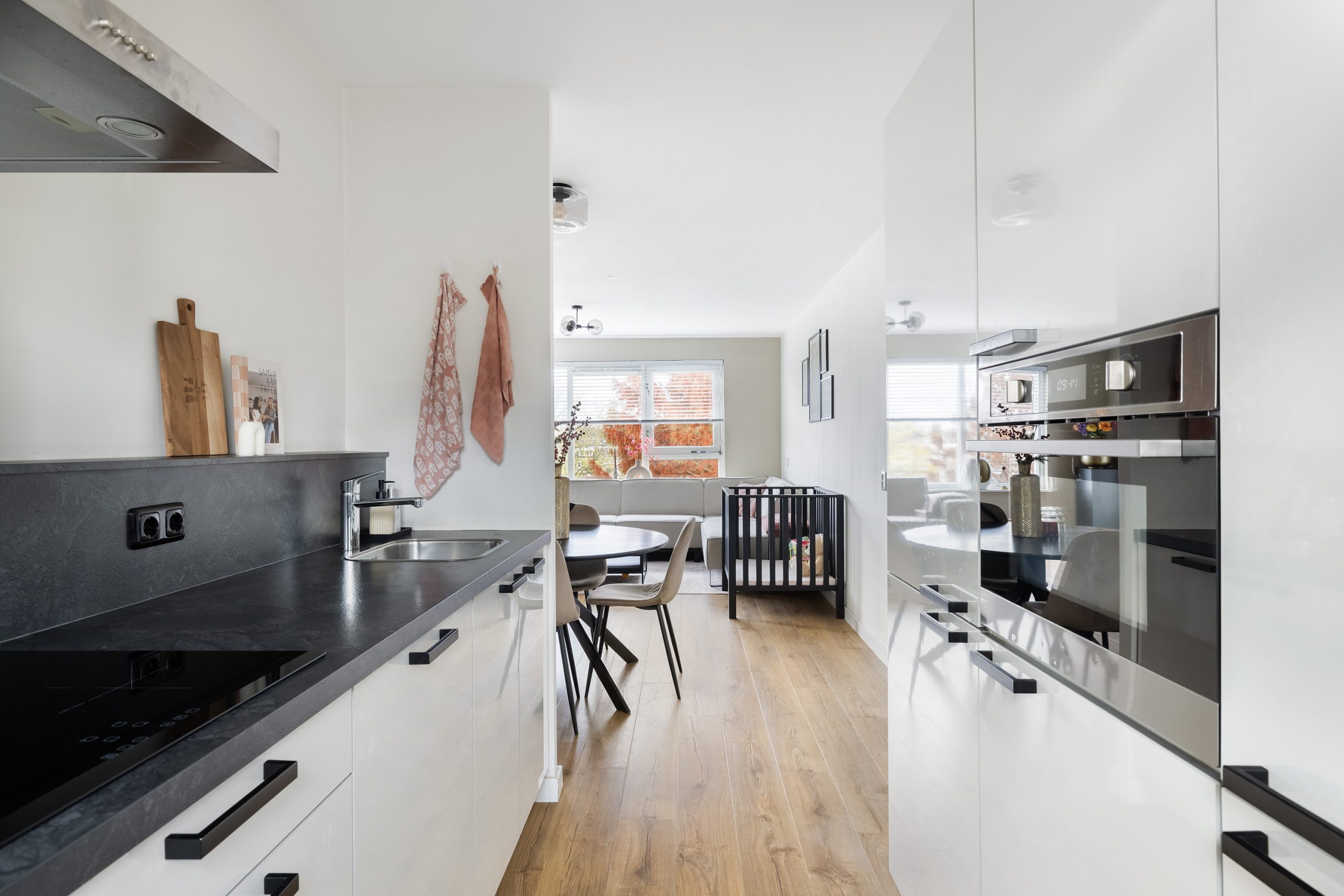 Het appartement ligt op de 3e verdieping, waardoor je mooi uitzicht hebt en toch volop privacy ervaart. De woonkamer is een prettige, open ruimte waar je zowel een gezellige zithoek als een ruime eettafel kwijt kunt. Vanuit hier bereik je het balkon, perfect om even te ontspannen in de buitenlucht.