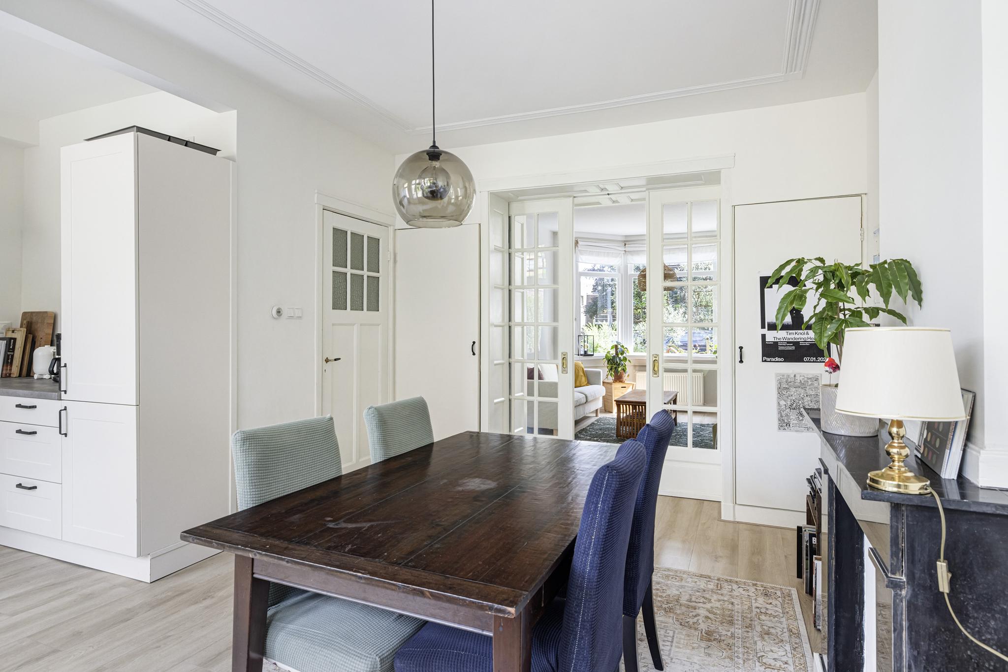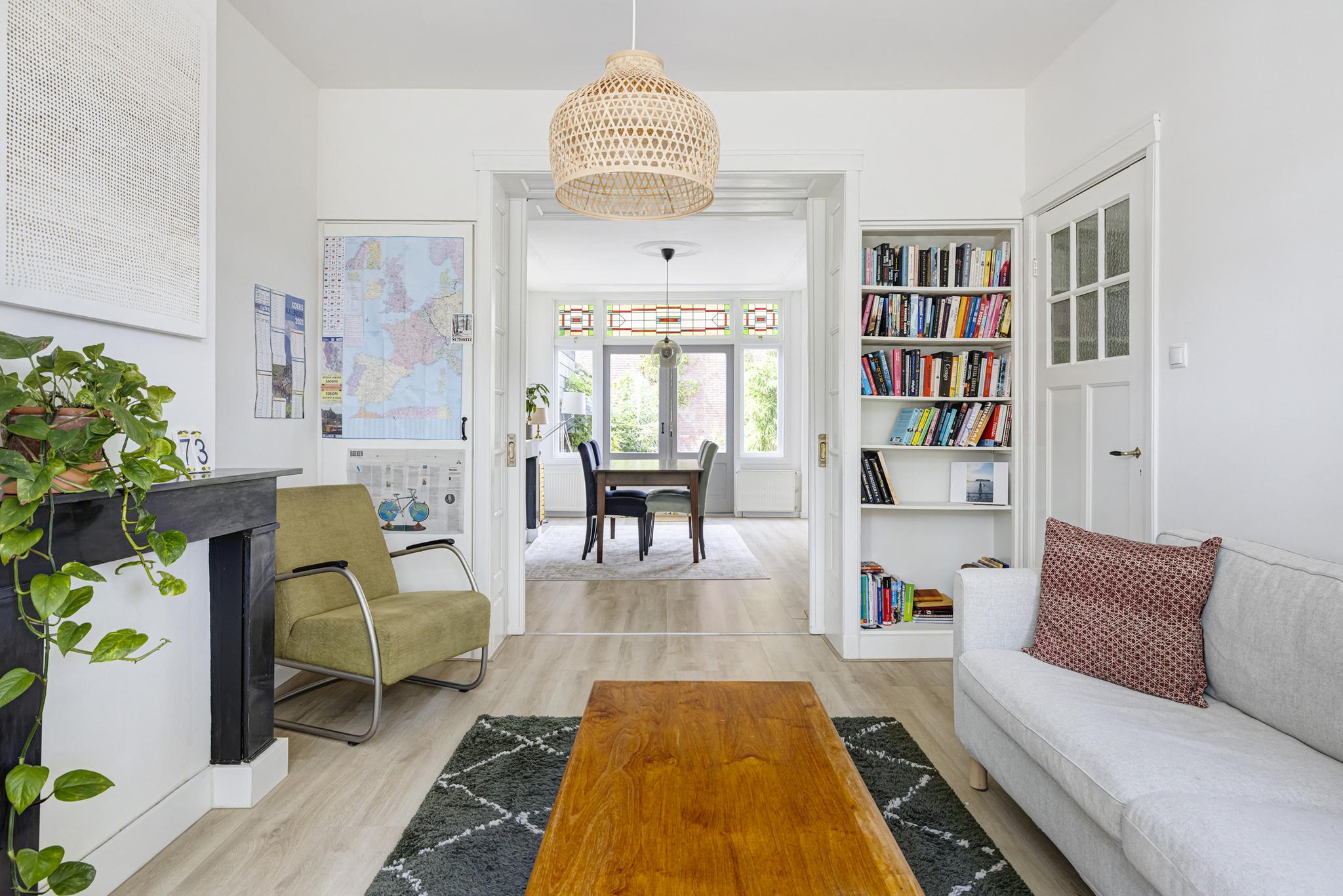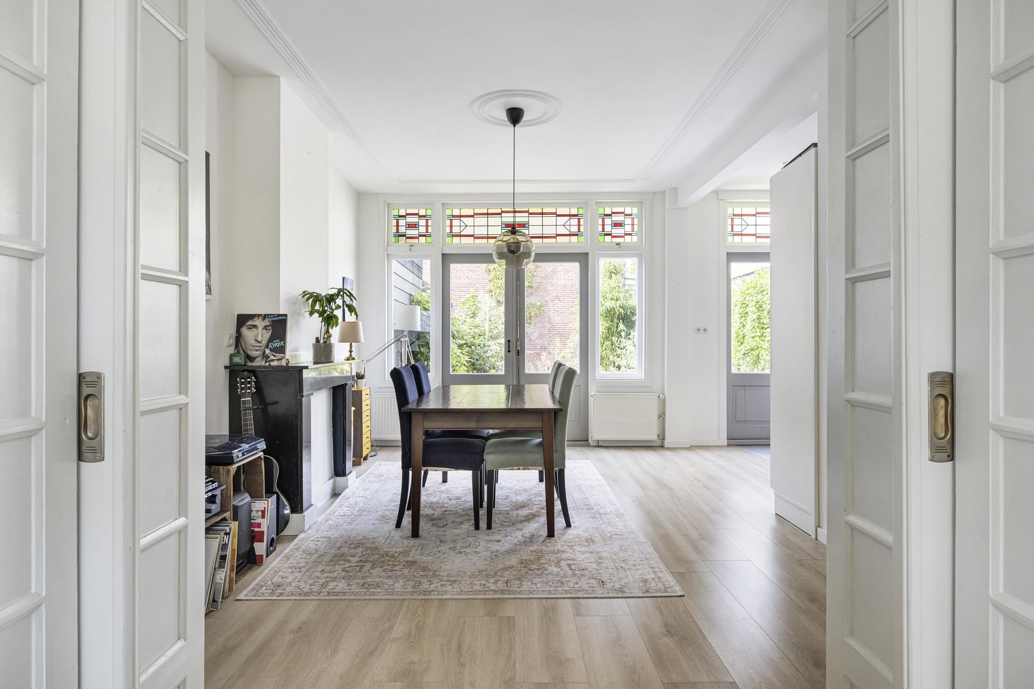 Deze zeer ruime tussenwoning staat aan de sfeervolle Bosboom-Toussaintstraat met aan beide zijden van de straat mooie oude platanen, het geheel past perfect in de jaren '30 sfeer van de woning.
