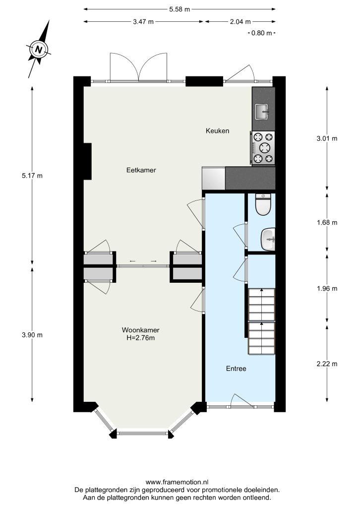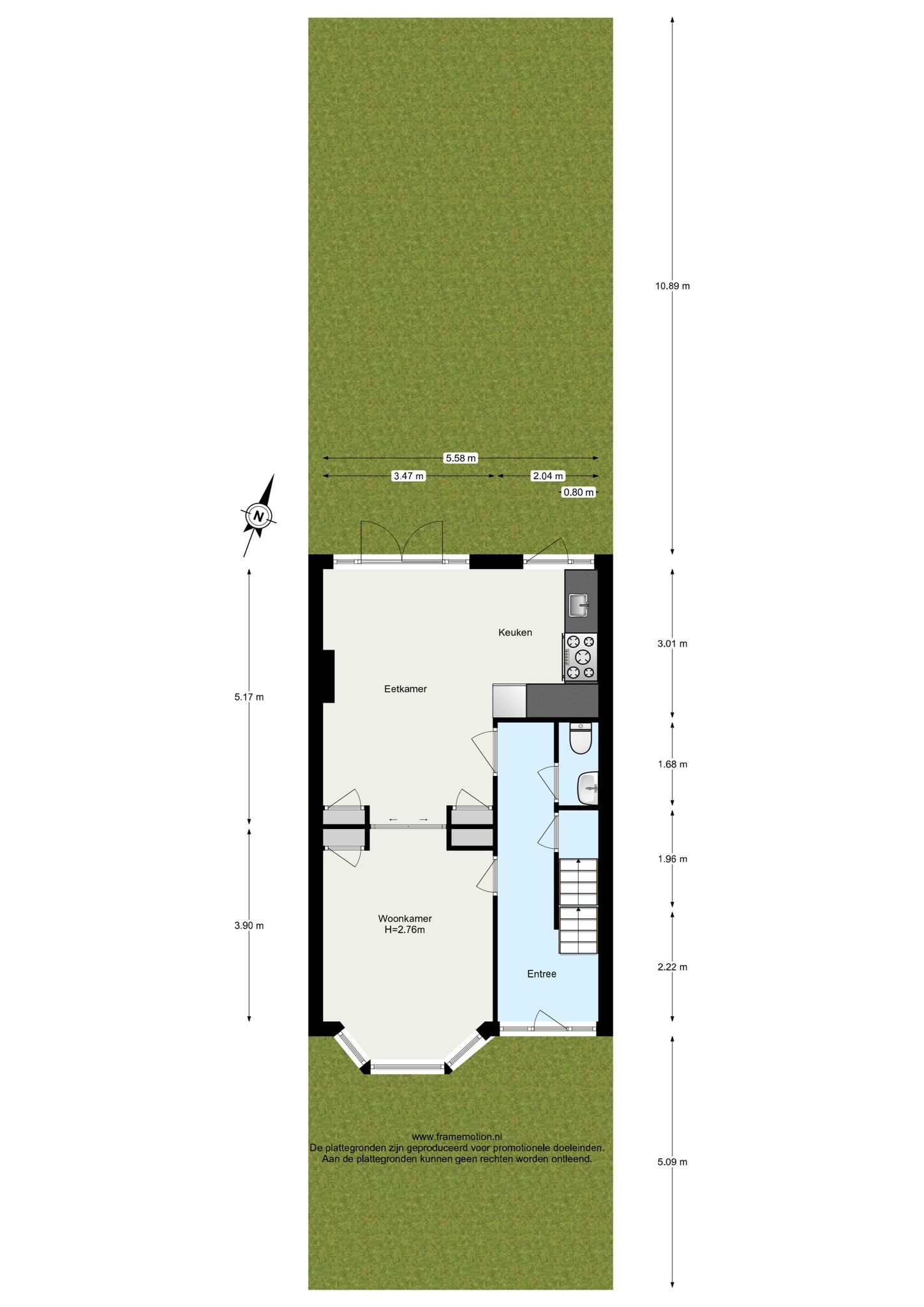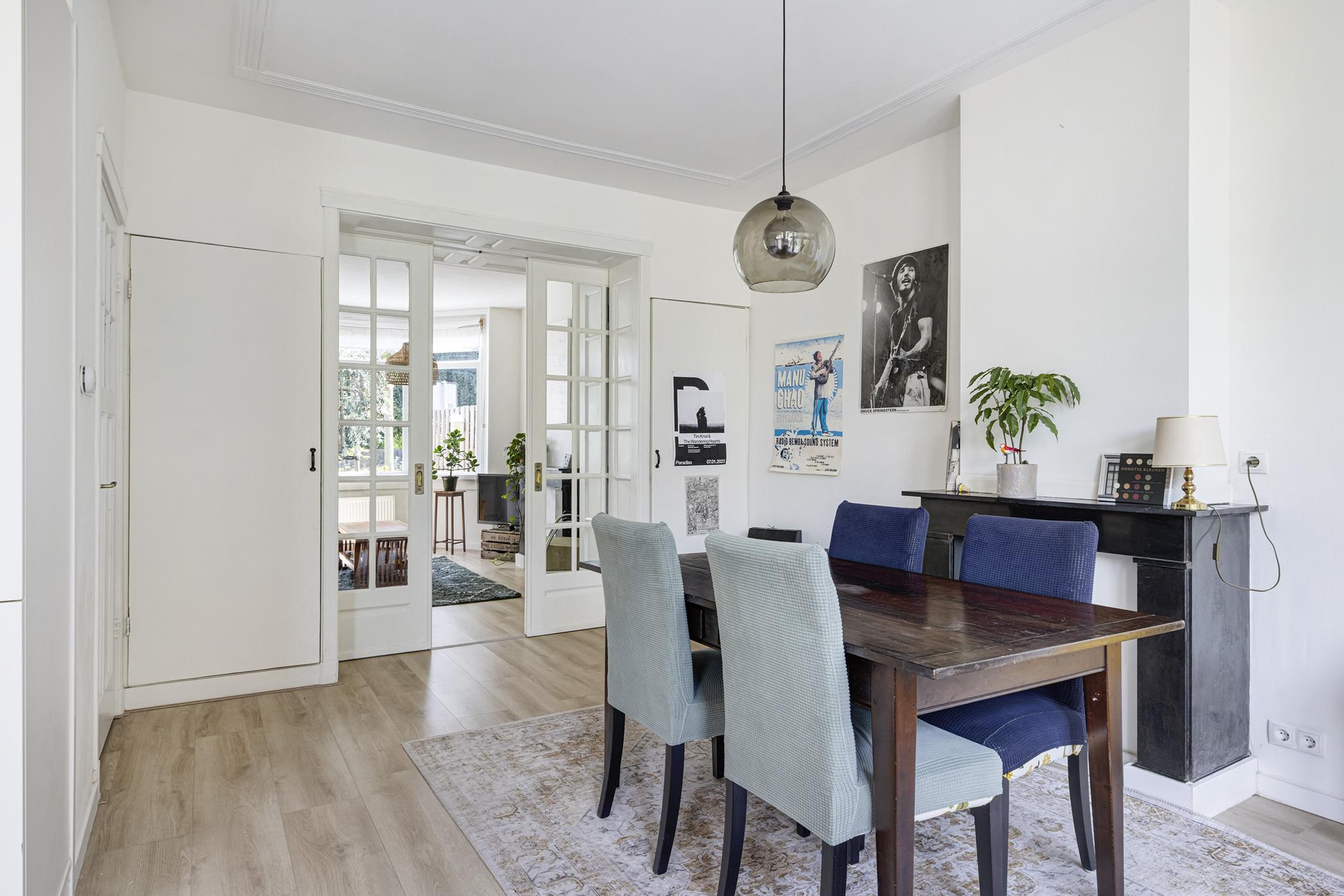 Aan de achterzijde is ook een marmeren schouw aanwezig en kun je via openslaande deuren de tuin bereiken.
