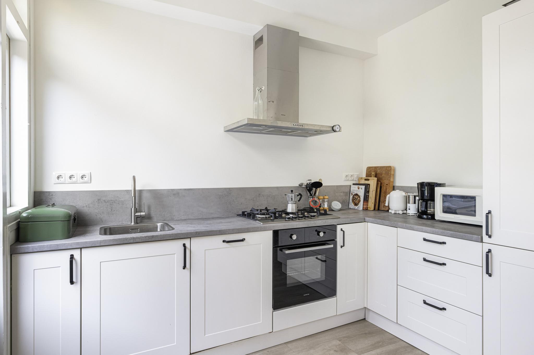 Deur naar de achtertuin. Inbouw apparatuur van het merk Inventum, 2 jaar garantie (optioneel tot 7 jaar te verlengen, aan te melden door kopers).