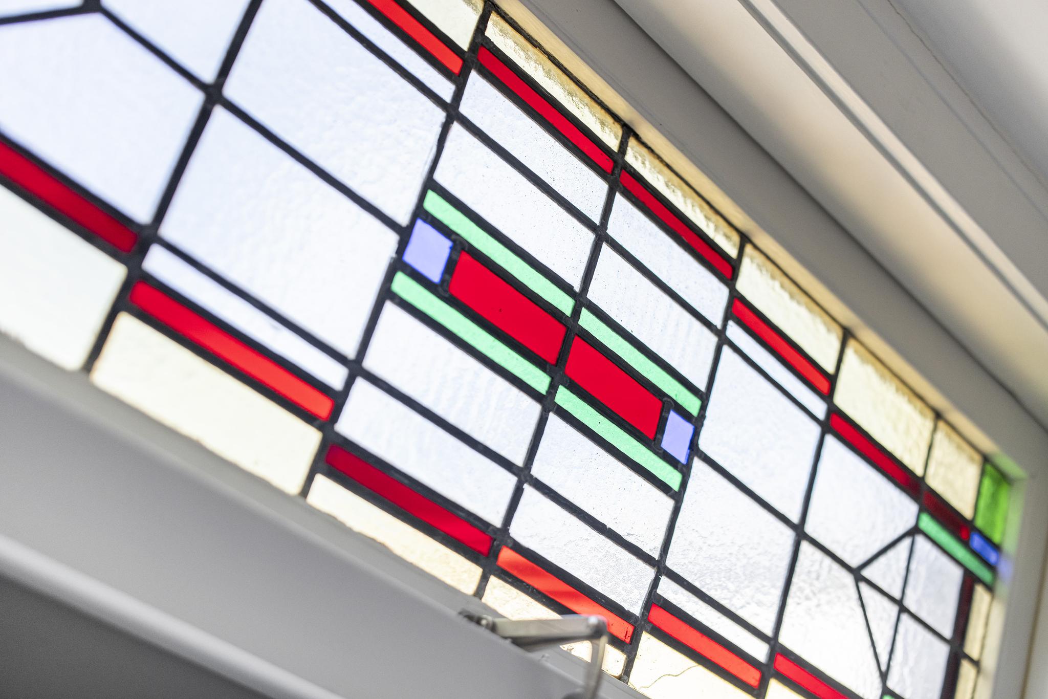 - Glas in lood: voorzet ramen geplaatst. Al het glas in lood verkeert in de originele staat.