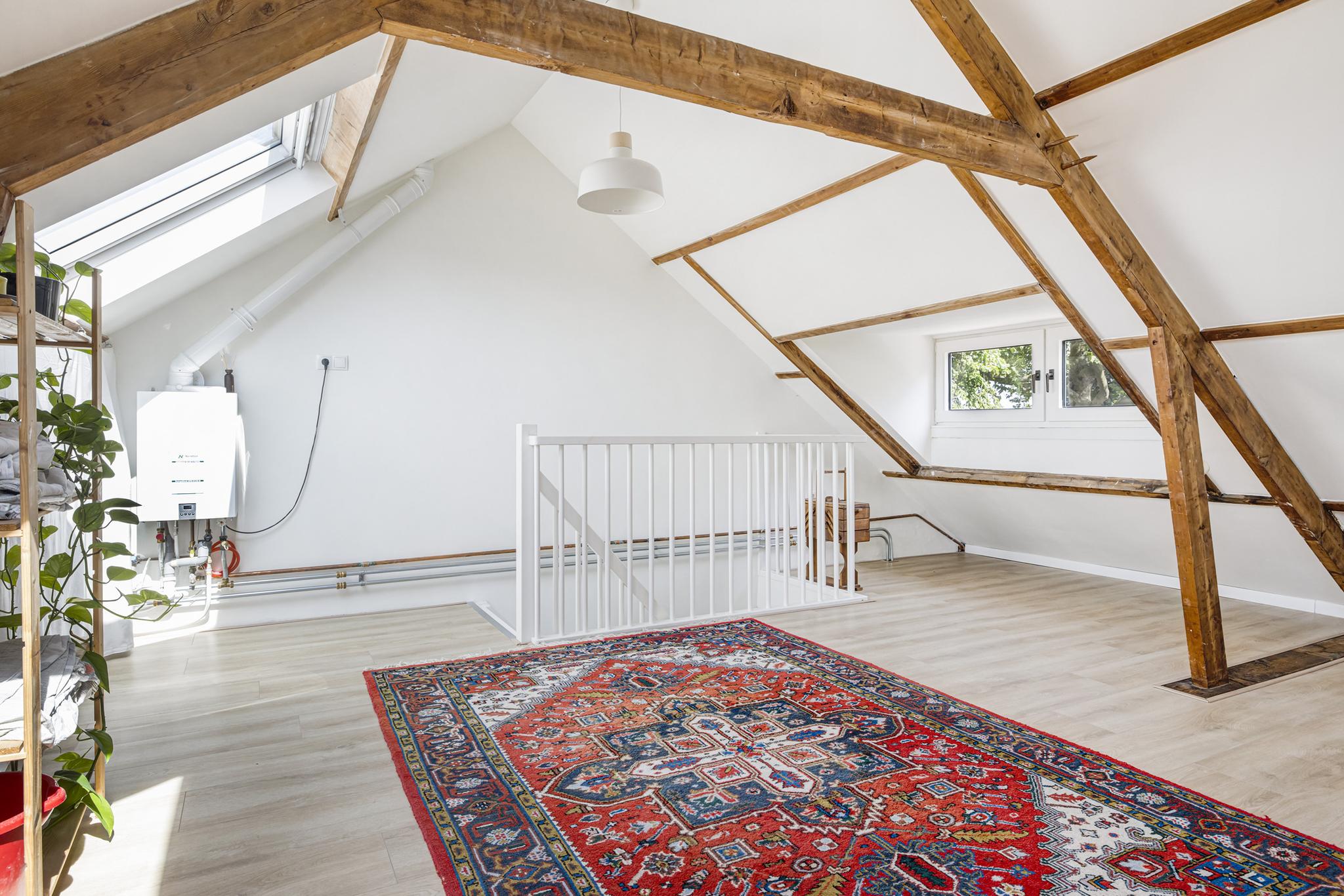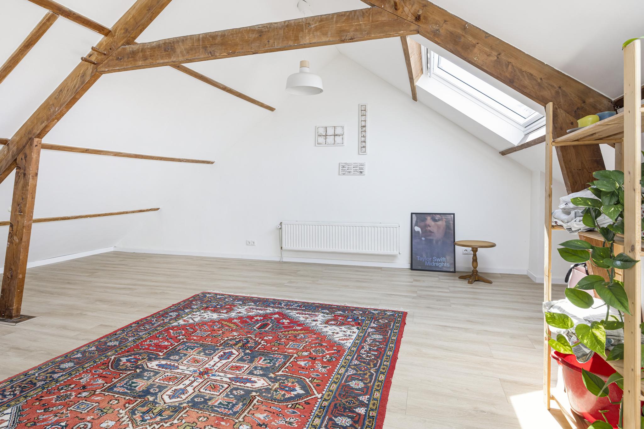 Heerlijk ruime zolder, nu open maar meer dan prima in te delen in 1 of 2 slaapkamers. De elektra en CV zijn al voorbereid op een mogelijke splitsing in extra slaapkamers.