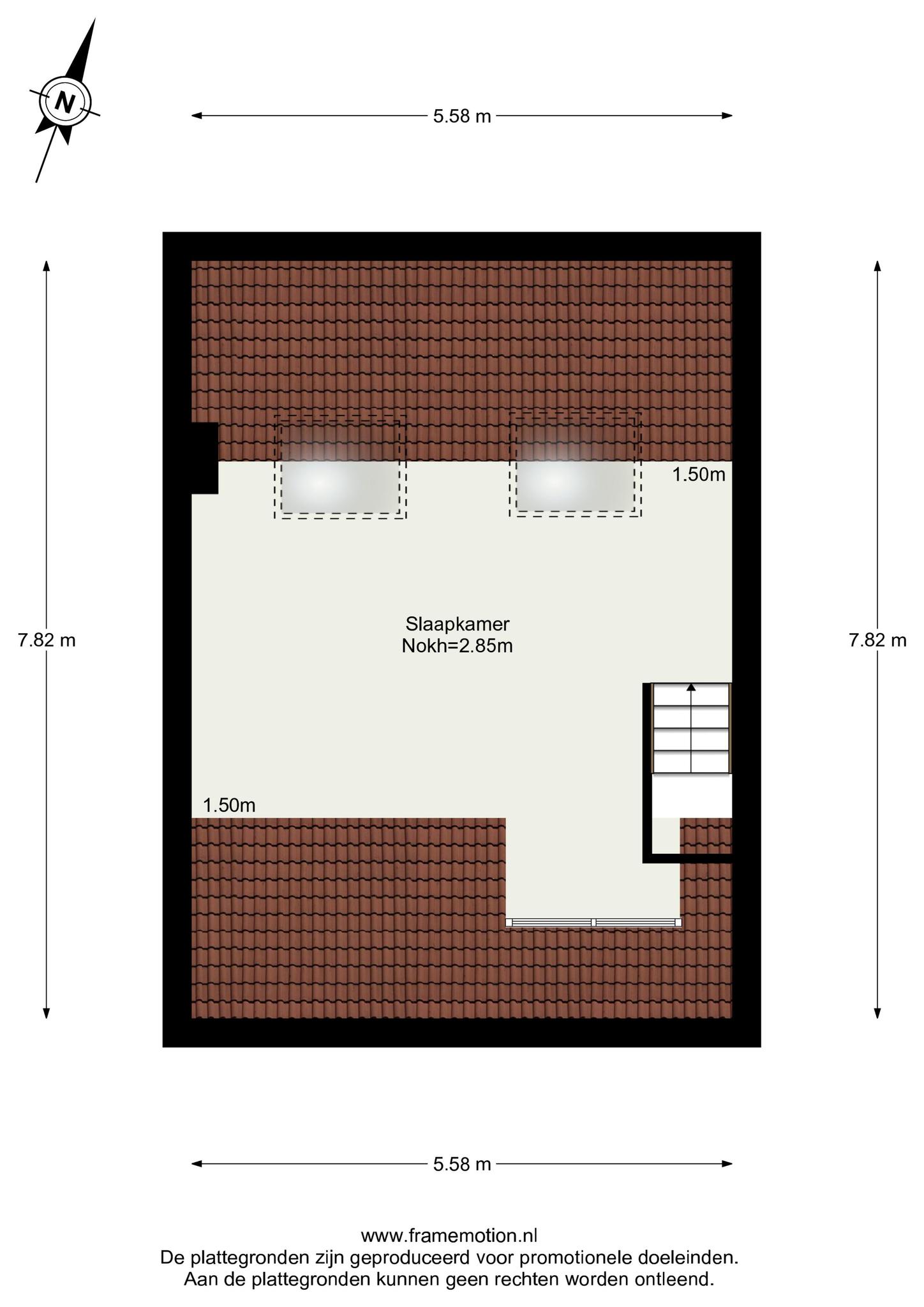 Op deze verdieping is de was aansluiting gesitueerd en een dak doorvoer voor een droger en de CV ketel.