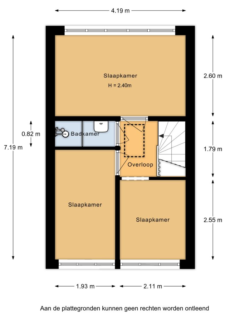 Overloop met toegang tot alle vertrekken en vlizotrap naar de vliering.