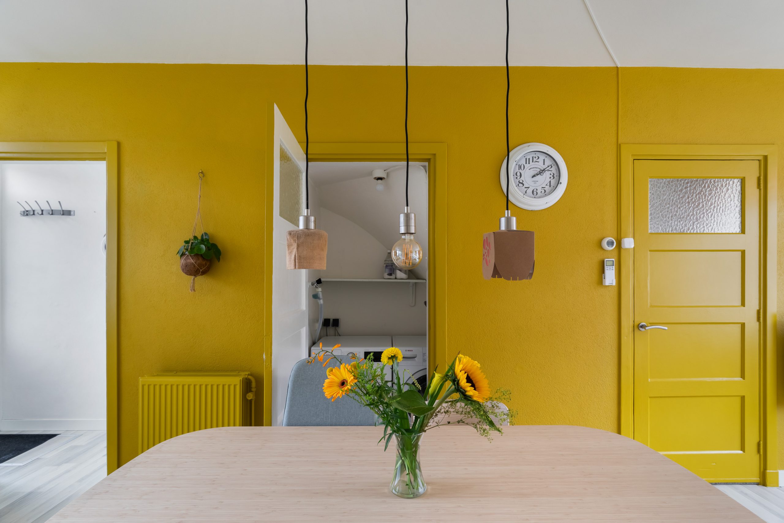 Als geel je lievelingskleur is, val je hier letterlijk met je neus in de boter. Muren, gordijnen… De zon lijkt binnen net zo hard te schijnen als buiten.