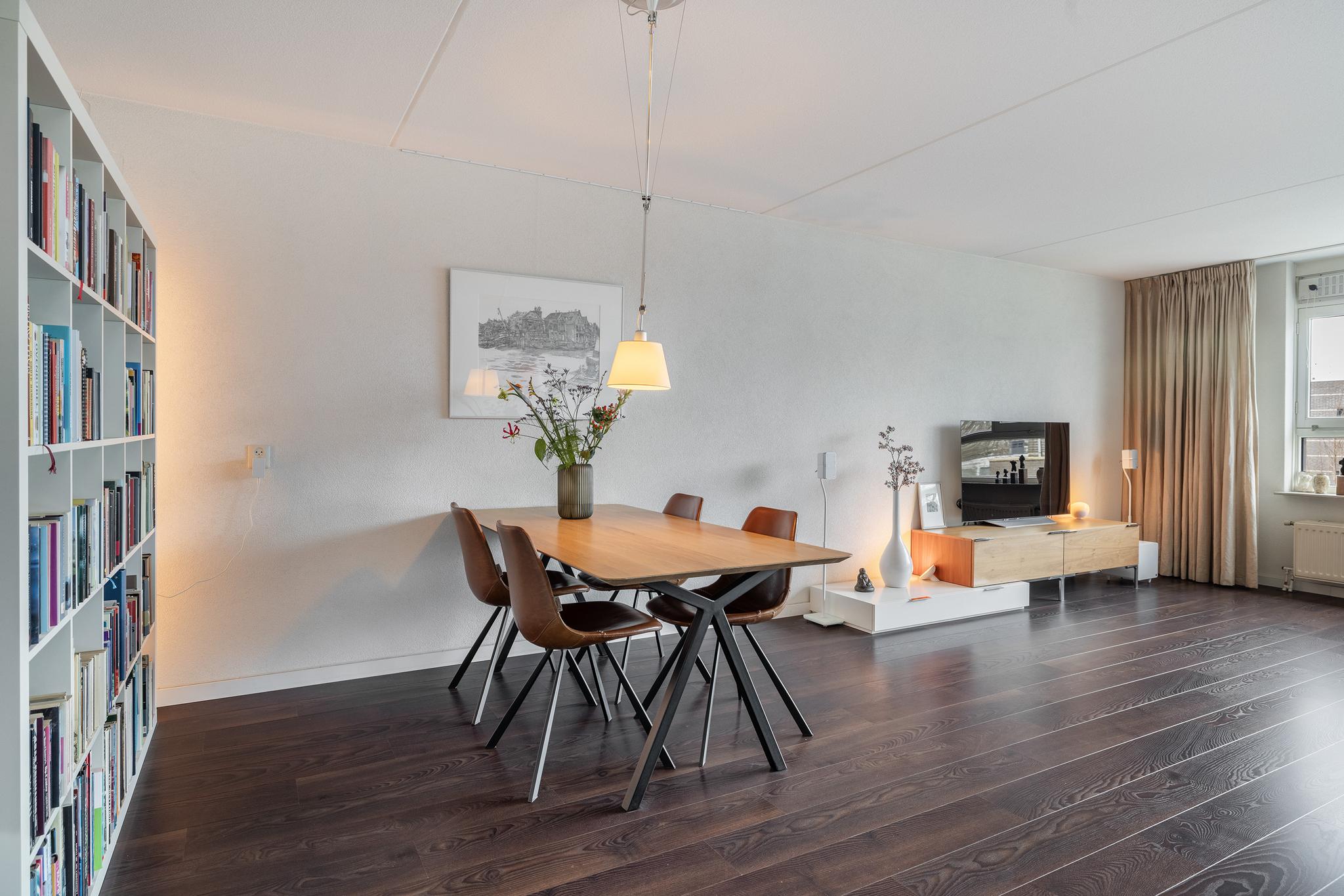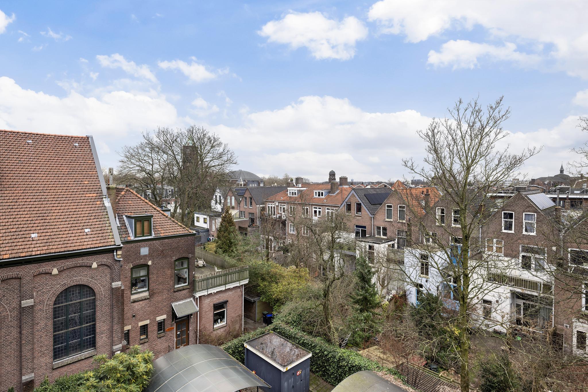 De hoge ligging van het appartement, de rustige straat en het balkon aan de achterzijde maken dit een ideale locatie; je kunt hier heerlijk genieten van de rust, maar wel met alle voorzieningen vlakbij! Zo is de supermarkt slechts een paar stappen lopen, het NS-station ligt aan het einde van de straat en binnen een paar minuten sta je midden in het historische centrum. En voor een lekker kopje koffie ben je altijd welkom op ons gezellige kantoor om de hoek!