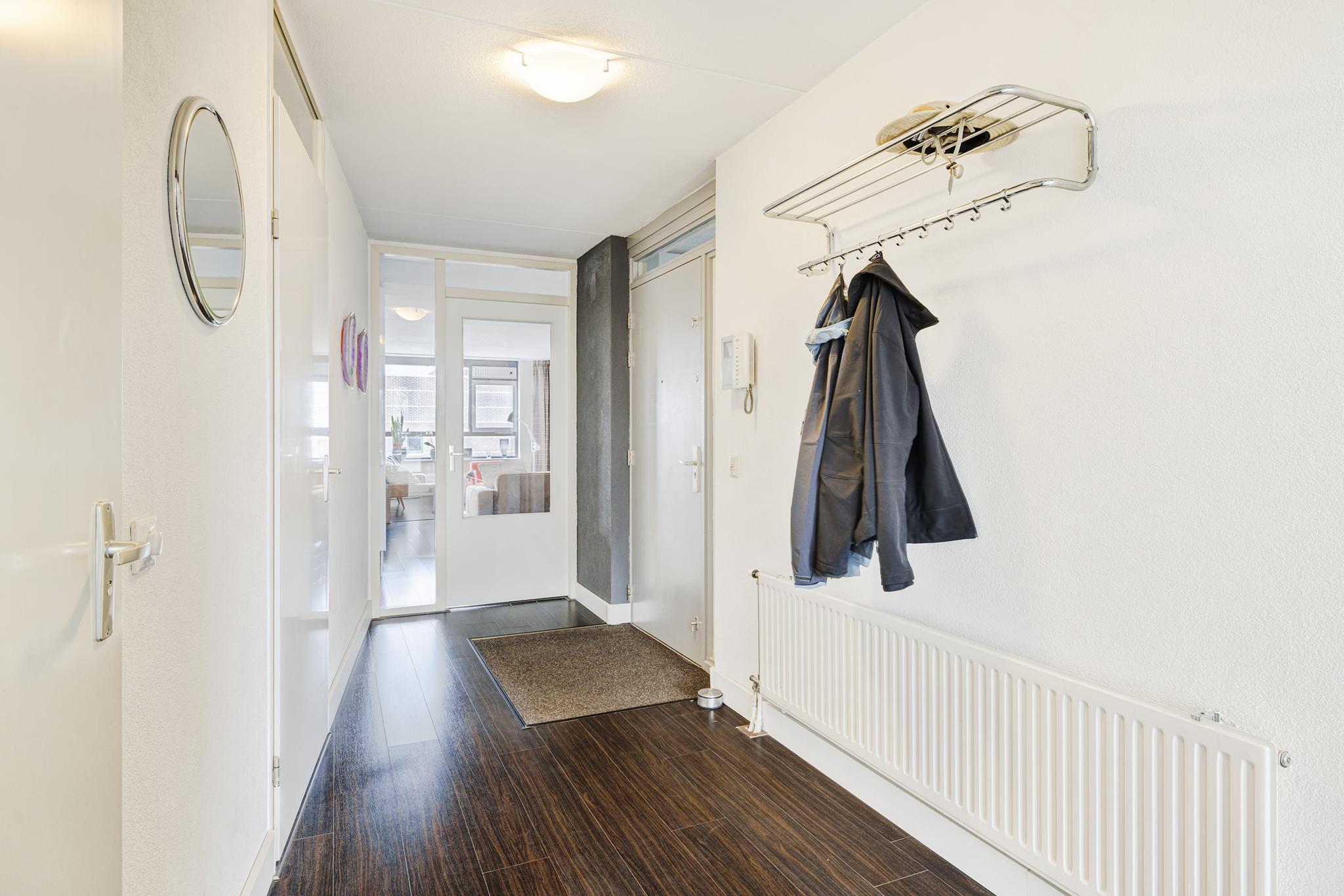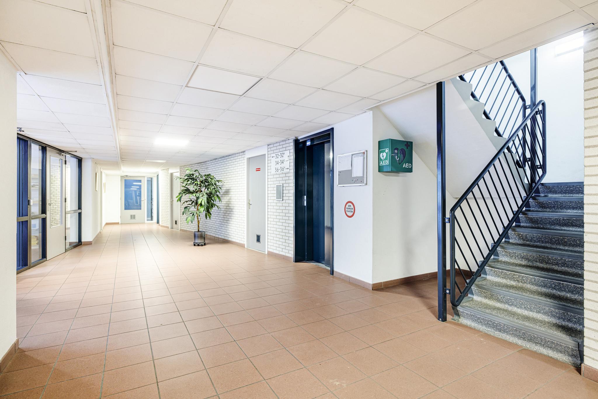 Entree met bellentableau en brievenbussen, toegang tot de portiek middels trap en lift. In de onderbouw beschikt het appartement over een eigen berging. Op het achtergelegen (afgesloten) parkeerterrein ligt de eigen parkeerplaats met carport.