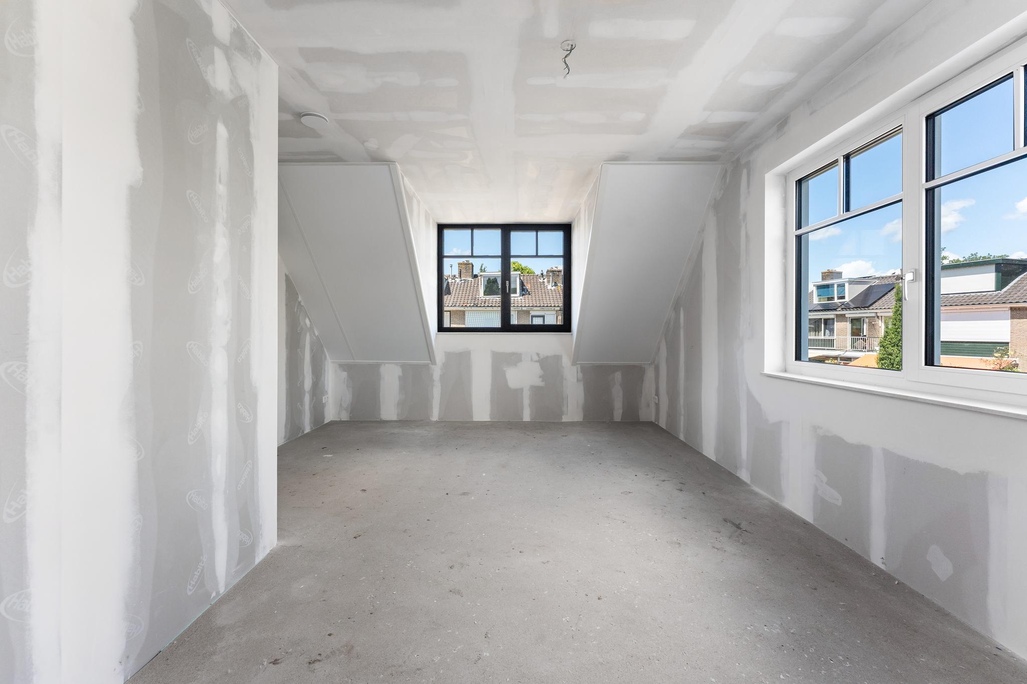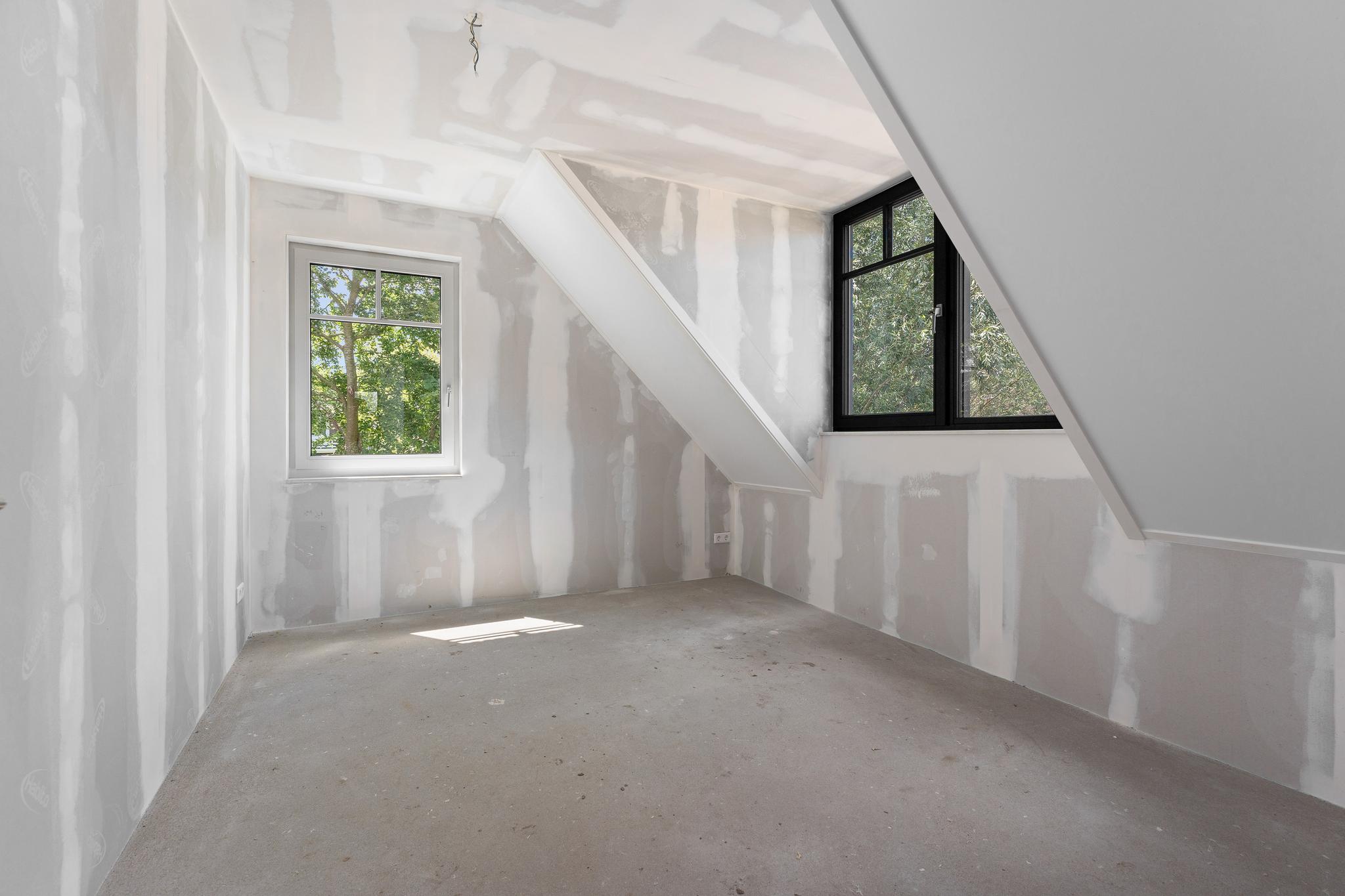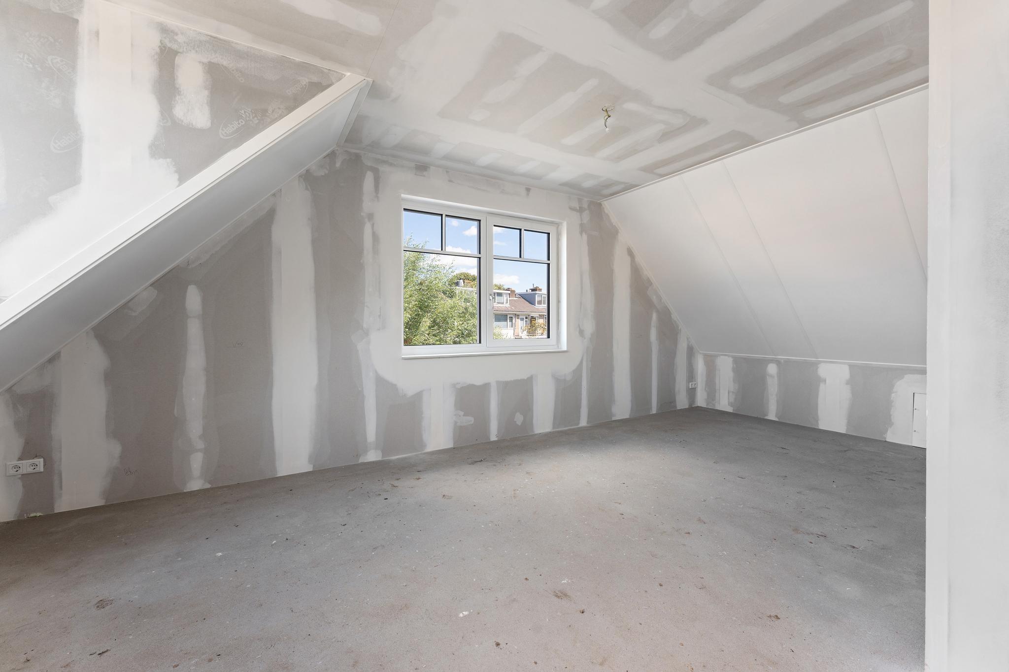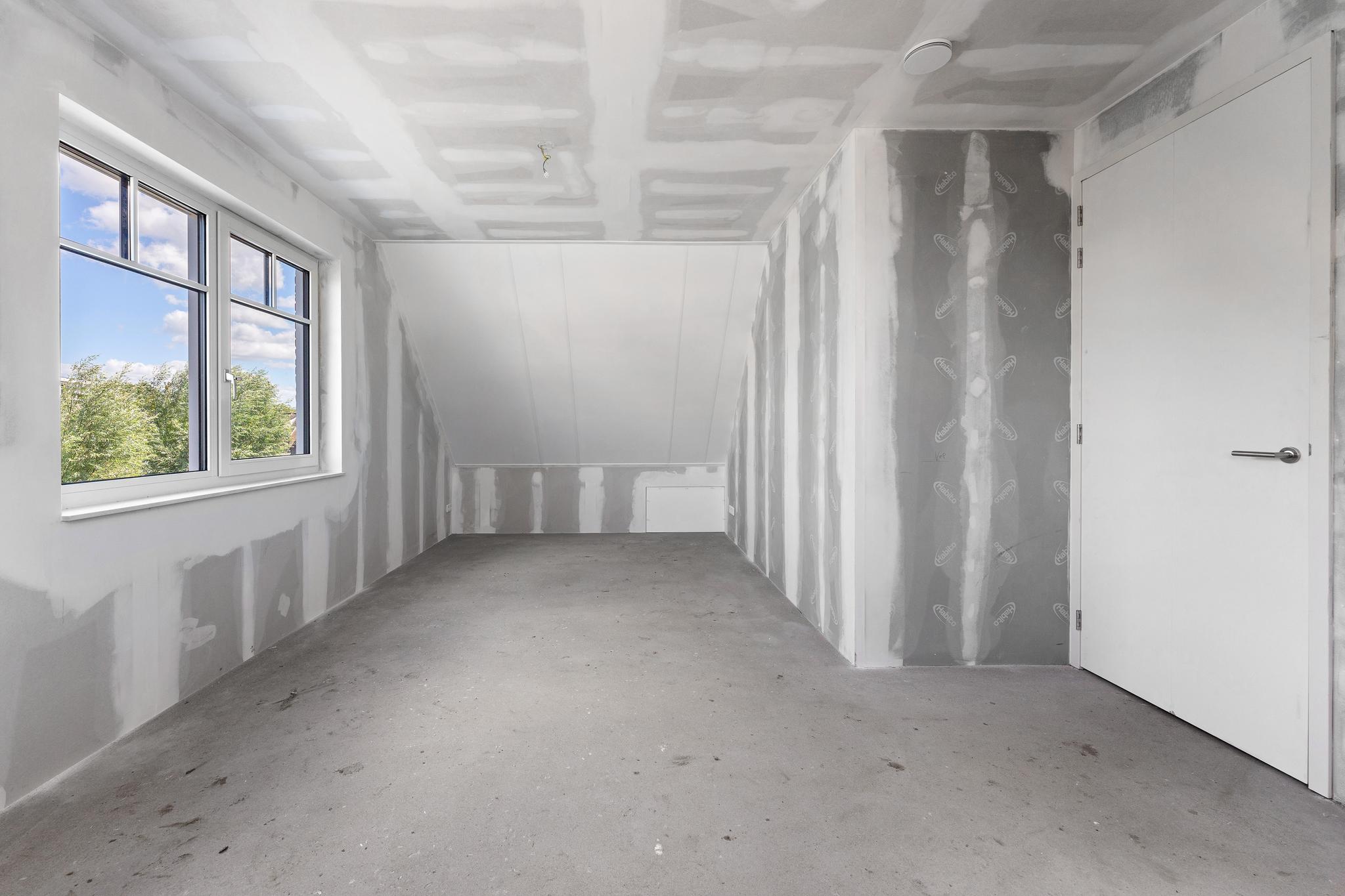 Slaapkamer 3: Royale slaapkamer gelegen over de hele breedte van de woning. De slaapkamer heeft een dakkapel, leuke ramen met t-roedeverdeling en echt veel ruimte. Een groot tweepersoonsbed en wat andere meubels plaats je hier met gemak. Achter het luik zit de verdeler van de zonnepanelen netjes weggewerkt.