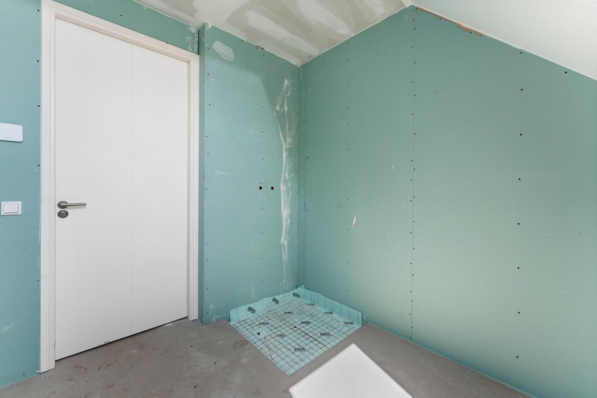 Badkamer: Met de badkamer kun je nog alle kanten op. Het is een fijne ruimte welke je gemakkelijk kunt indelen. De plaats van de inloopdouche is al voorbereid, eveneens als de basis aansluitingen. De badkamer is voorzien van een Velux dakraam en mechanische ventilatie. De ruimte is afgewerkt met een zandcement dekvloer, gegipste wanden en een gegipst plafond.
