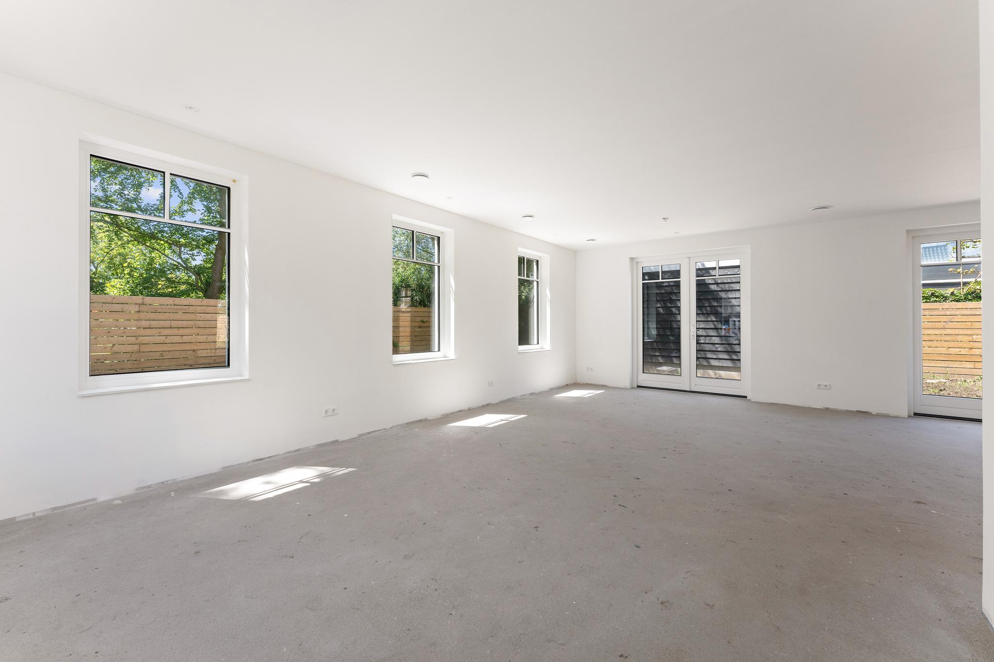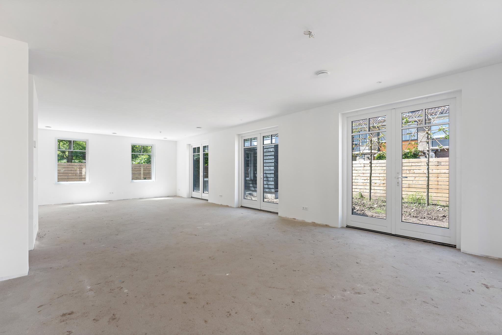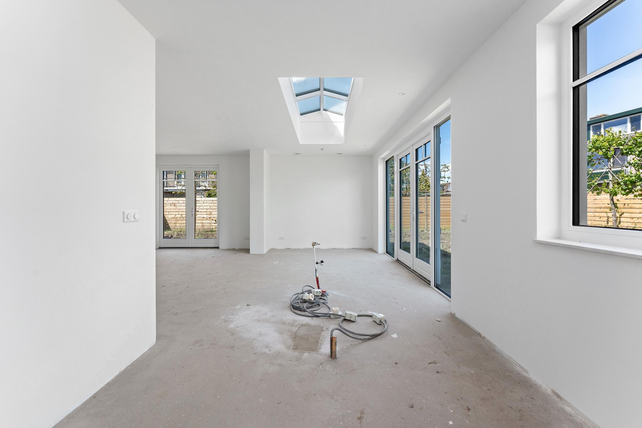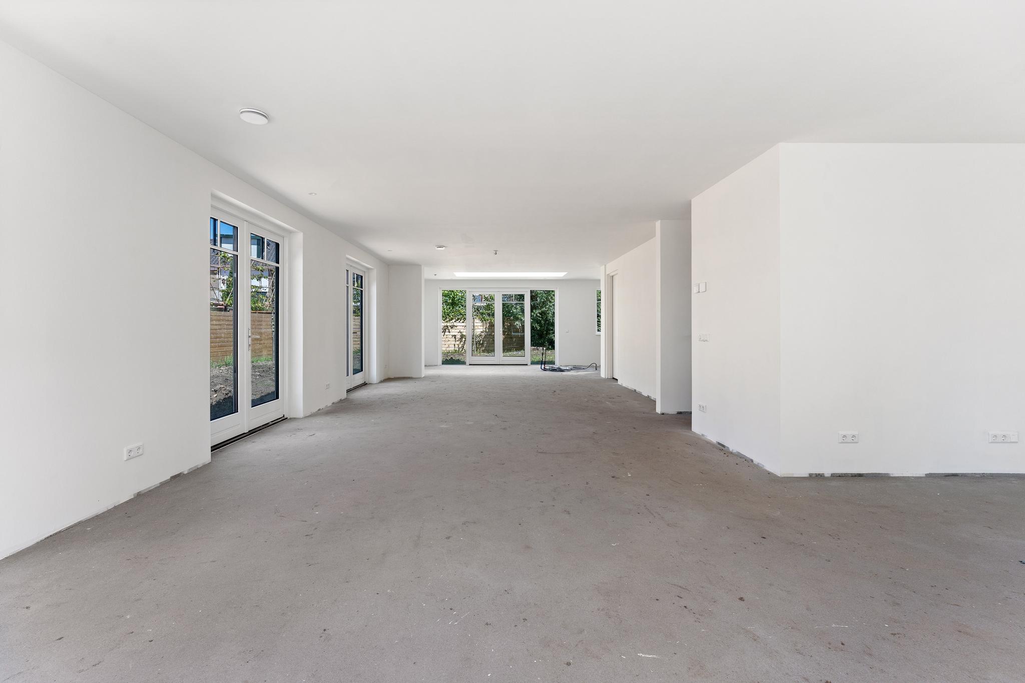 Woonkamer: Op de begane grond vind je een ruime woonkamer. Voor de zithoek is er ruimte aan de voorzijde van de woning en je eethoek plaats je aan de achterzijde, dicht bij de open keuken. De drie openslaande deuren met een leuke t-roedeverdeling maken het contact met buiten gemakkelijk. Heerlijk om deze open te zetten op een zonnige dag. De vloer is geïsoleerd en afgewerkt met een hoogwaardige dekvloer, klaar om te personaliseren met jouw gewenste vloerafwerking. De wanden zijn netjes gestuukt, behangklaar voor jouw interieurstijl en ook het plafond is netjes gestuukt en voorzien van witte inbouwspots.