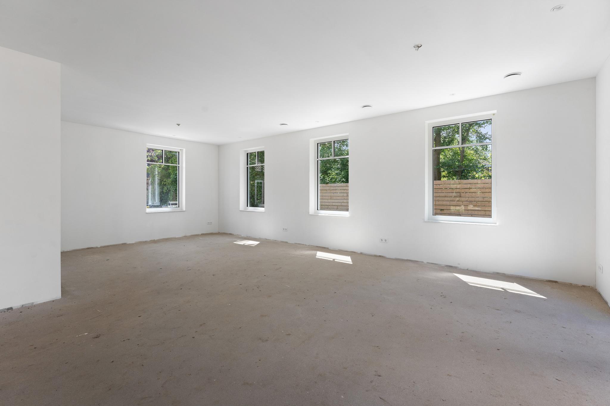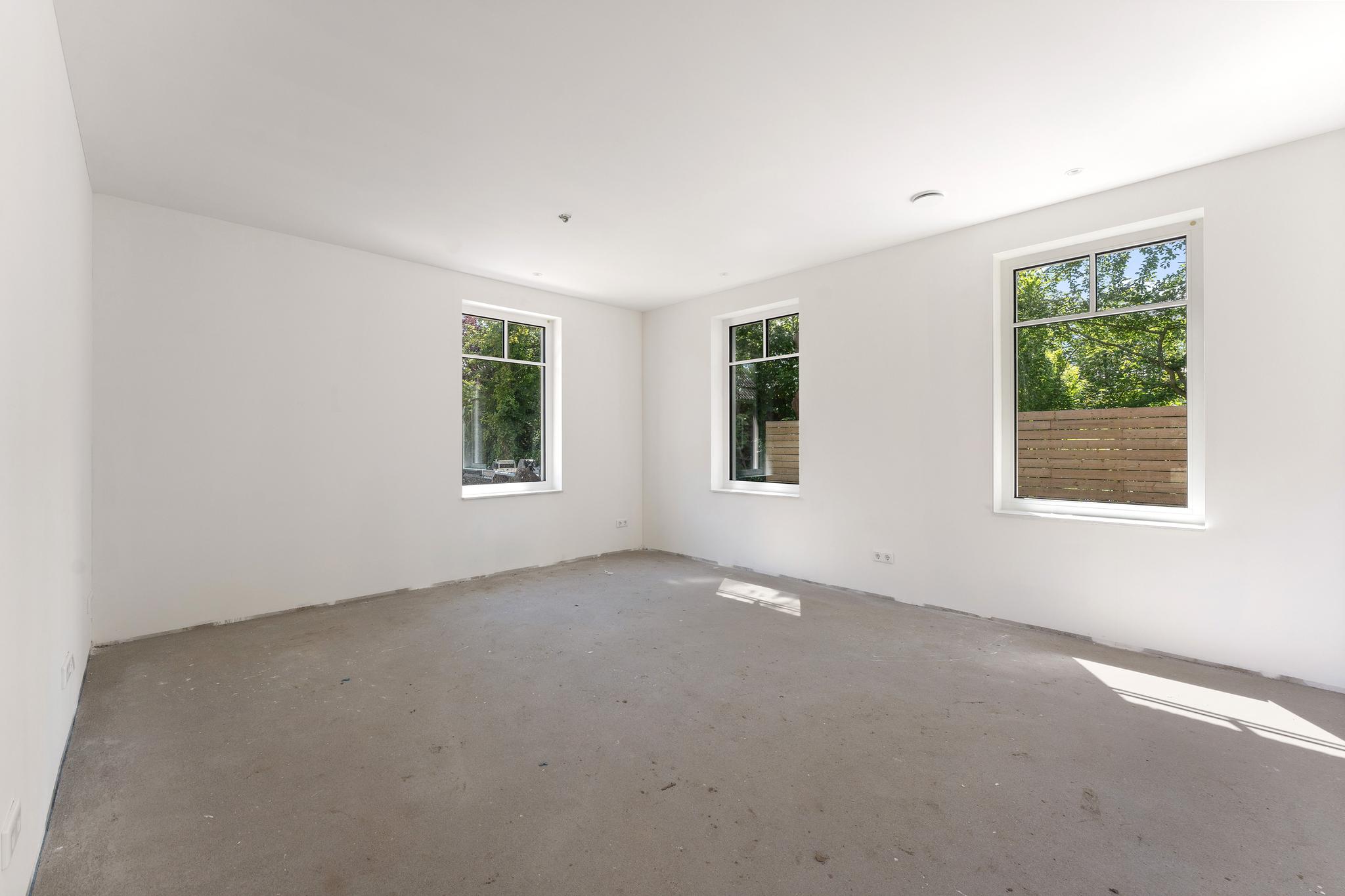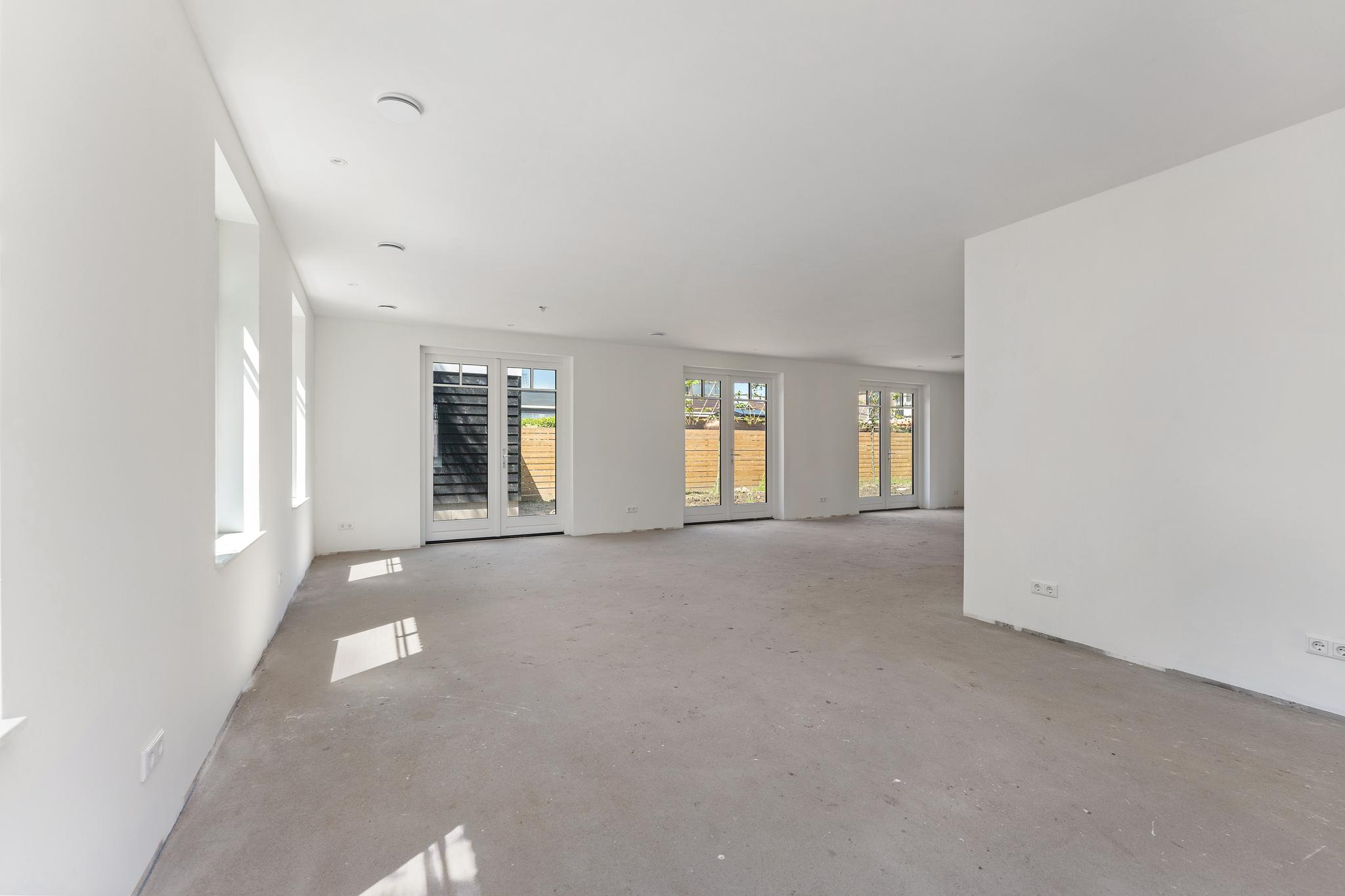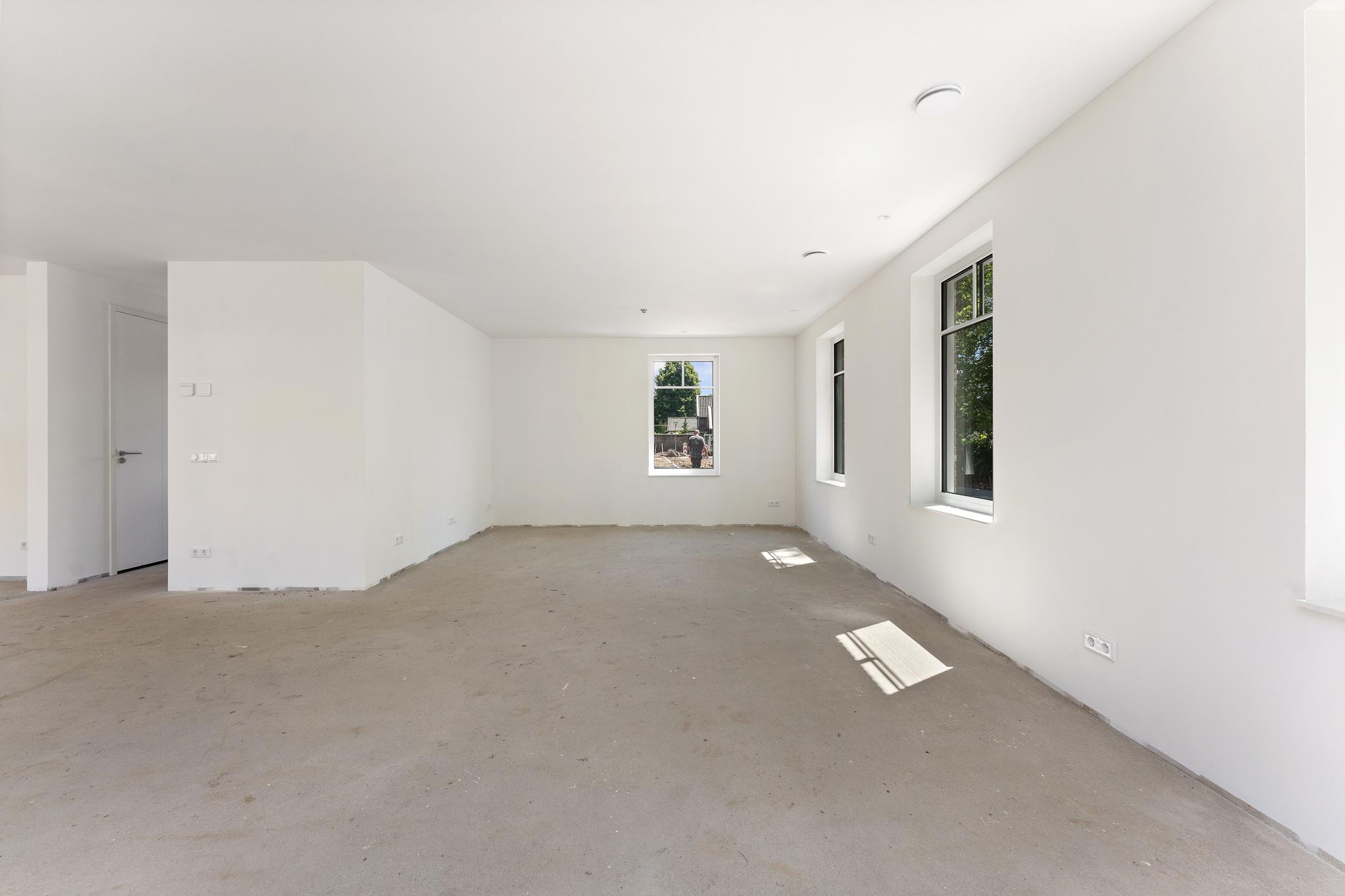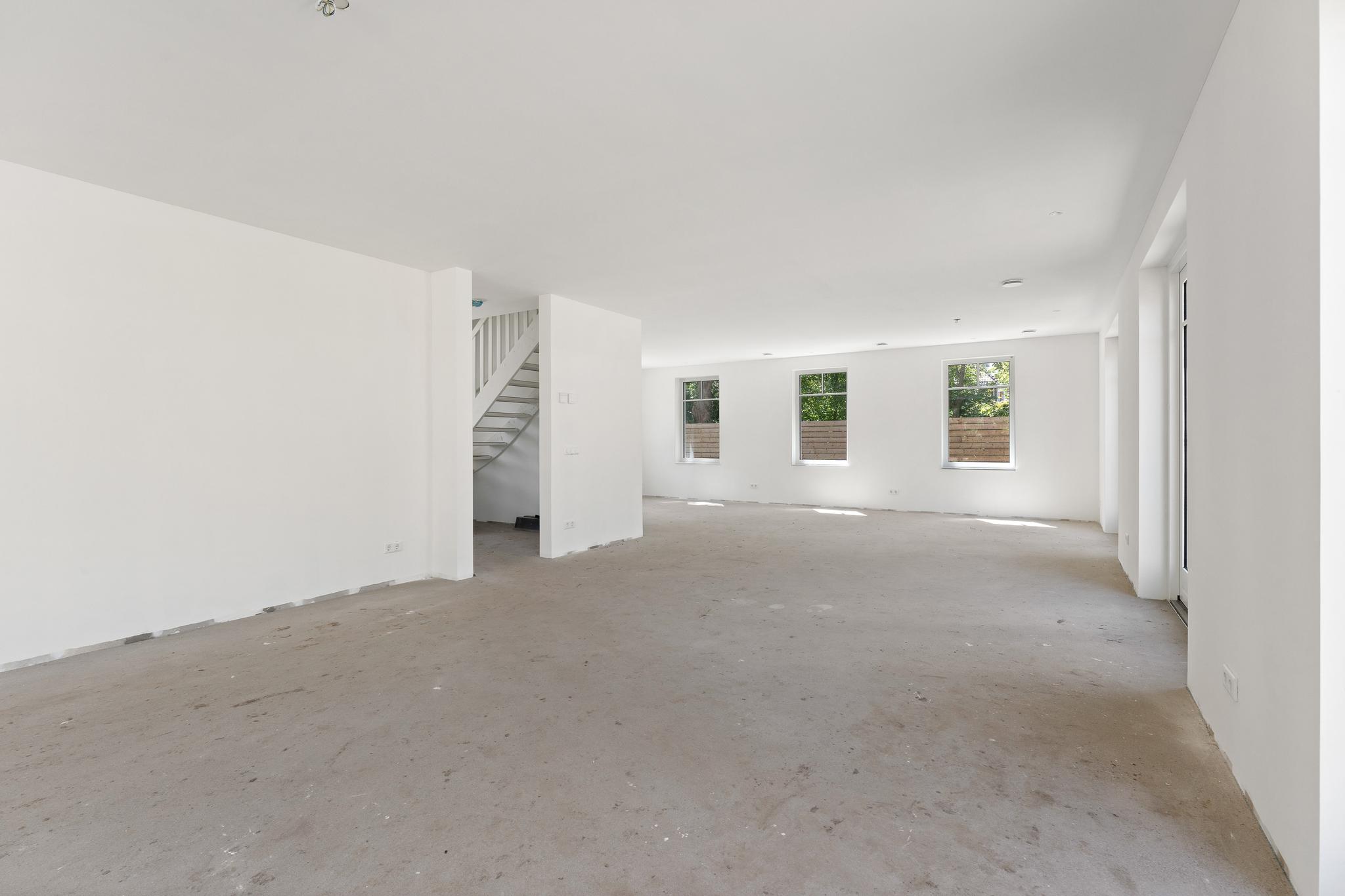 Woonkamer: Op de begane grond vind je een ruime woonkamer. Voor de zithoek is er ruimte aan de voorzijde van de woning en je eethoek plaats je aan de achterzijde, dicht bij de open keuken. De drie openslaande deuren met een leuke t-roedeverdeling maken het contact met buiten gemakkelijk. Heerlijk om deze open te zetten op een zonnige dag. De vloer is geïsoleerd en afgewerkt met een hoogwaardige dekvloer, klaar om te personaliseren met jouw gewenste vloerafwerking. De wanden zijn netjes gestuukt, behangklaar voor jouw interieurstijl en ook het plafond is netjes gestuukt en voorzien van witte inbouwspots.