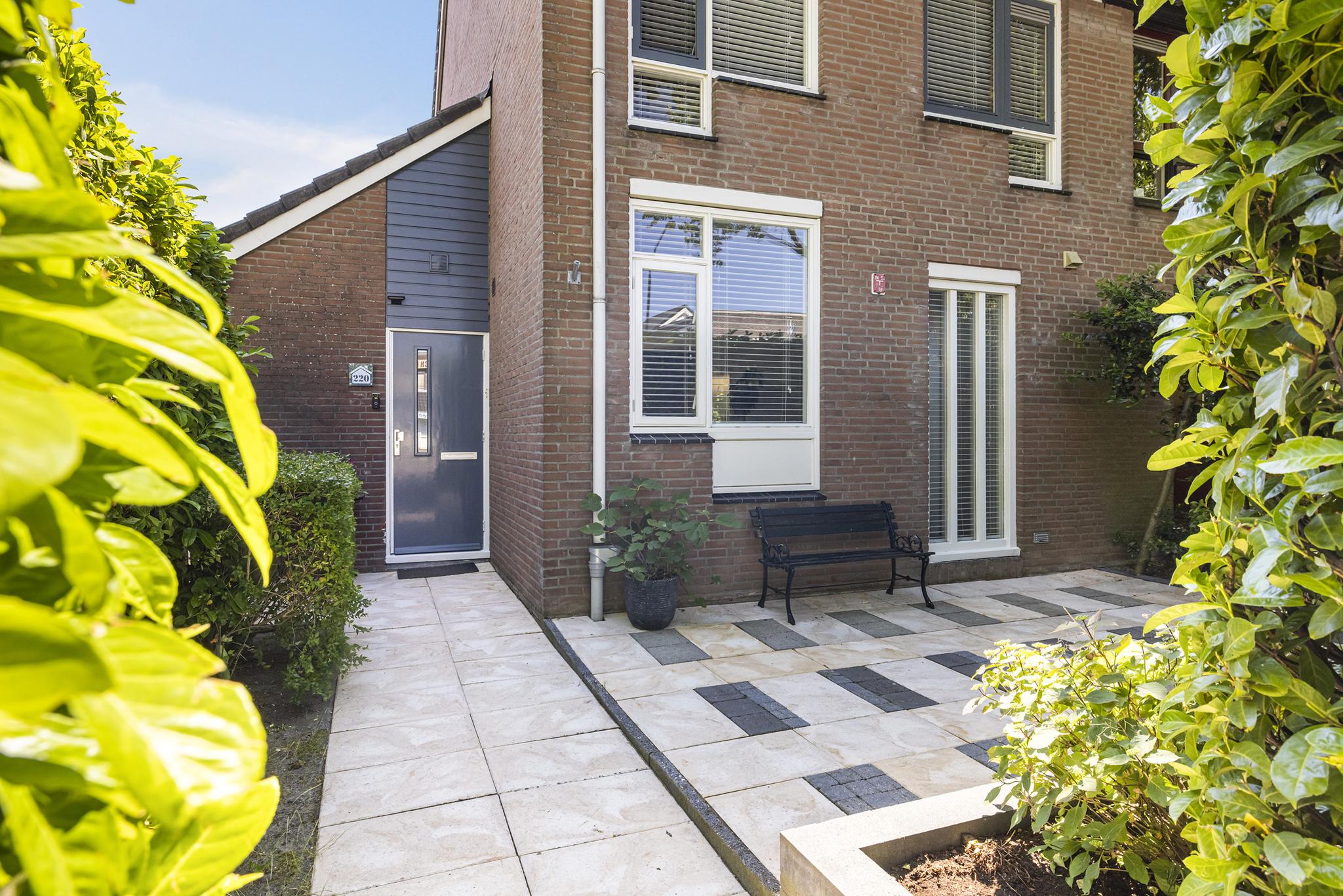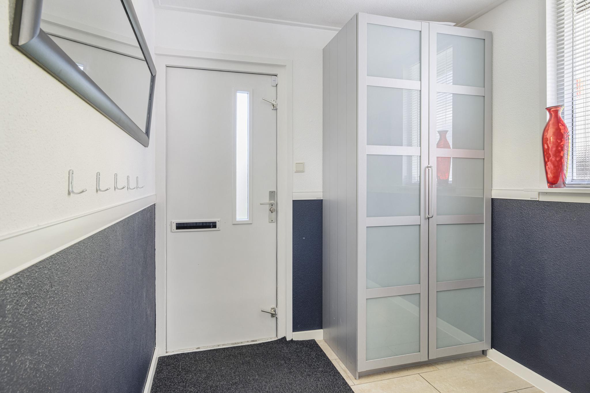 De ruime voortuin leidt naar de voordeur in de zijaanbouw van de woning. Je komt de woning binnen via de bijkeuken/berging, welke is voorzien van een keukenblok met granieten werkblad, anderhalve spoelbak, inductiekookplaat, een tegelvloer met vloerverwarming en inbouwspots. Middels een vlisotrap is de vliering bereikbaar.