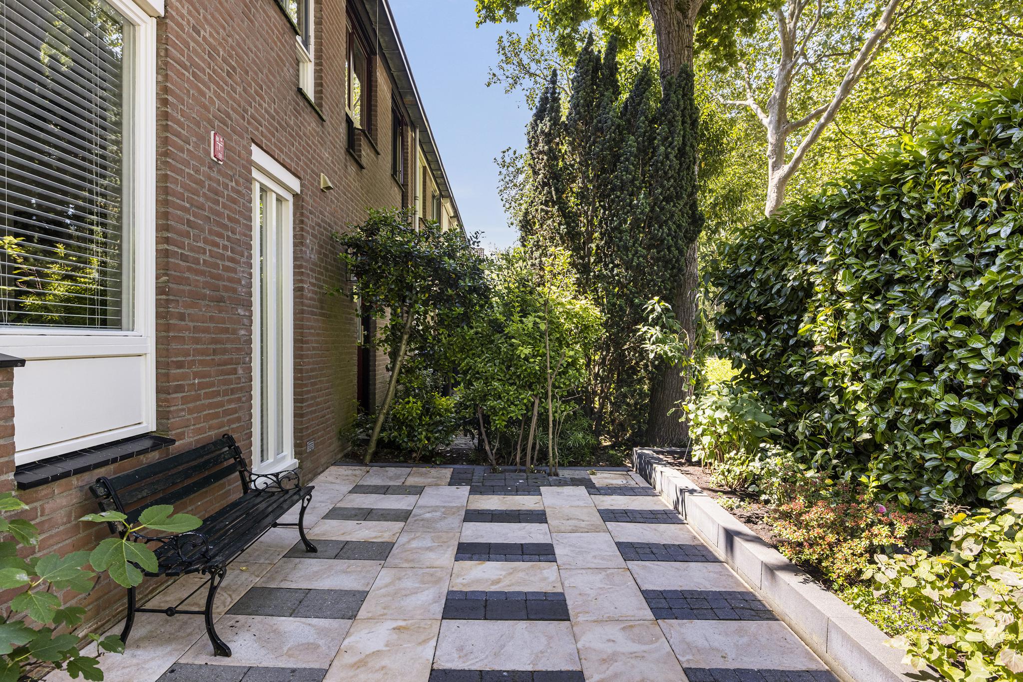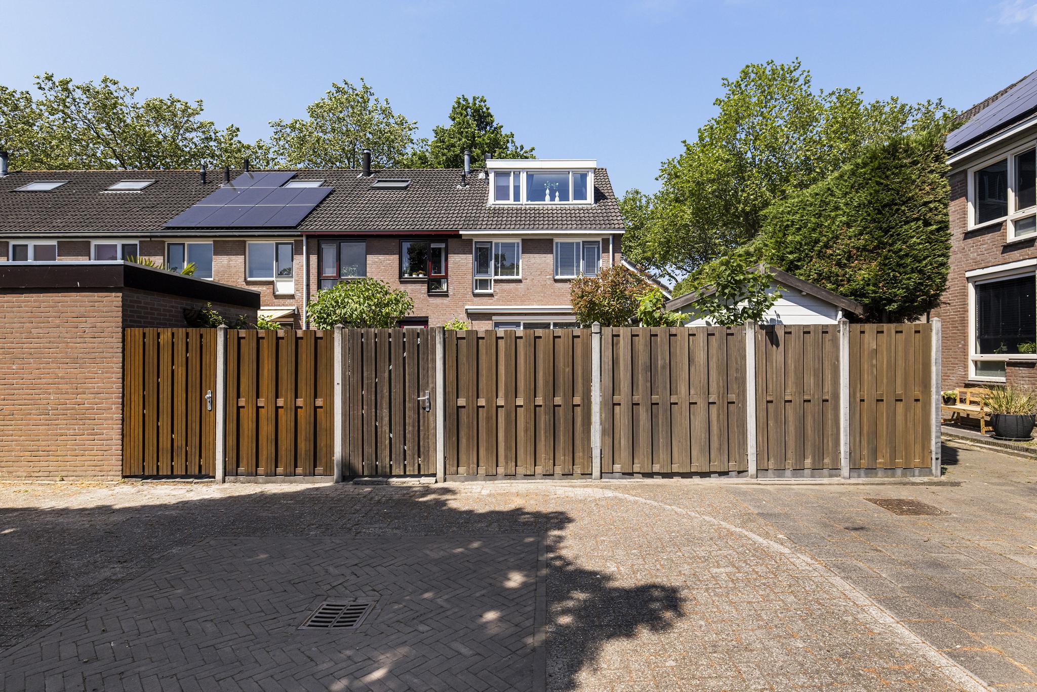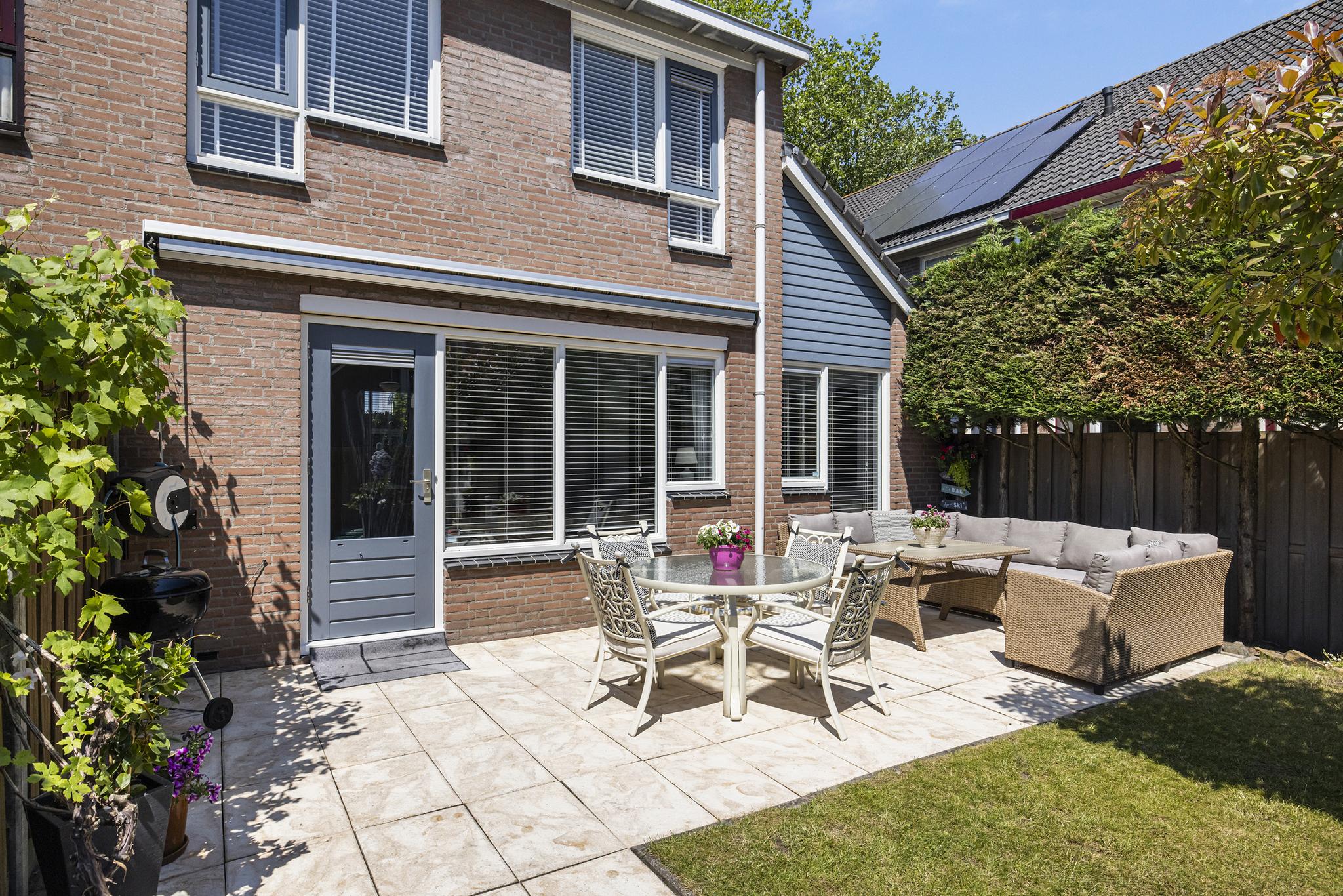 De zonnige tuin is gelegen op het zuidoosten en is deels betegeld en voorzien van gras. De tuin beschikt over een zonnescherm, een houten berging met elektra, mooie coniferenhaag en een achterom.