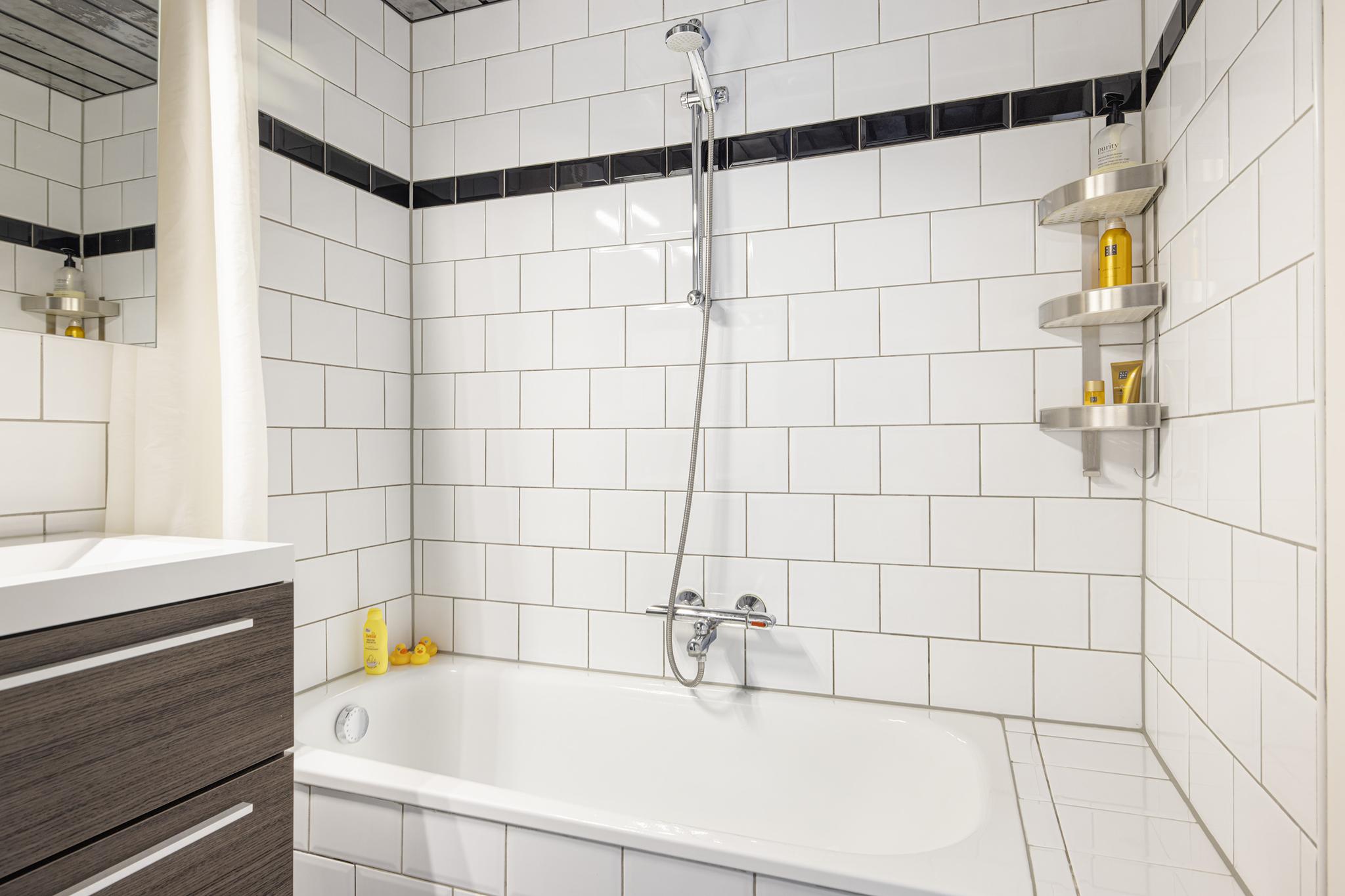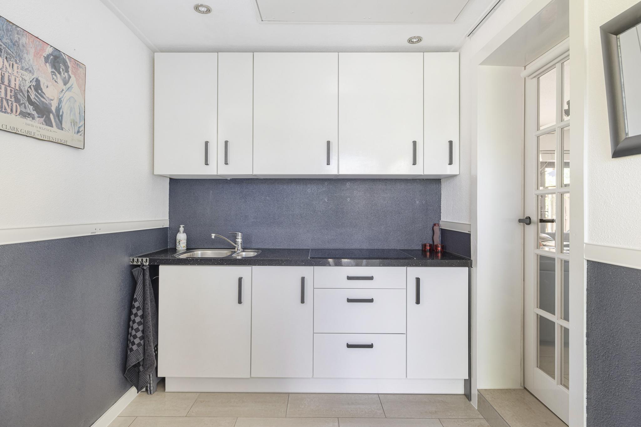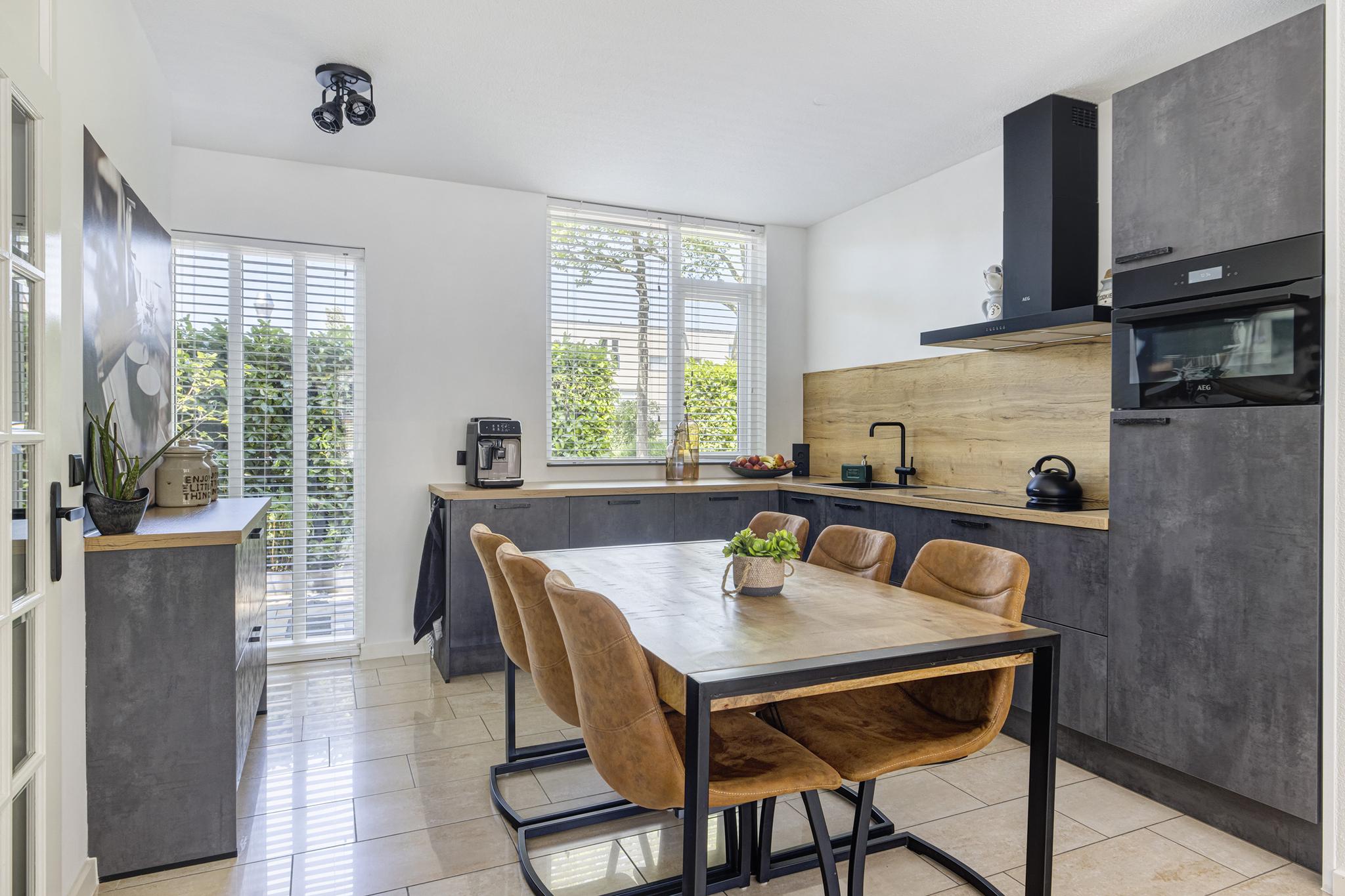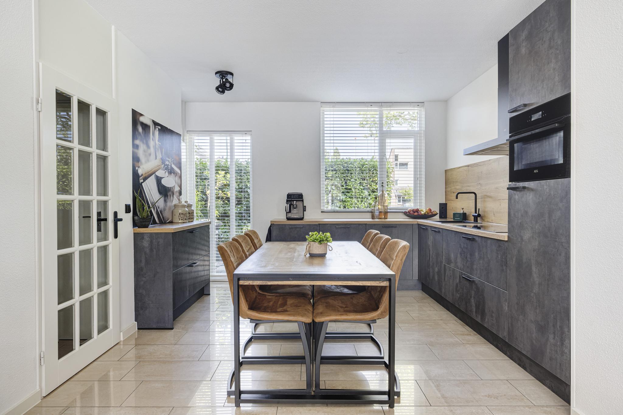 De hippe zwarte keuken in L-opstelling is in 2021 vernieuwd en beschikt over een inductiekookplaat, combi-oven, koelkast, vaatwasser, diepe laden in laden, zwarte spoelbak en kraan en een houtlook werkblad. Ook het kozijn aan voorzijde is in 2021 vernieuwd en is voorzien van HR++ glas.