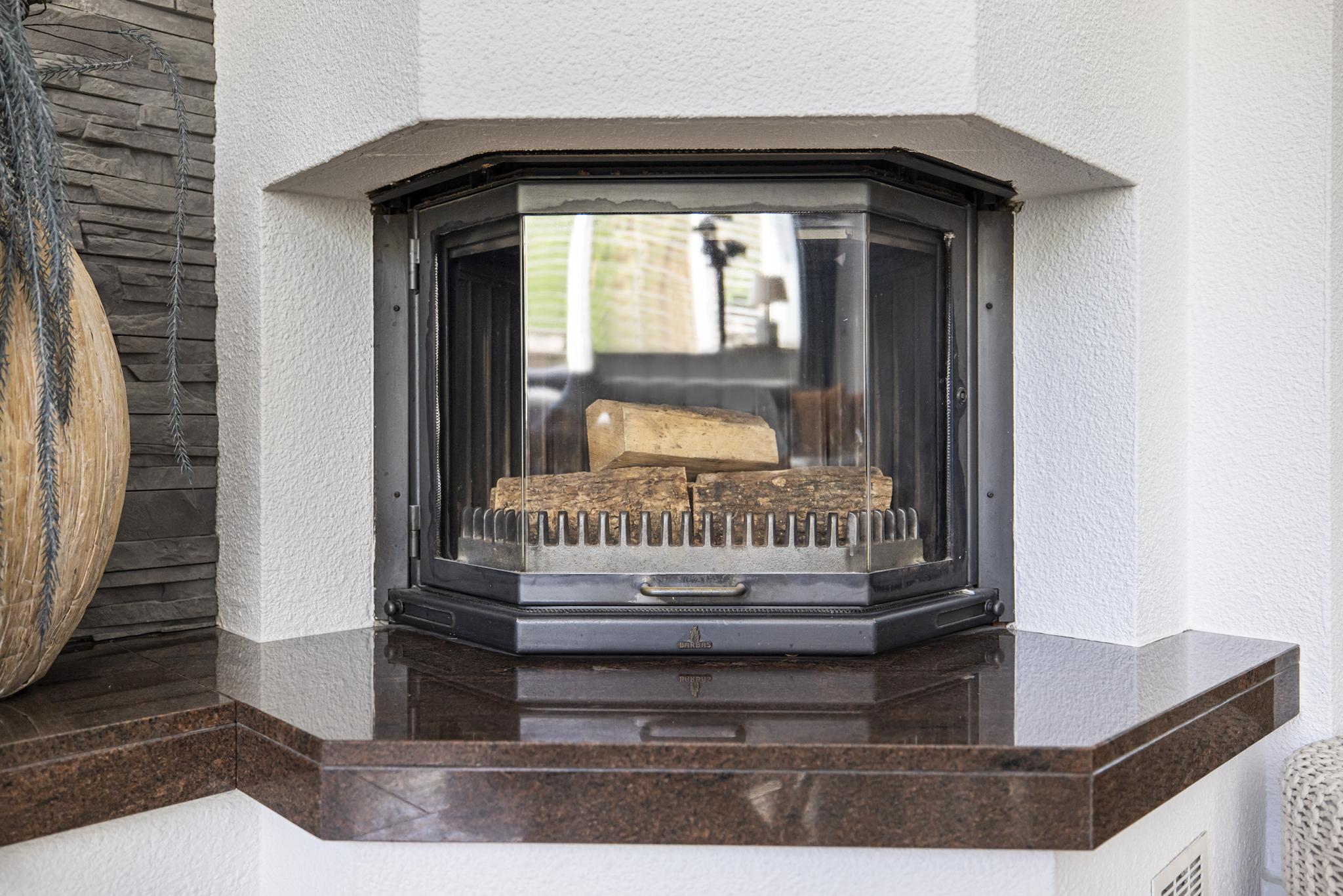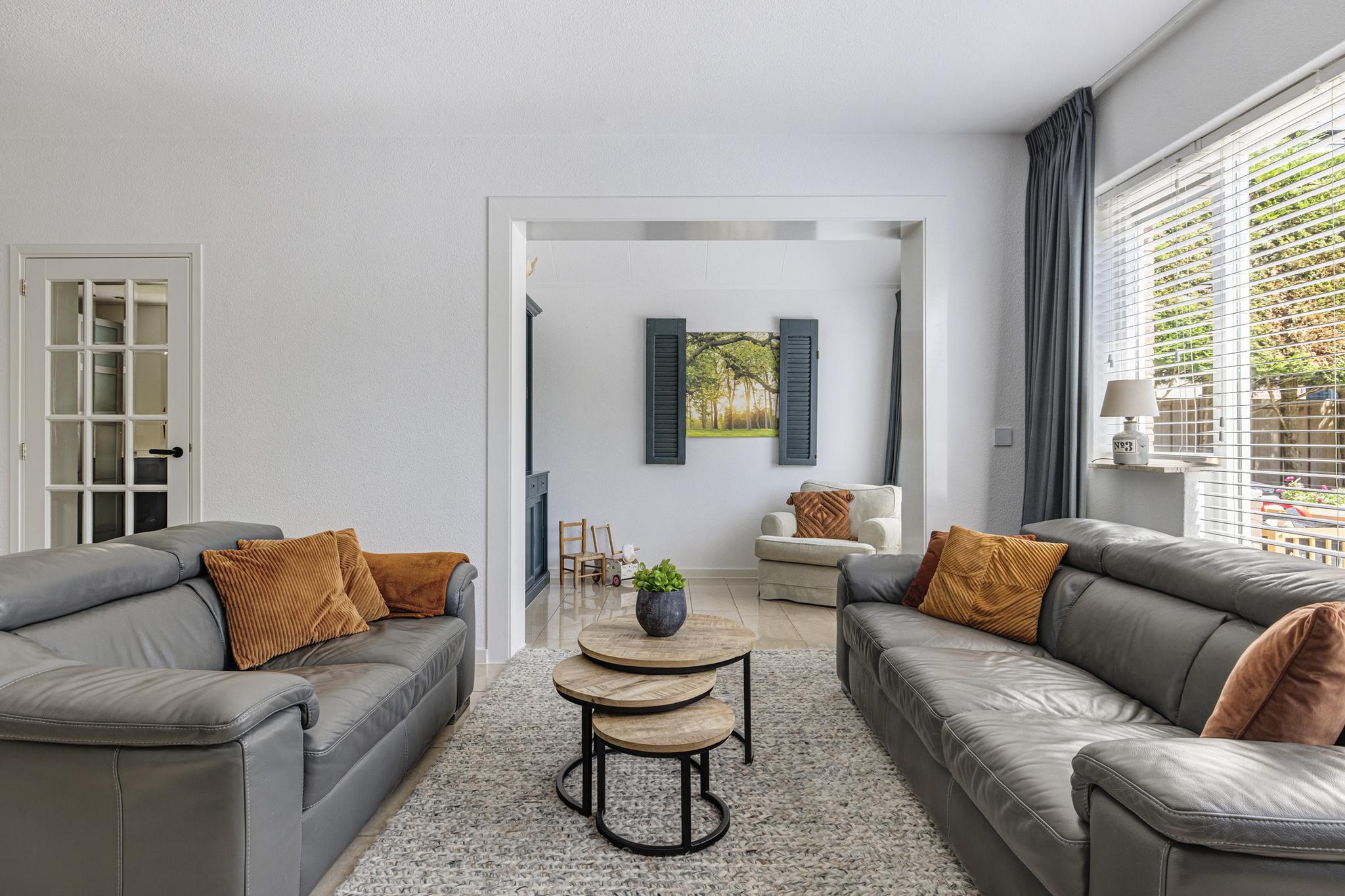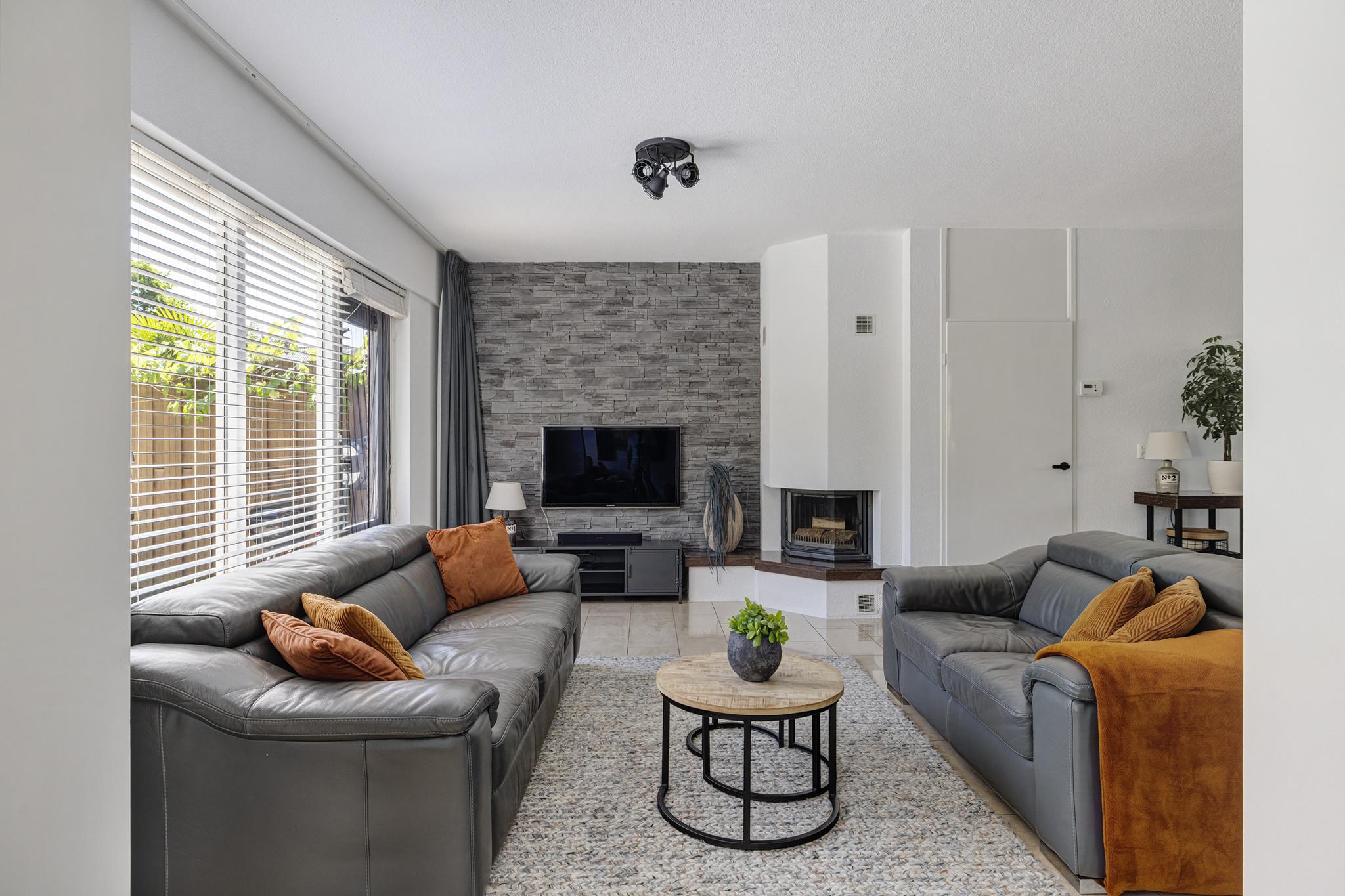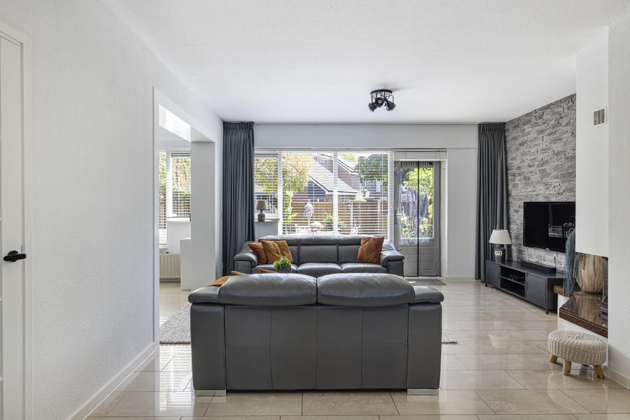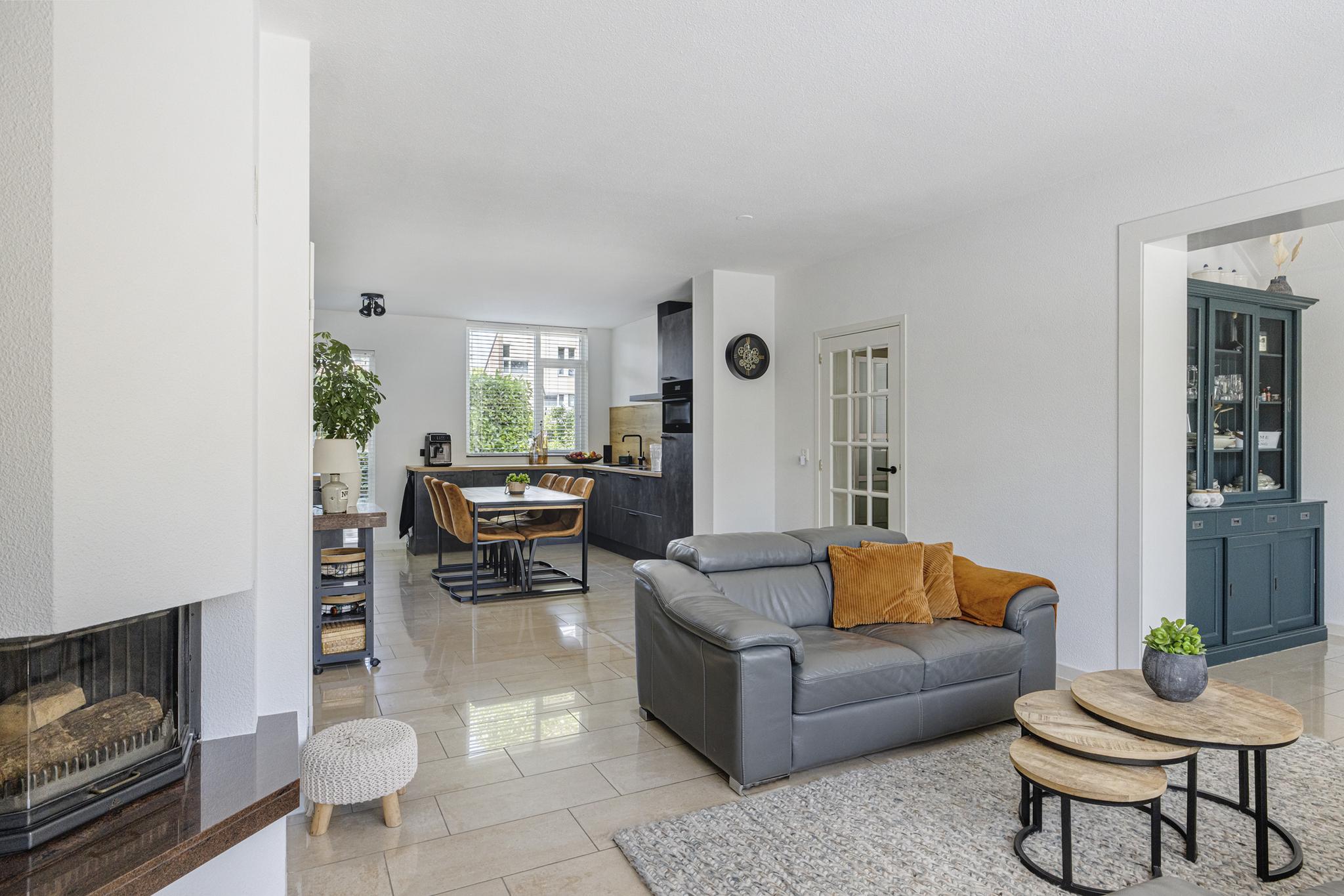 De woonkamer met de zijuitbouw en keuken aan voorzijde is heerlijk ruim en voorzien van een plavuizen vloer met vloerverwarming, trapkast, allesbrander, stucwerk en spagtelputz wandbekleding en een leistenen wand in de uitbouw. De meterkast (7 groepen, 1 dubbele groep, 2 aardlekschakelaars, slimme meters, glasvezel) bevindt zich voorin de woonkamer.