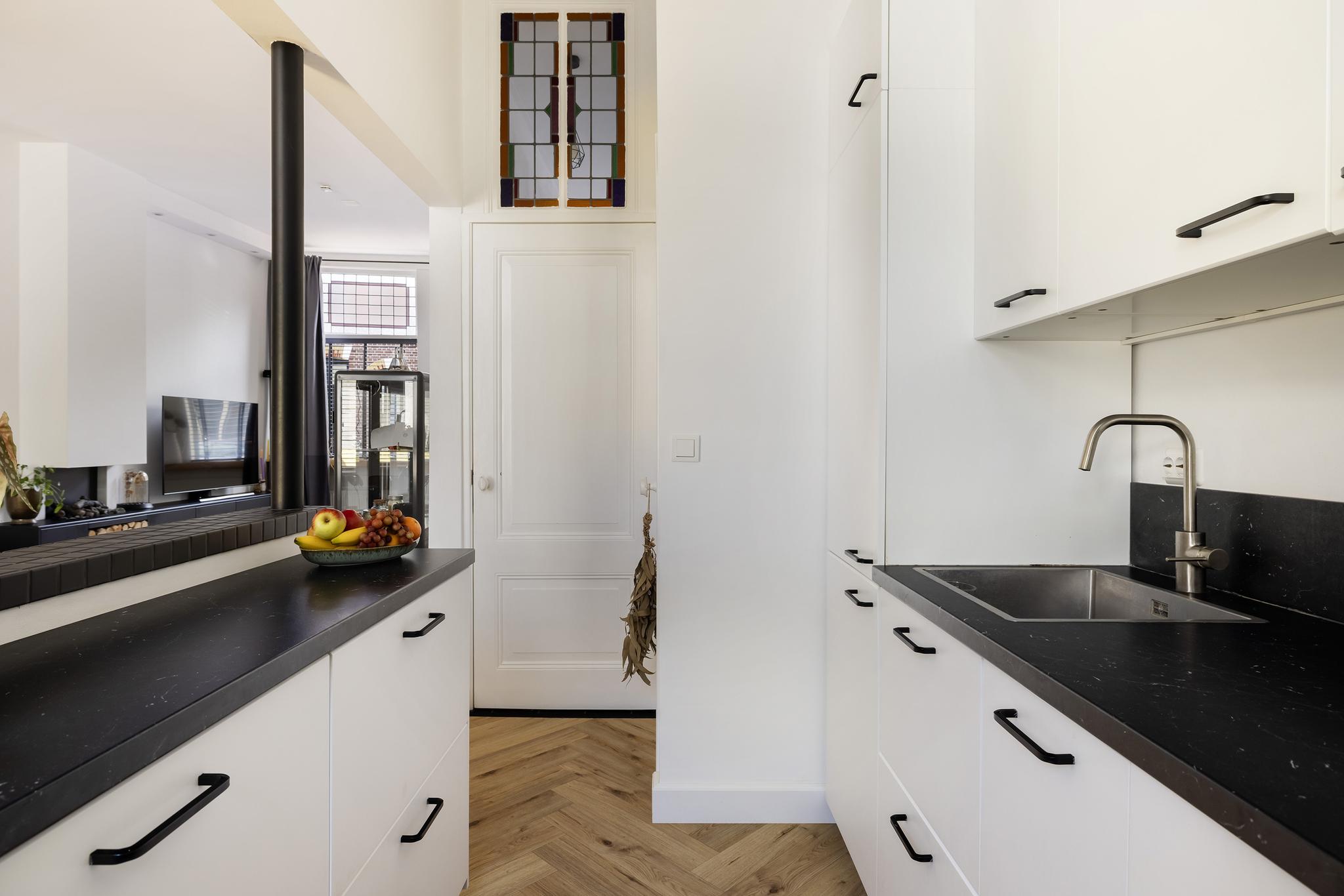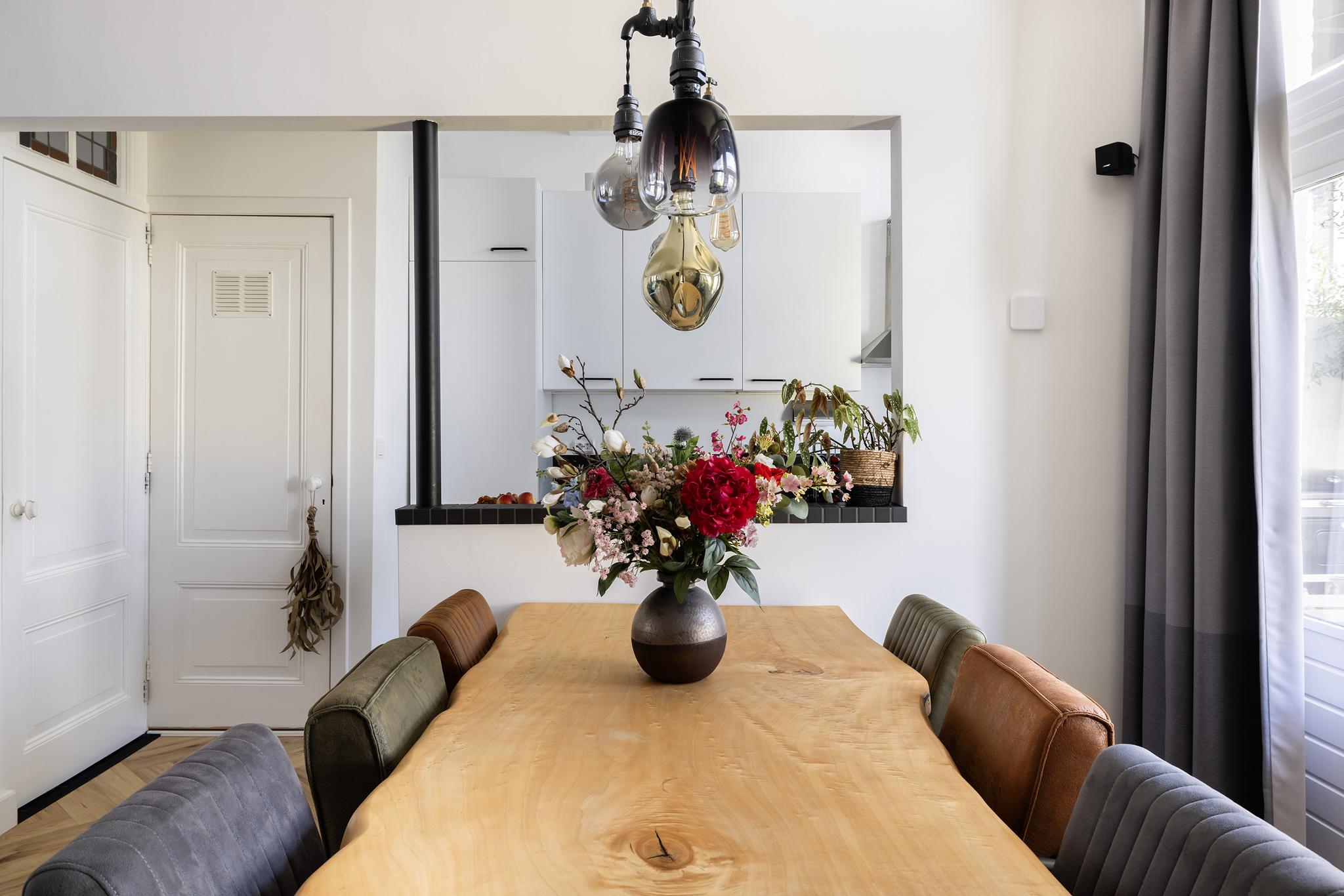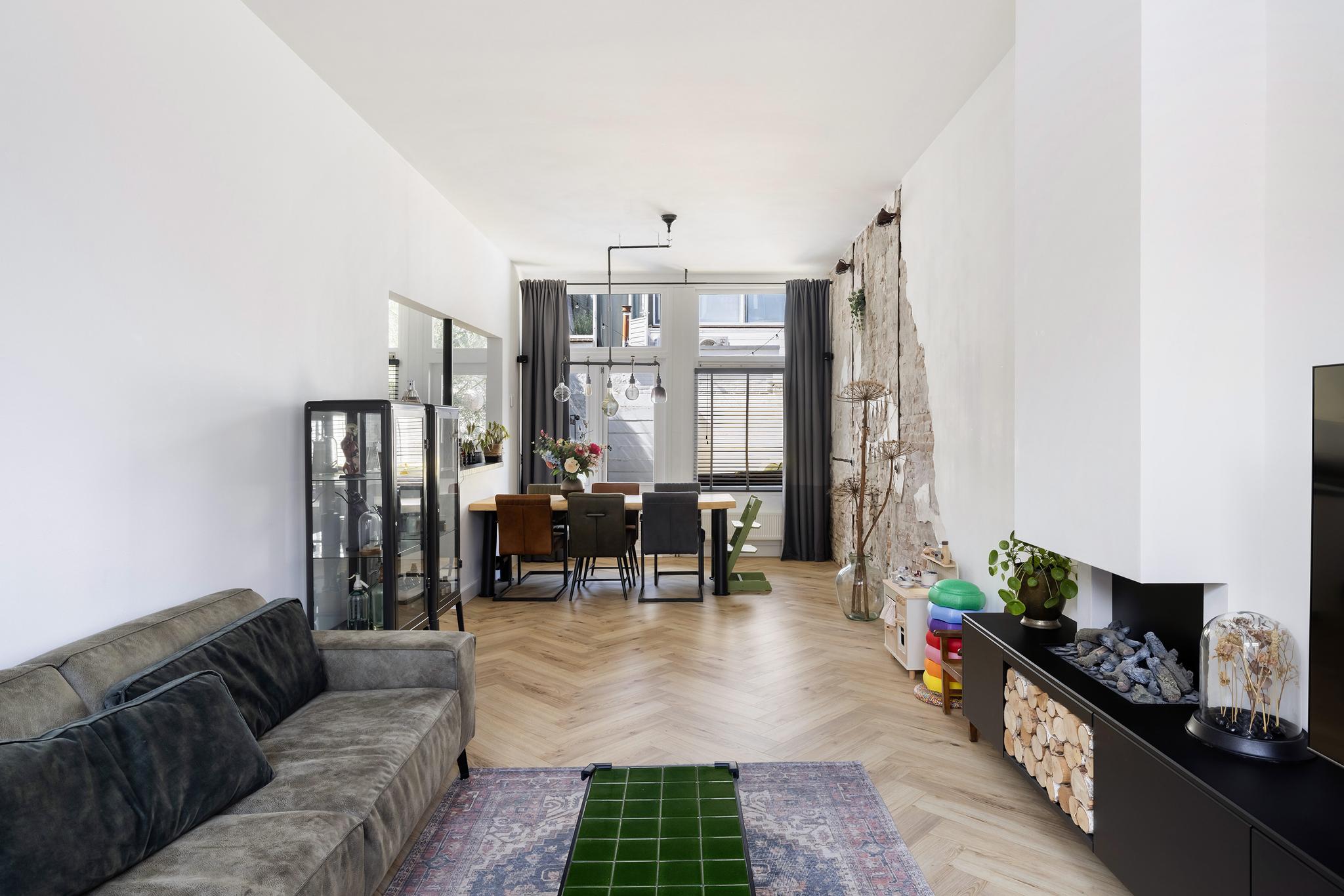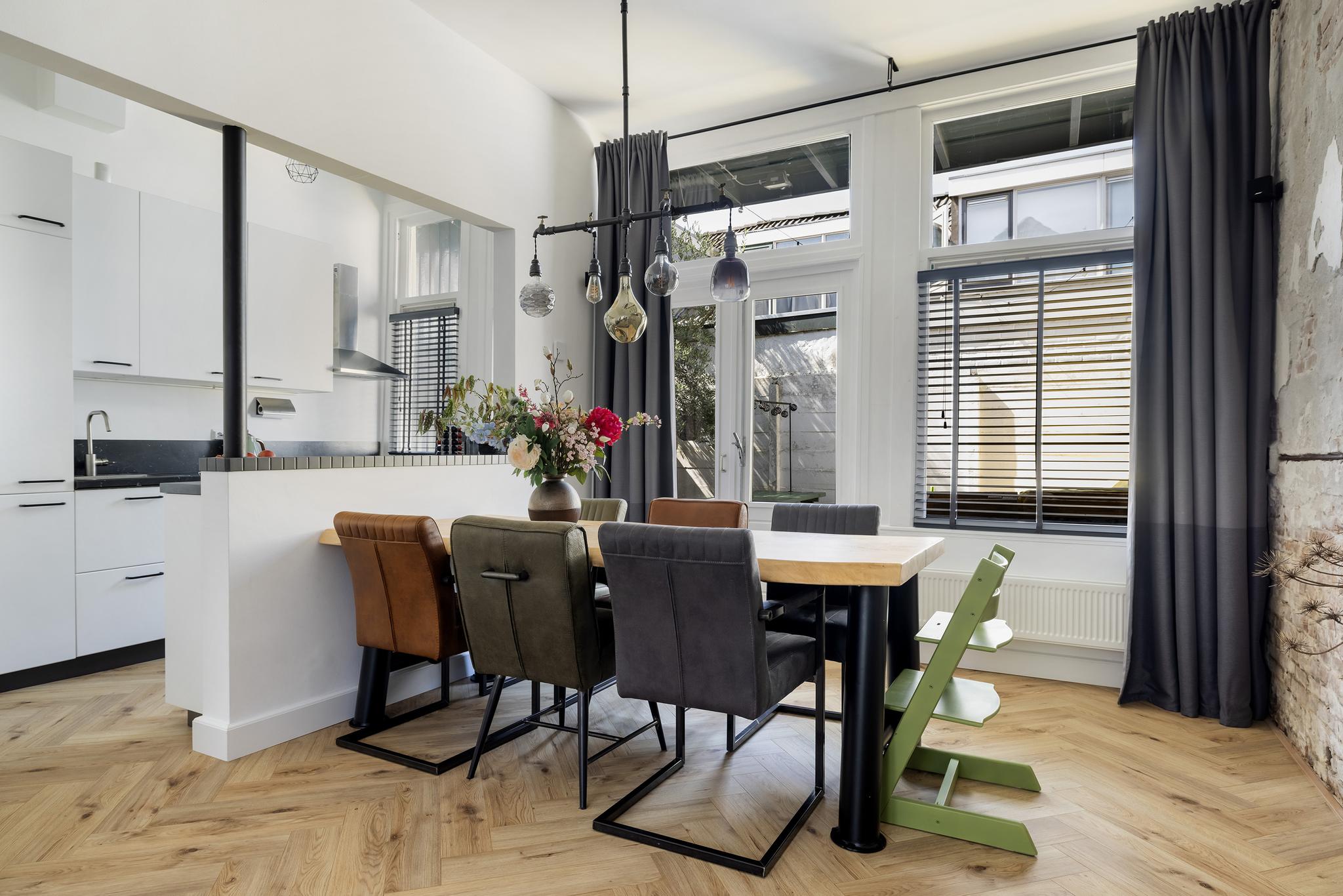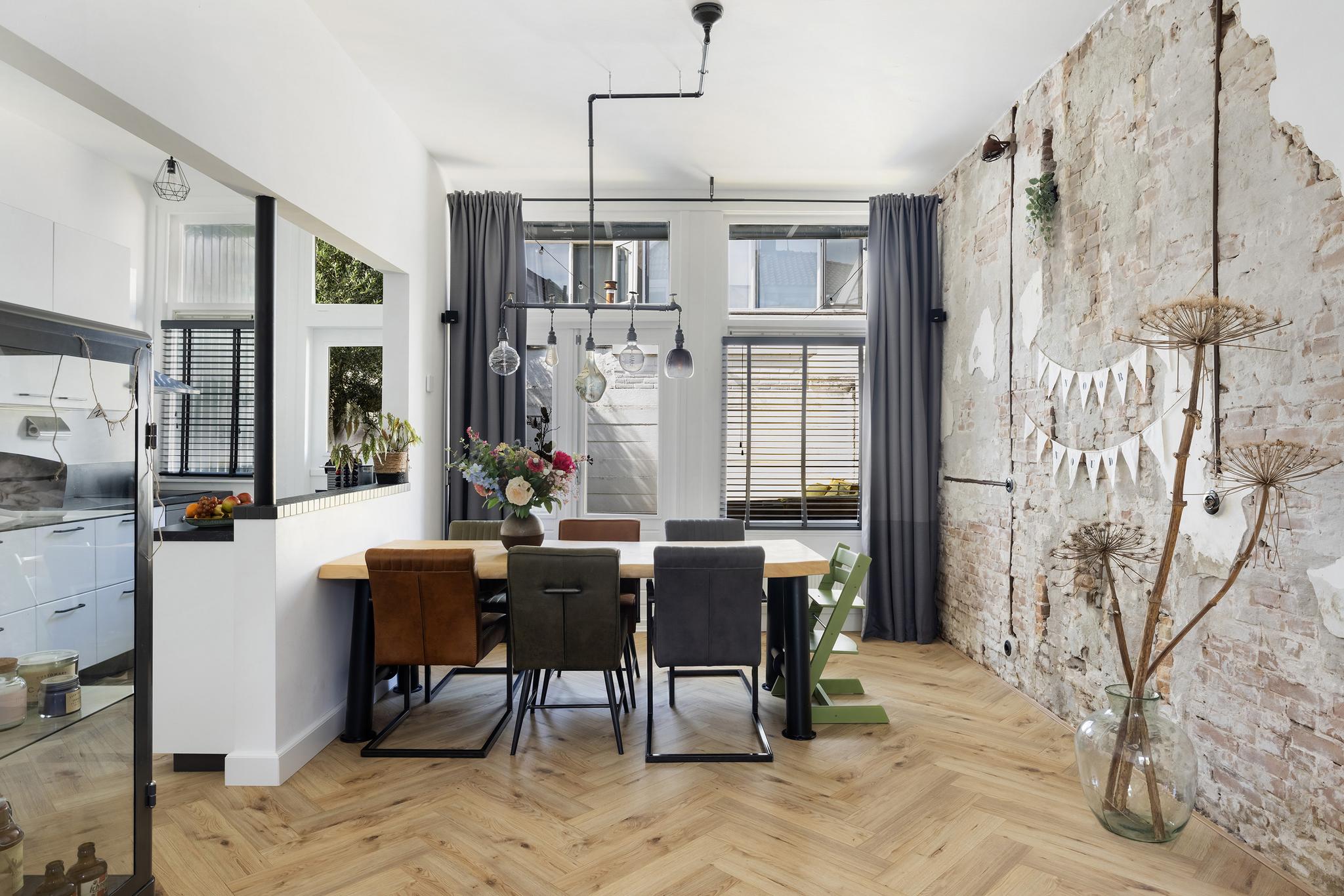 Modern, een tikkie industrieel, maar bovenal een heel sfeervol; De la Reystraat 9 in het centrum van Dordrecht. Het begint in de groene straat met waanzinnige gevels, alle woningen hebben een karakteristieke uitstraling, je wordt dus al helemaal happy wanneer je de auto parkeert. De lange hal heeft gezellige tegels en in de verte zie je de deur naar de woonkamer met daarboven het bijzondere glas-in-lood. De afgelopen jaren is de woning flink aangepakt, de keuken is bijvoorbeeld opengebroken waardoor je een gezellige verbinding hebt met het eetgedeelte. Een mooie visgraatvloer, hoge plafonds en royale ramen waar de zwarte jaloezieën prachtig uitkomen en ook hier weer het glas-in-lood. De bakstenen muur met koperen leidingen en bakelieten stopcontacten geeft een stoere tint aan de woning.