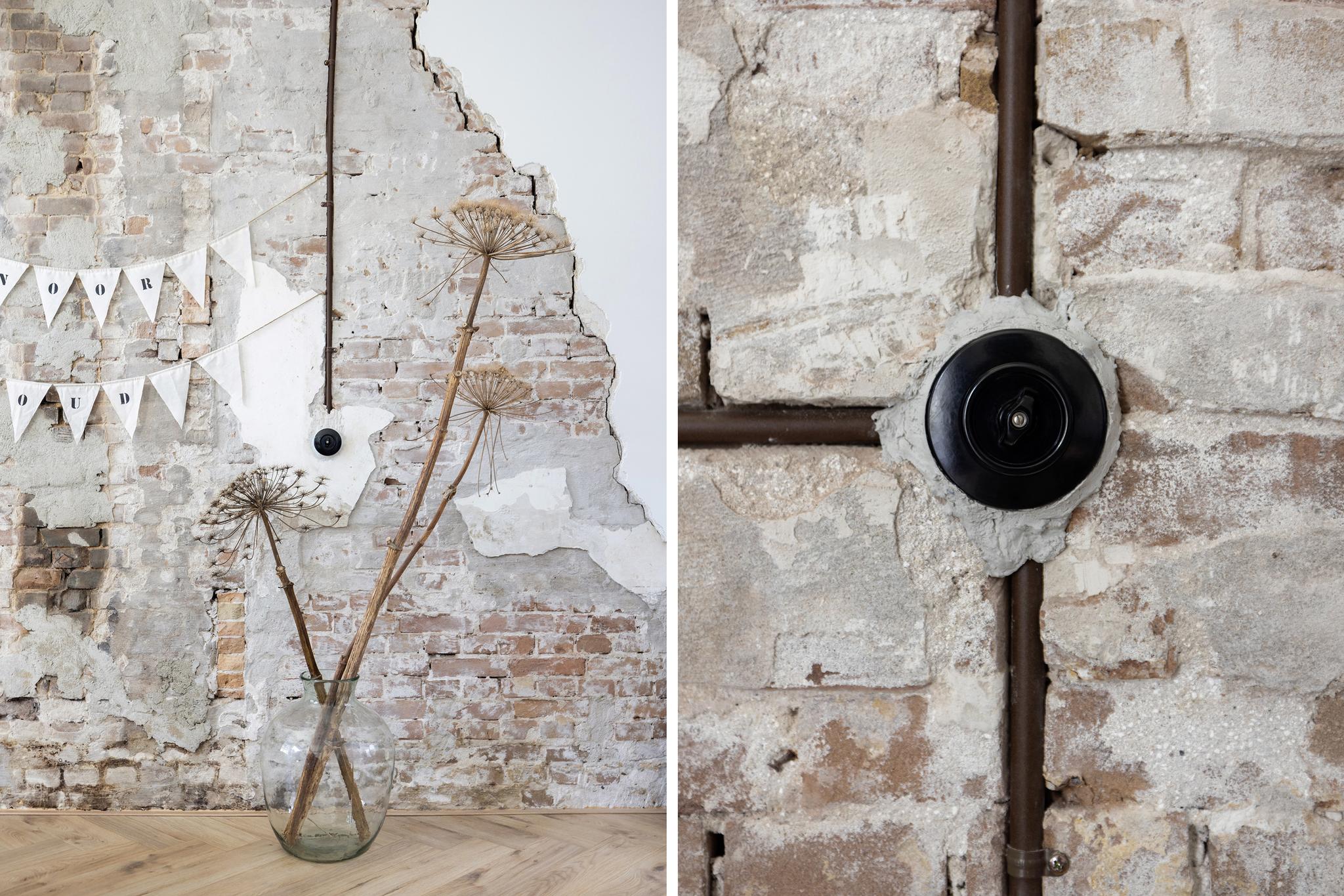 - Deel van de lange wand in woonkamer is geïmpregneerd.