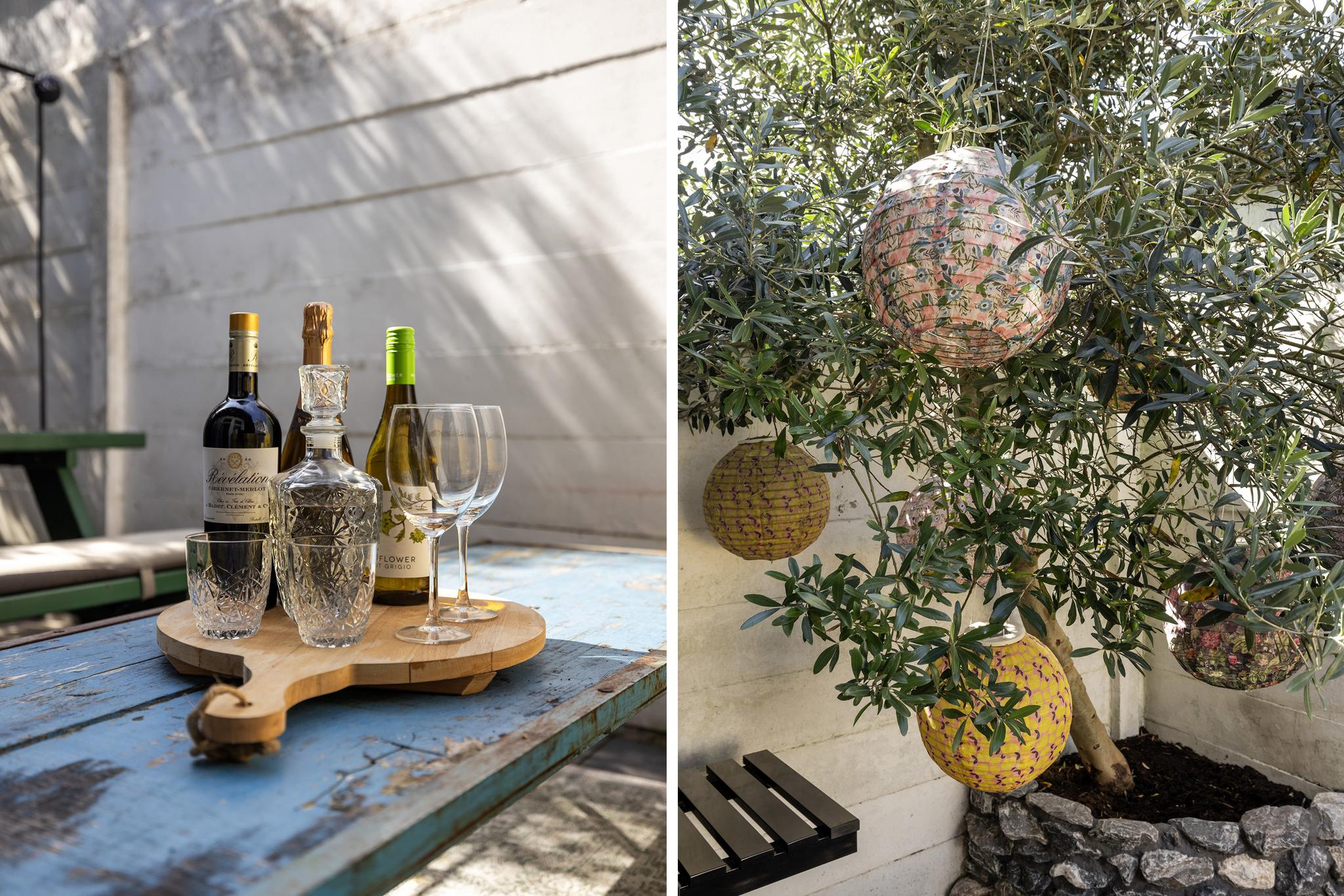 De grote verrassing is de lekkere tuin waar de drankjes al klaar staan voor ons. Dit is een perfect plekkie voor een ontbijt, lunch, borrel of diner. Of gewoon voor een glaasje water, er is altijd een goede gelegenheid om hier eventjes met de benen omhoog te zitten.