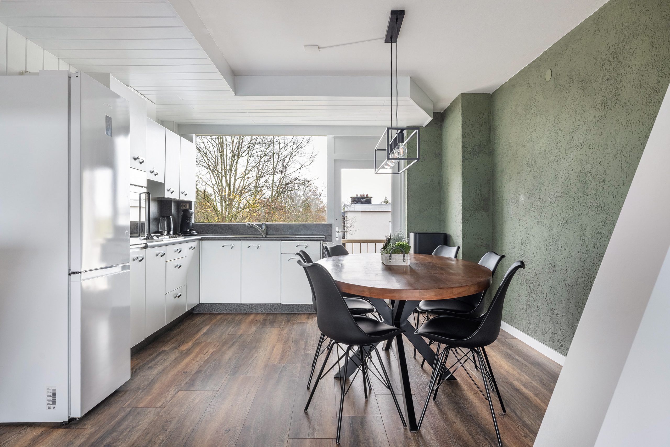 Binnen is alles met zorg aangepakt. De keuken is slim verplaatst, waardoor een ruimtelijke, open leefruimte is ontstaan. Koken, borrelen of gewoon lekker met vrienden aan tafel zitten, het voelt hier allemaal heerlijk vrij.
