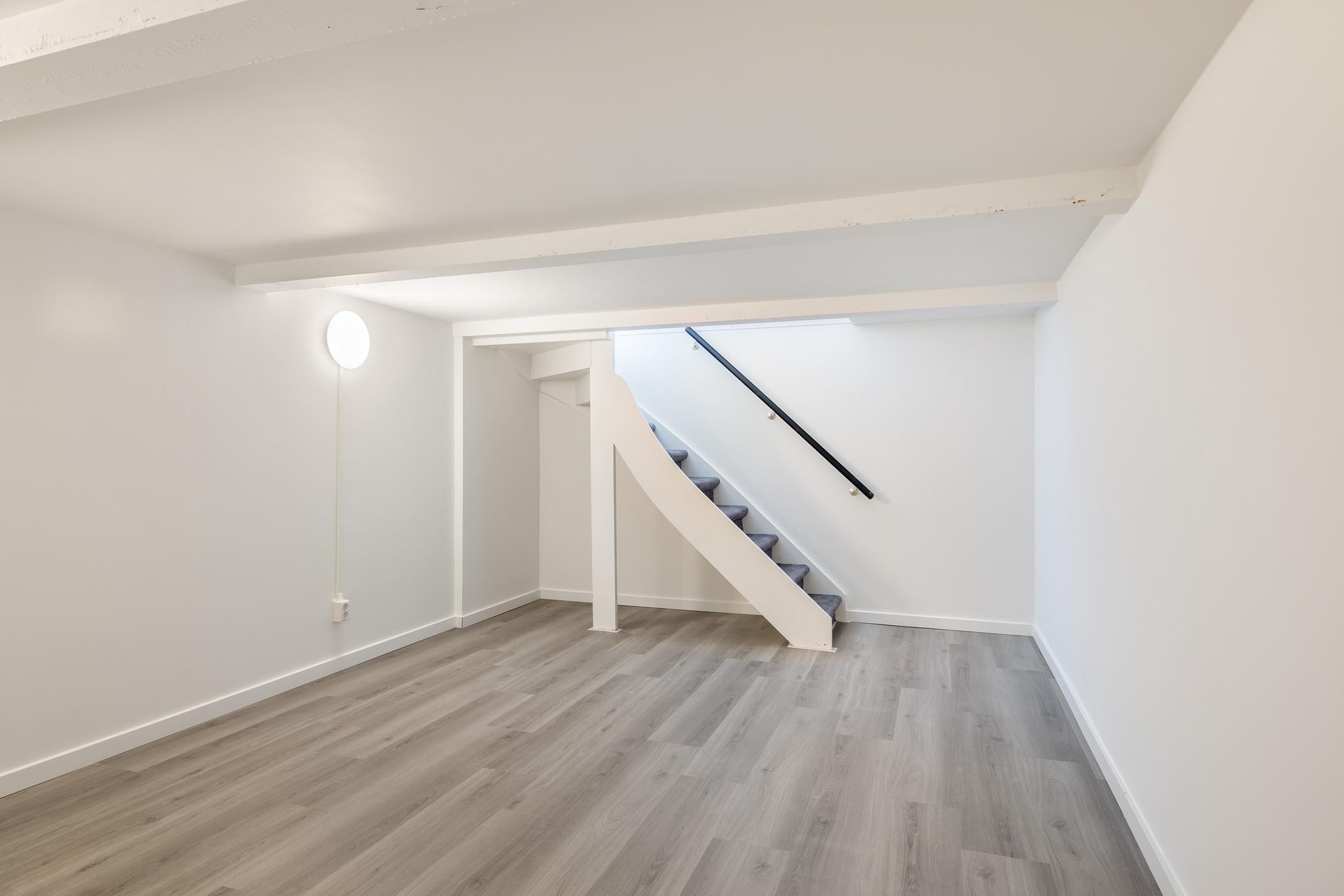 De kelder ruimte is een super toffe ruimte om te gebruiken als bijvoorbeeld werkkamer, hobbyruimte, bioscoopruimte of game room. Officieel mag dit GEEN woonoppervlakte heten aangezien er geen raam aanwezig is. De ruimte is echter volledig gestuct, voorzien van PVC laminaat, verlichting en verwarming waardoor deze perfect bruikbaar is.
