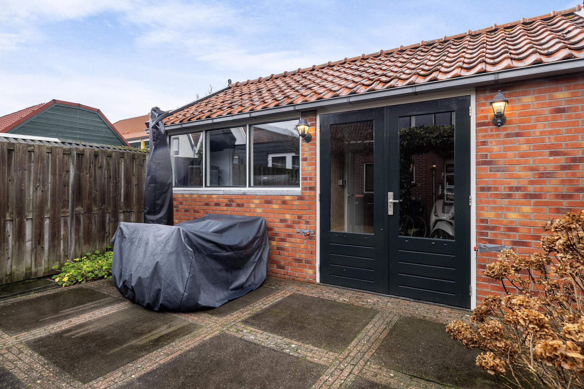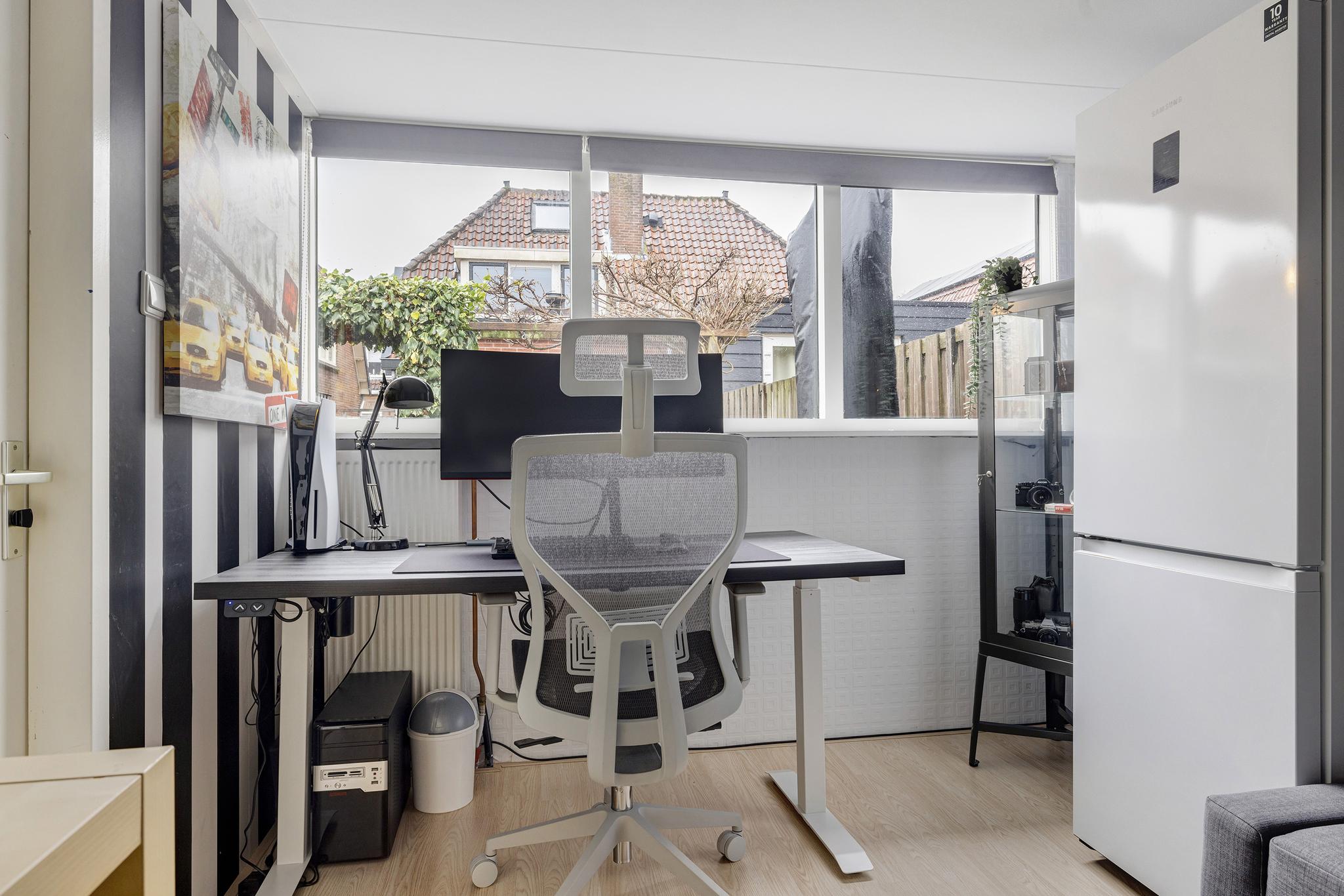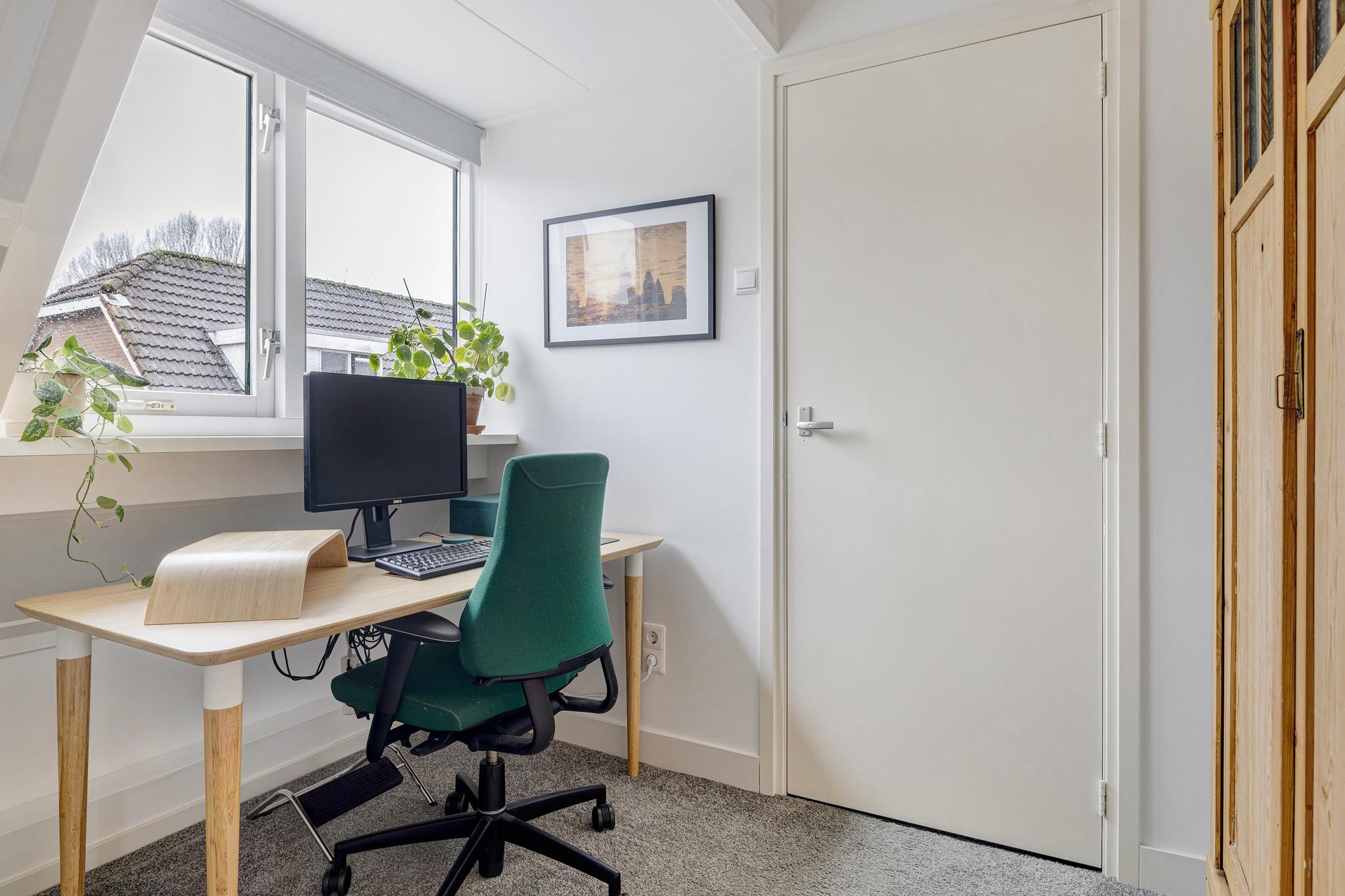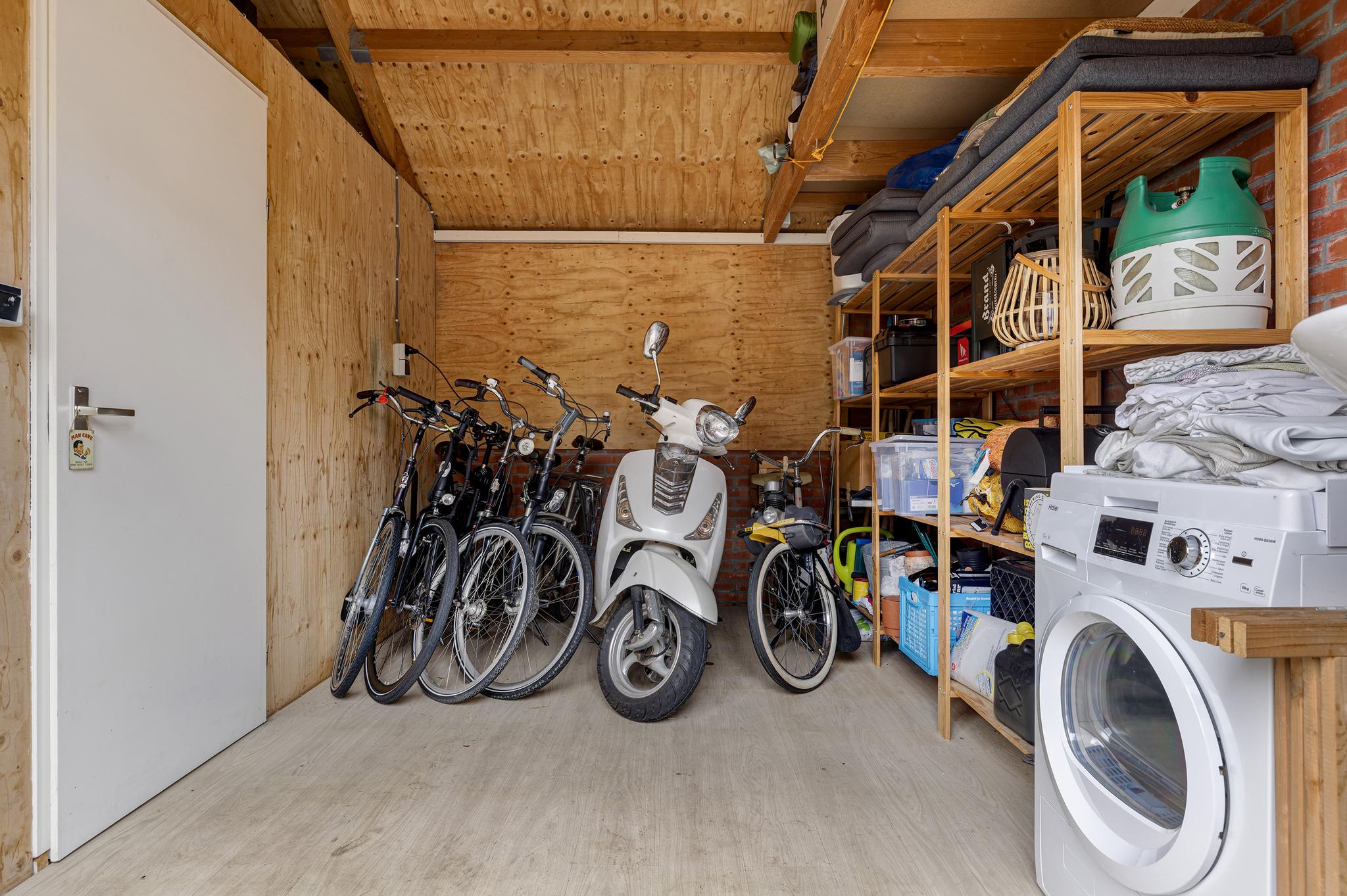 Dit klinkt al goed, en dan moet het leukste nog komen, namelijk de ruime berging met een waar thuiskantoor achterin de tuin. De berging beschikt de bergruimte met wateraansluiting, afvoer en extra bergruimte in de nok.