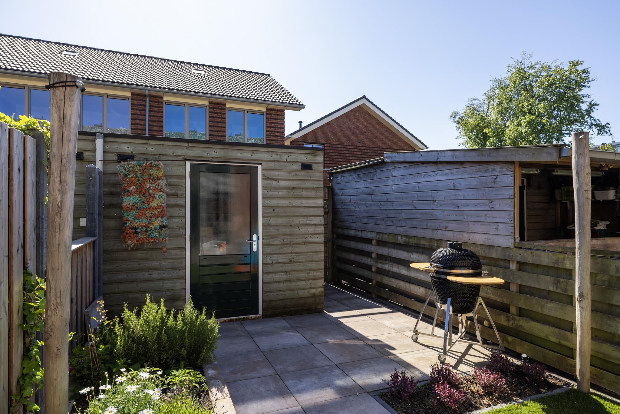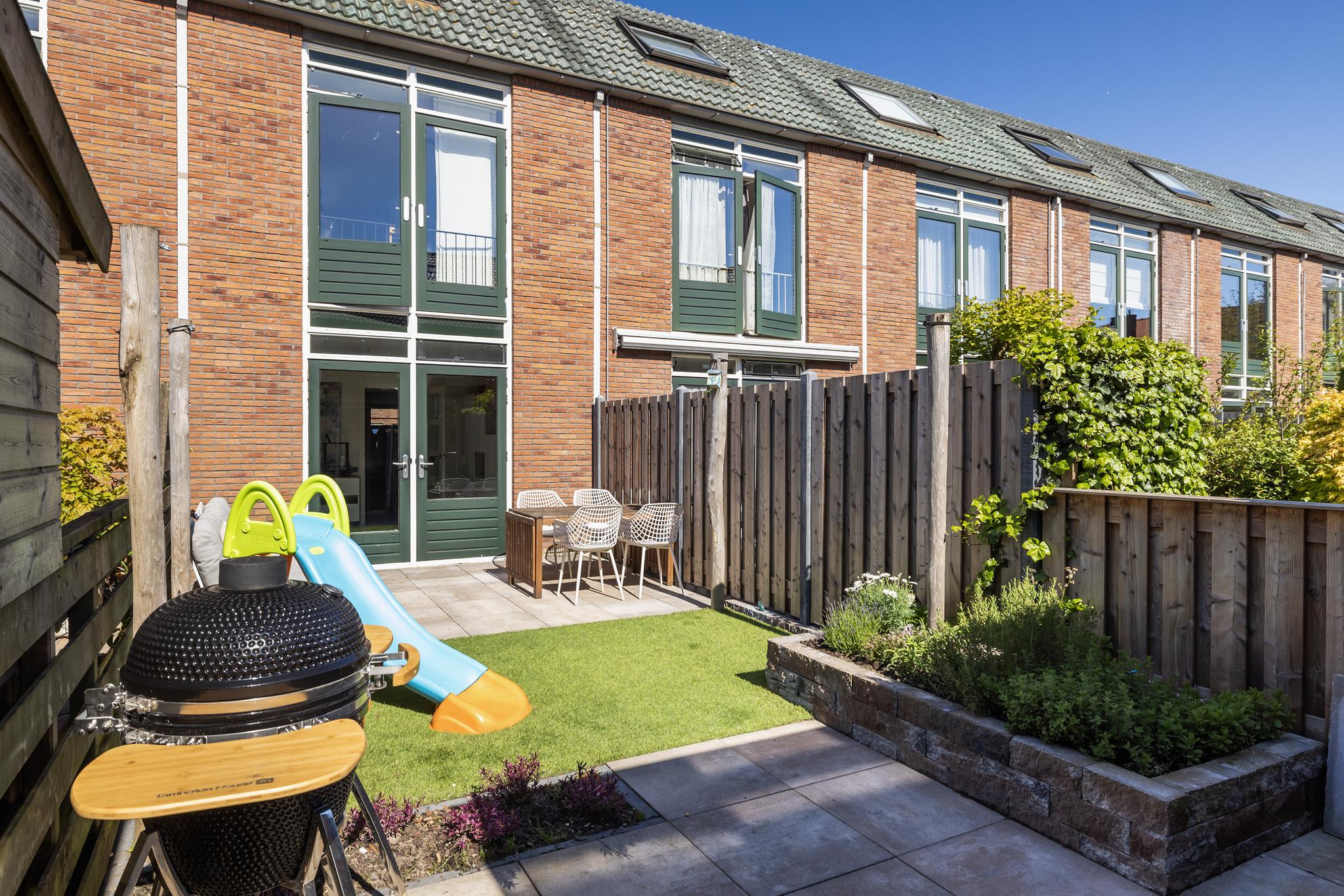De achtertuin is gelegen op het zuidwesten en is in 2023 voorzien van nieuwe tegels, kunstgras, beplanting en een zonnedoek om een fijne schaduwplek te creëren. De houten berging is voorzien van verlichting en elektra. Verder beschikt de tuin over een achterom.