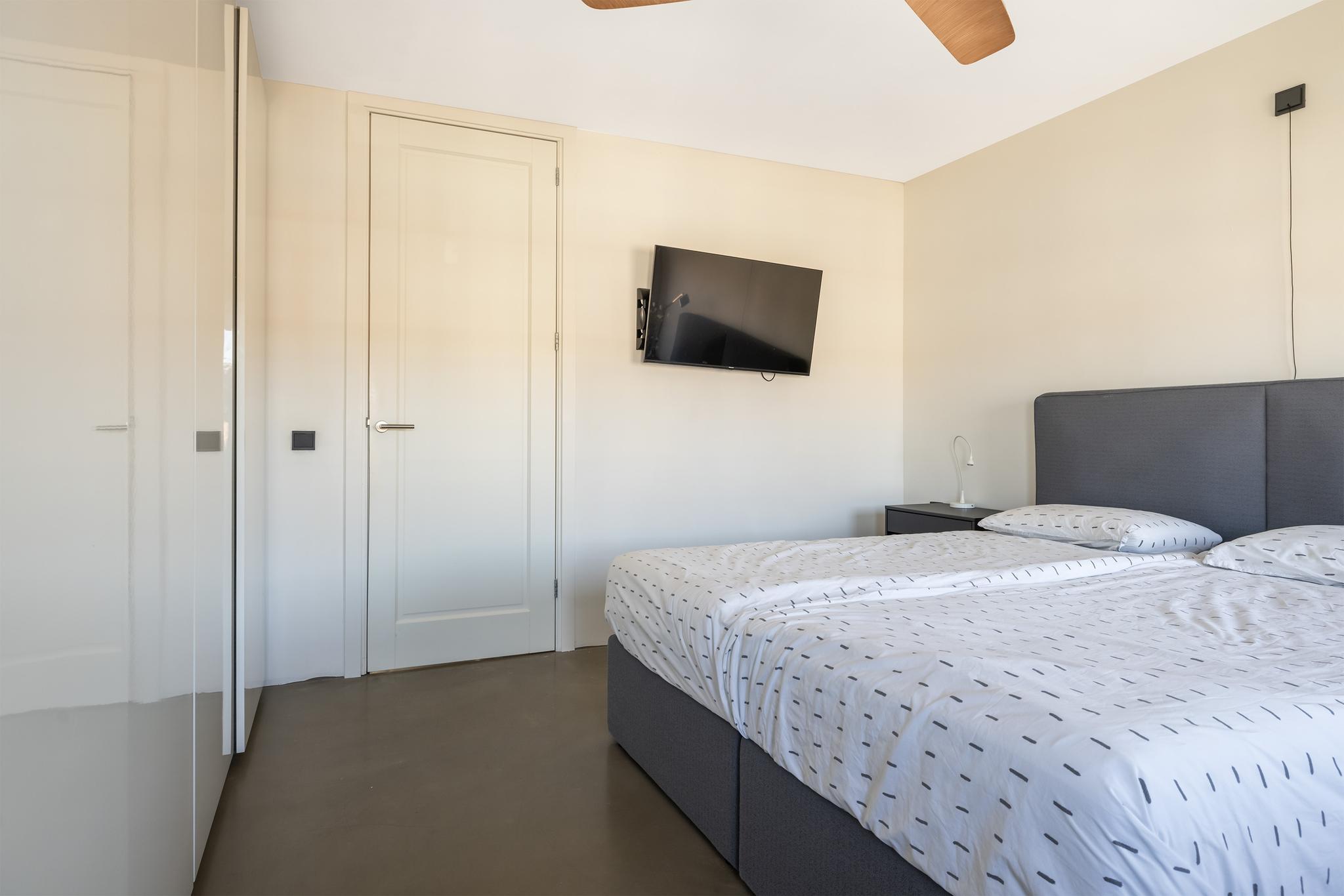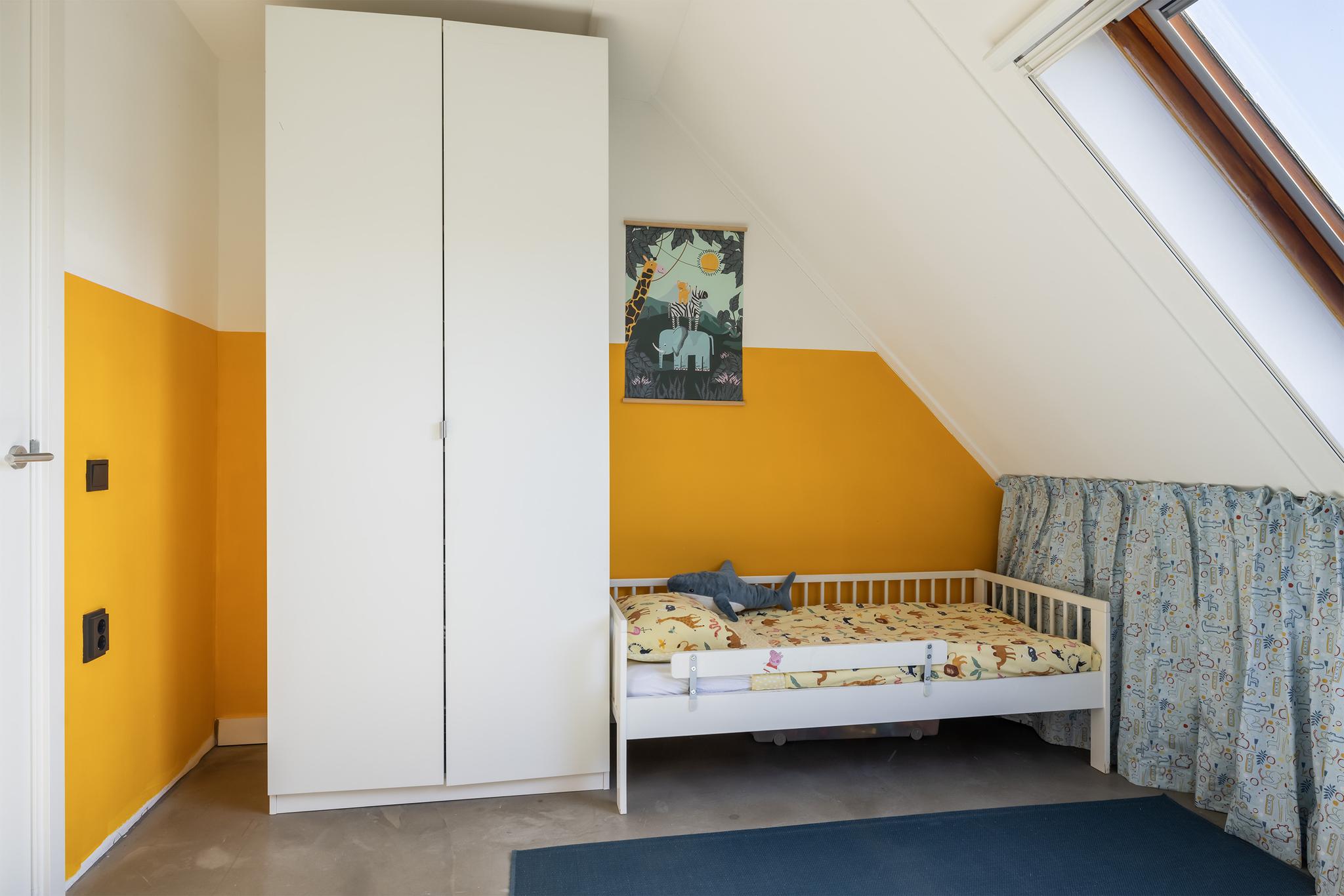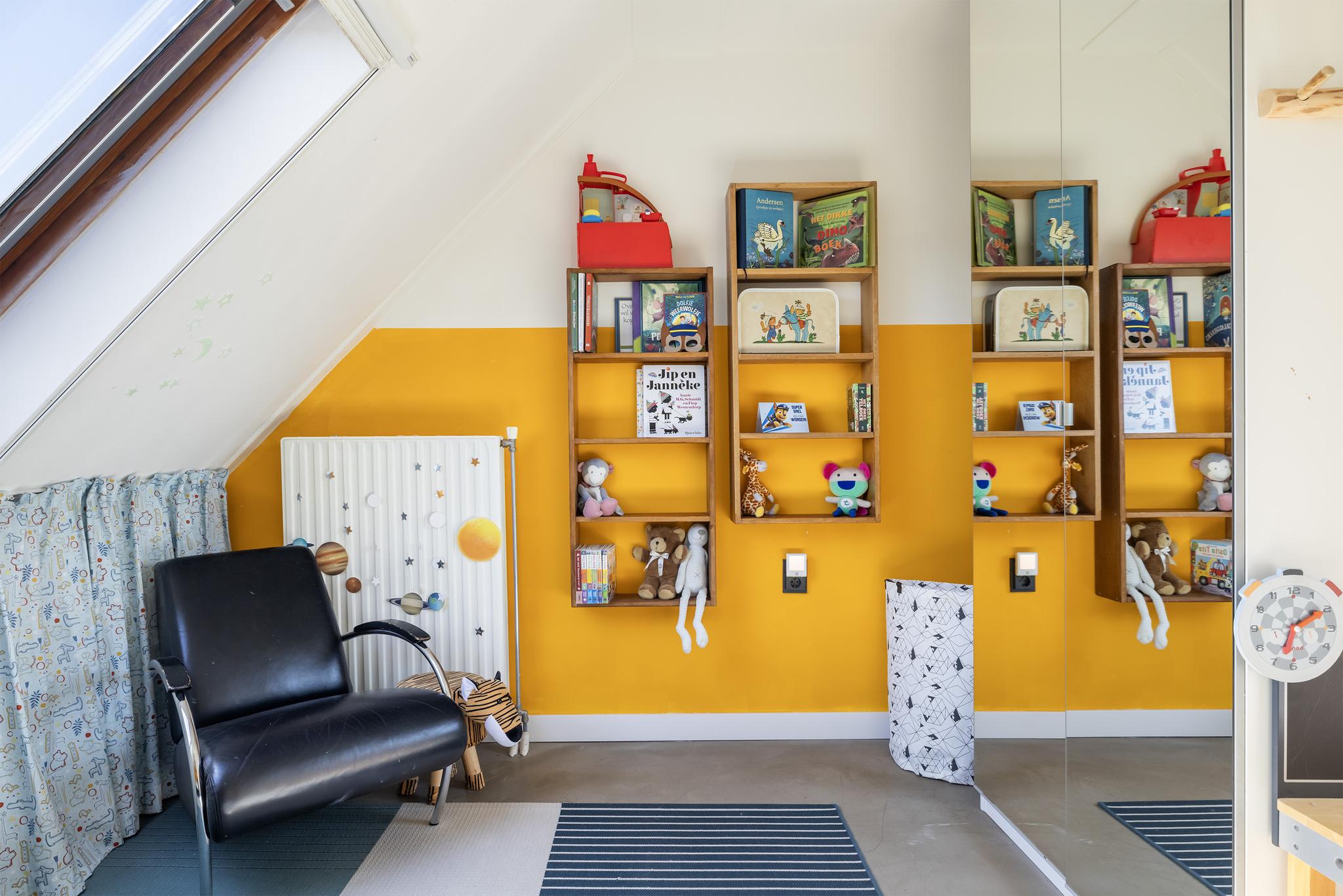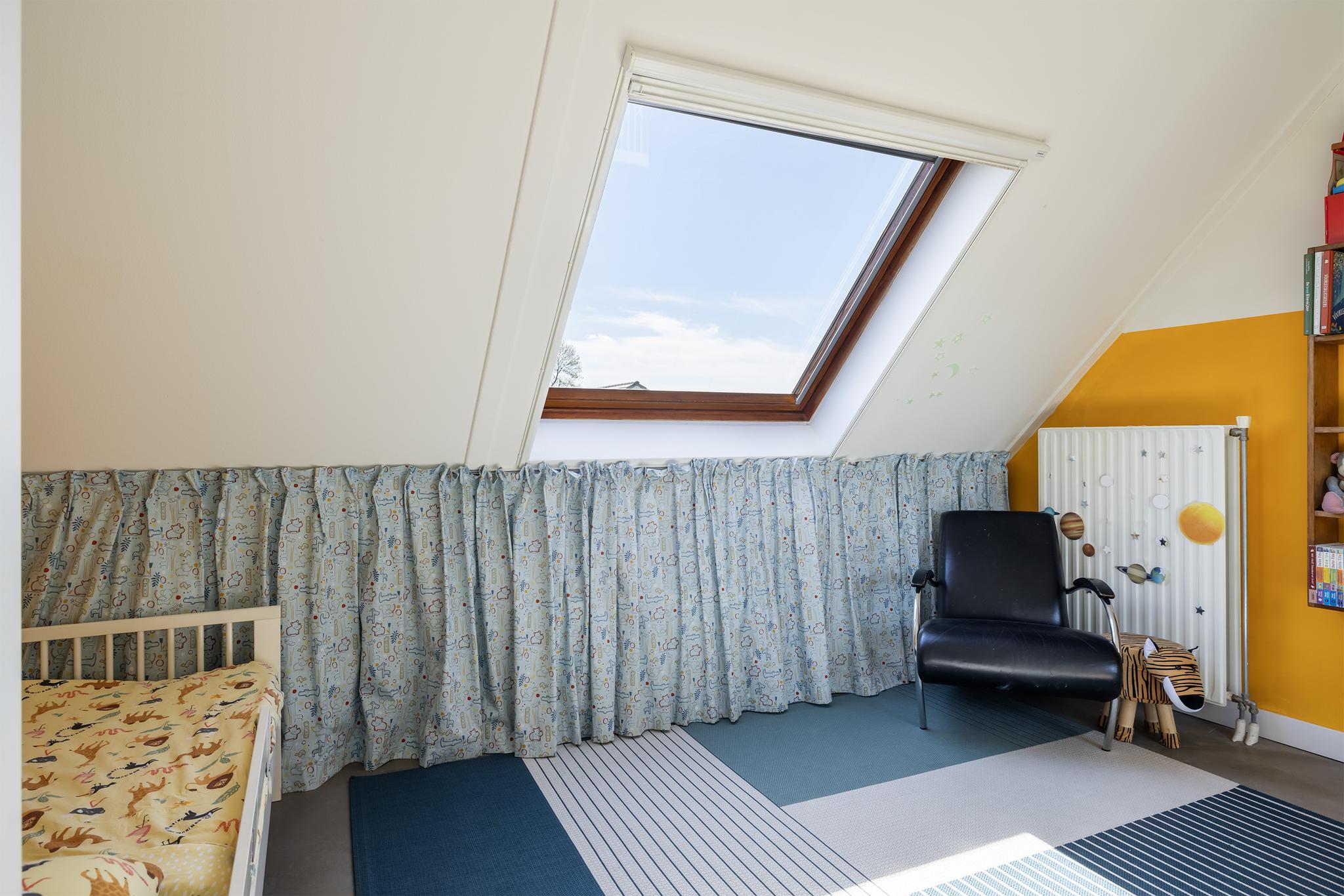 De tweede slaapkamer op deze verdieping bevindt zich aan de achterzijde. Deze kamer beschikt over dezelfde afwerking als de grote slaapkamer en is verder voorzien van een dakraam en fijne bergruimte onder het schuine dak.