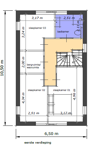 Kies je voor een wasruimte op de begane grond, dan kan deze ruimte op de verdieping bijvoorbeeld bij een slaapkamer worden getrokken. Deze gehele verdieping is standaard voorzien van vloerverwarming.
