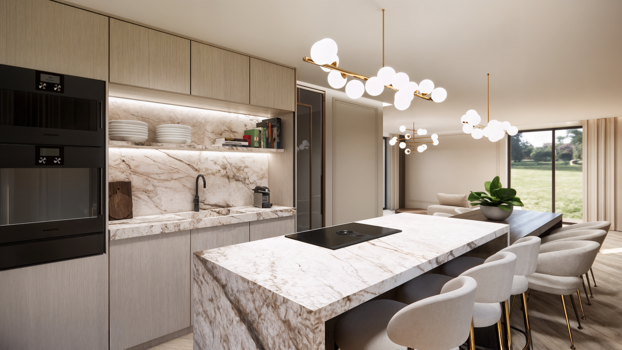 De open keuken aan achterzijde biedt ruimte voor een moderne leefkeuken met kookeiland.