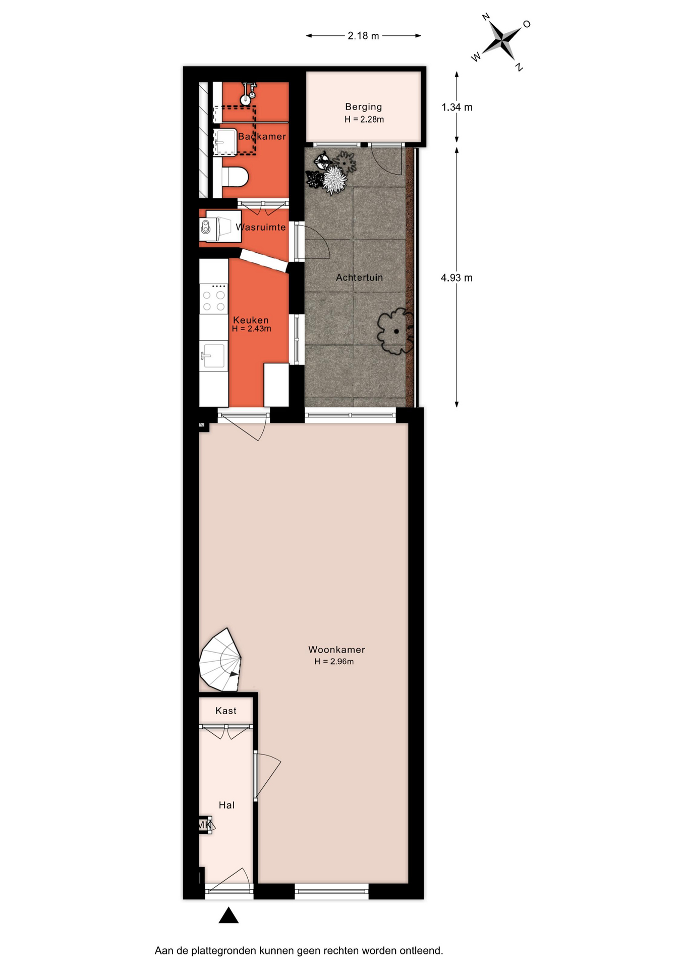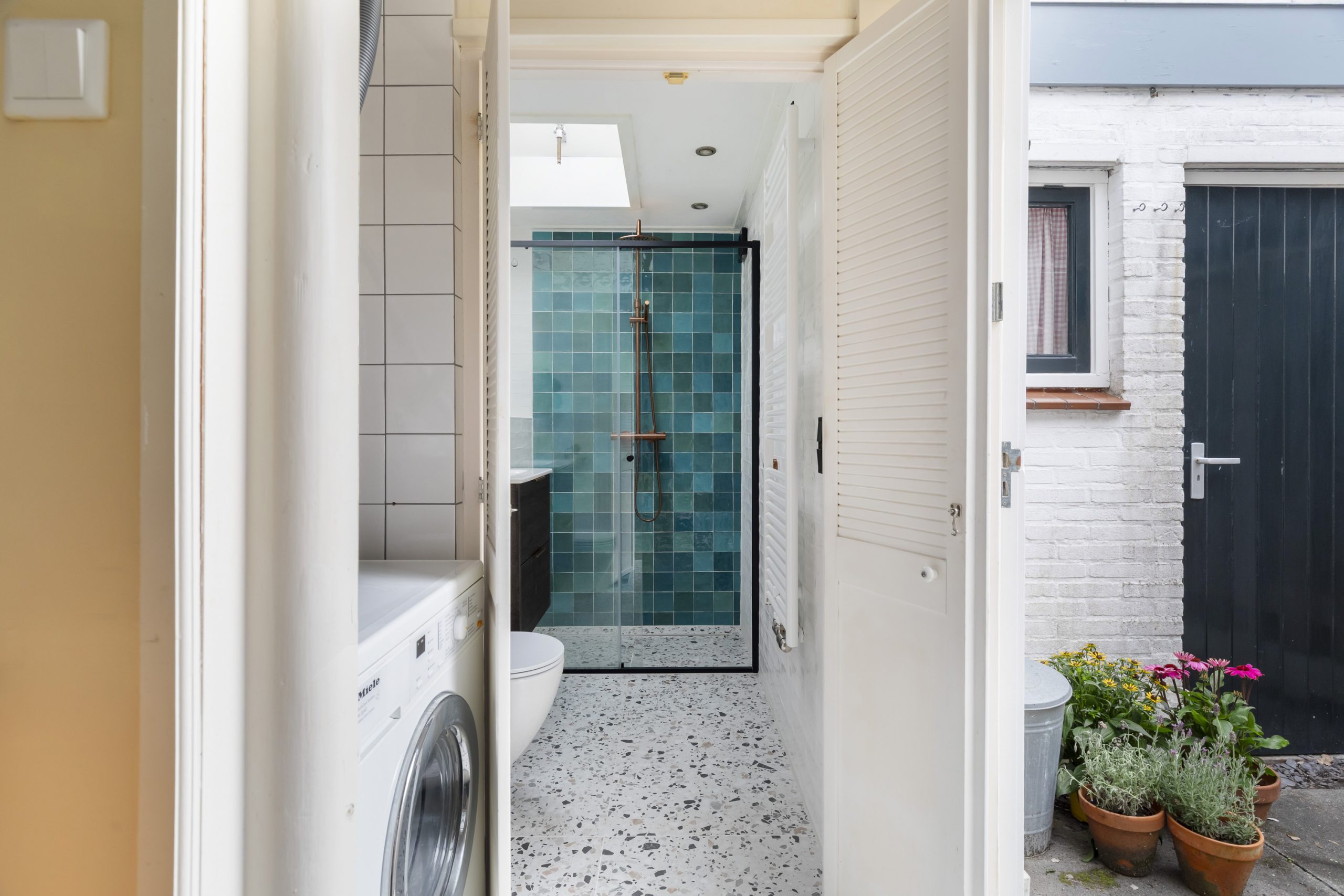 Vanuit de keuken is de tussenruimte begaanbaar met opstelplaats CV-ketel (Remeha Tzerra, 2019), aansluiting wasmachine, toegang tot de badkamer en tot de achtertuin.