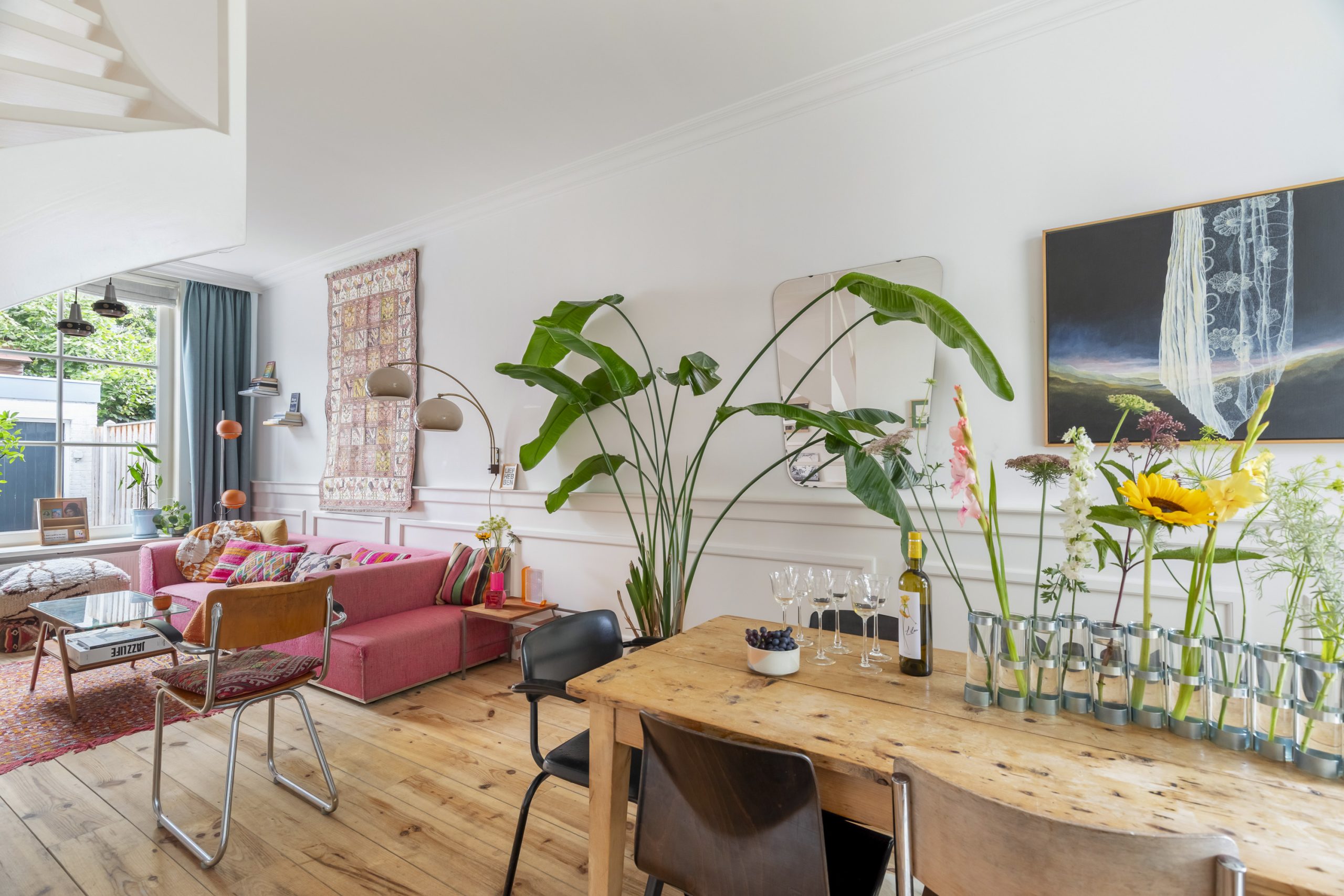 Wanneer je bij de woning aankomt, valt allereerst de prachtige geveltuin met fleurige vlinderstruik en mooie druif op. Maar achter de voordeur gaat zoveel meer moois schuil!