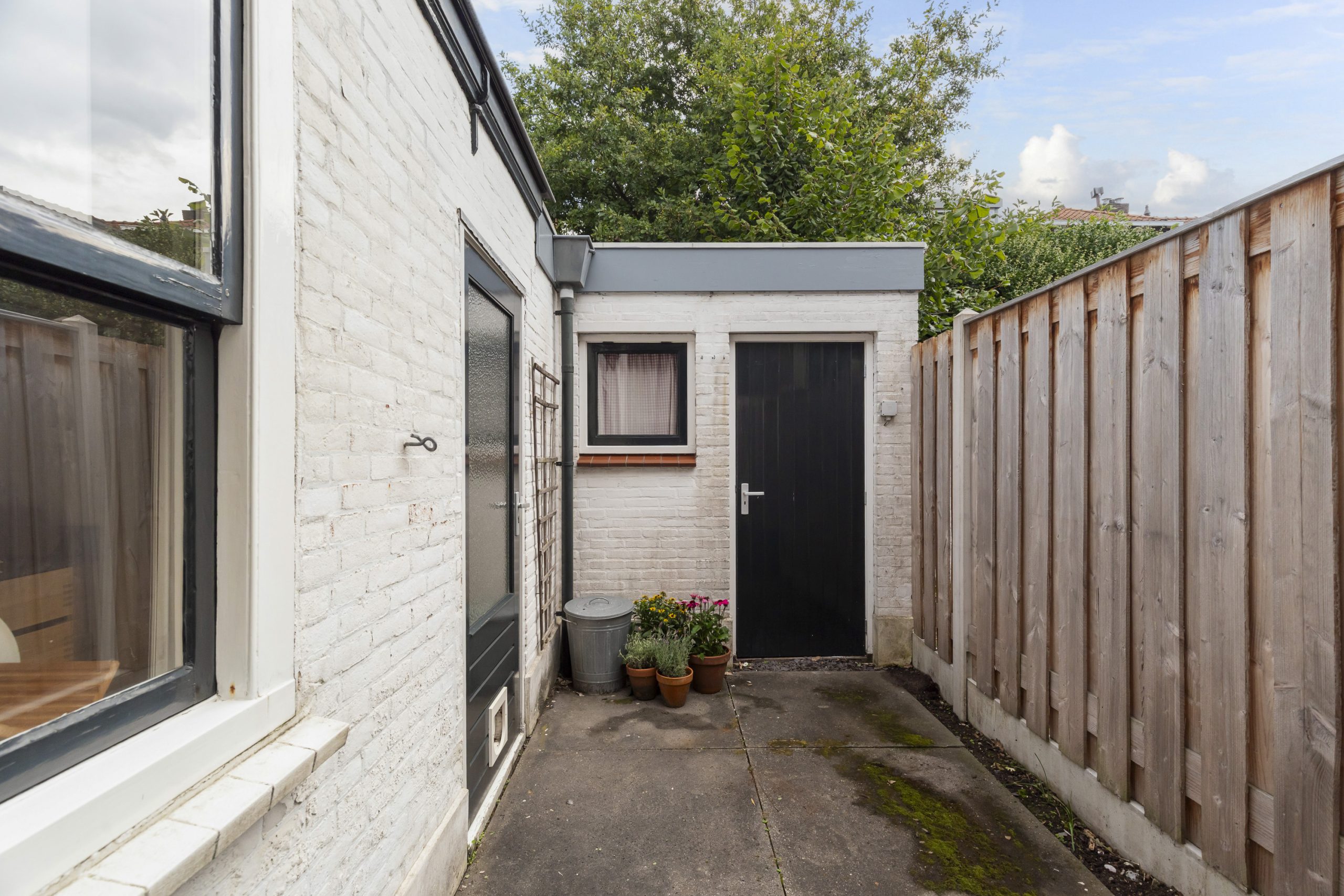 De buitenplaats is gelegen op het noordoosten, een gezellig stadstuintje waar je 's zomers heerlijk op je lounge set ploft! De berging is aan de woning vast gebouwd, deze is voorzien van elektra en lekker veel bergruimte.