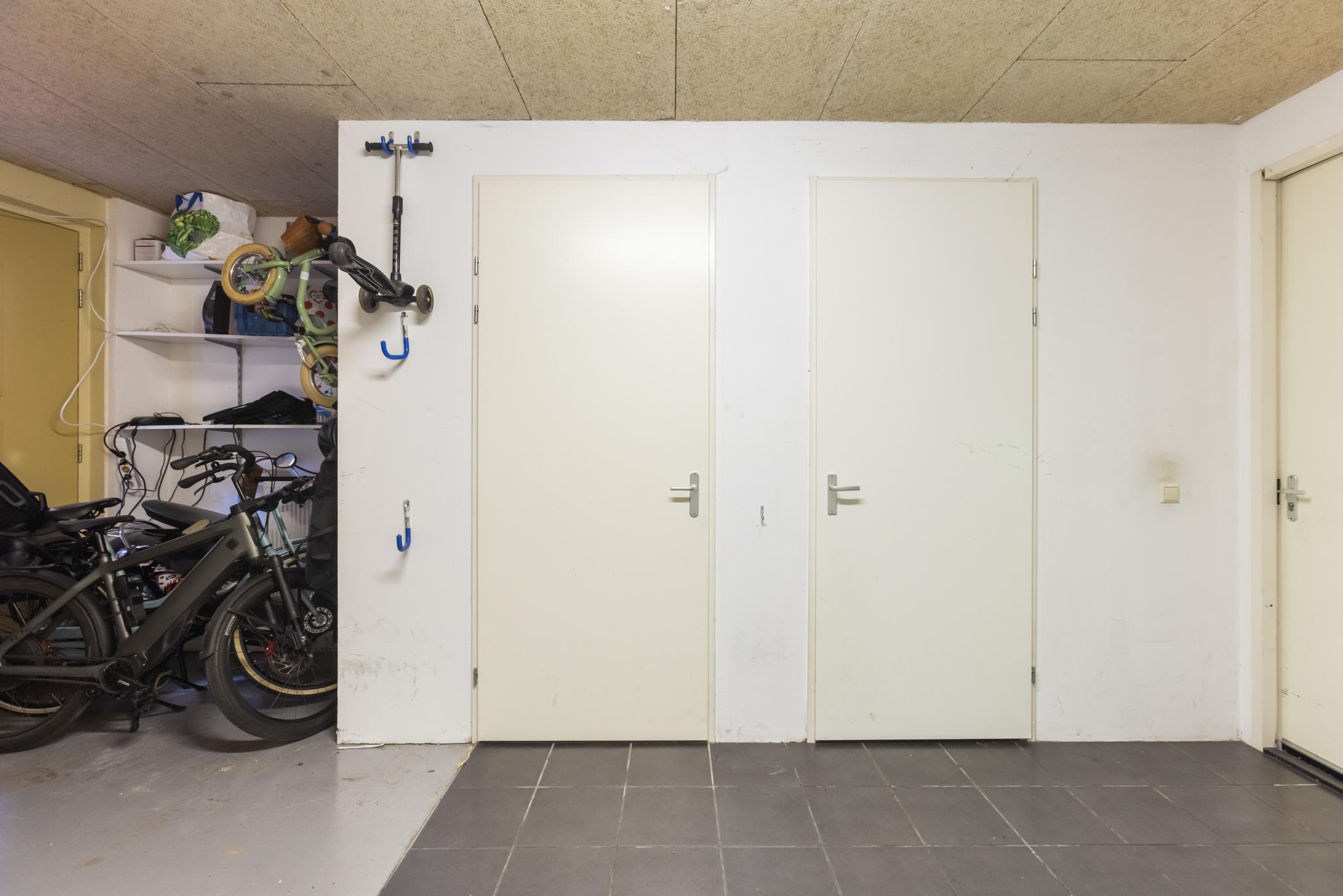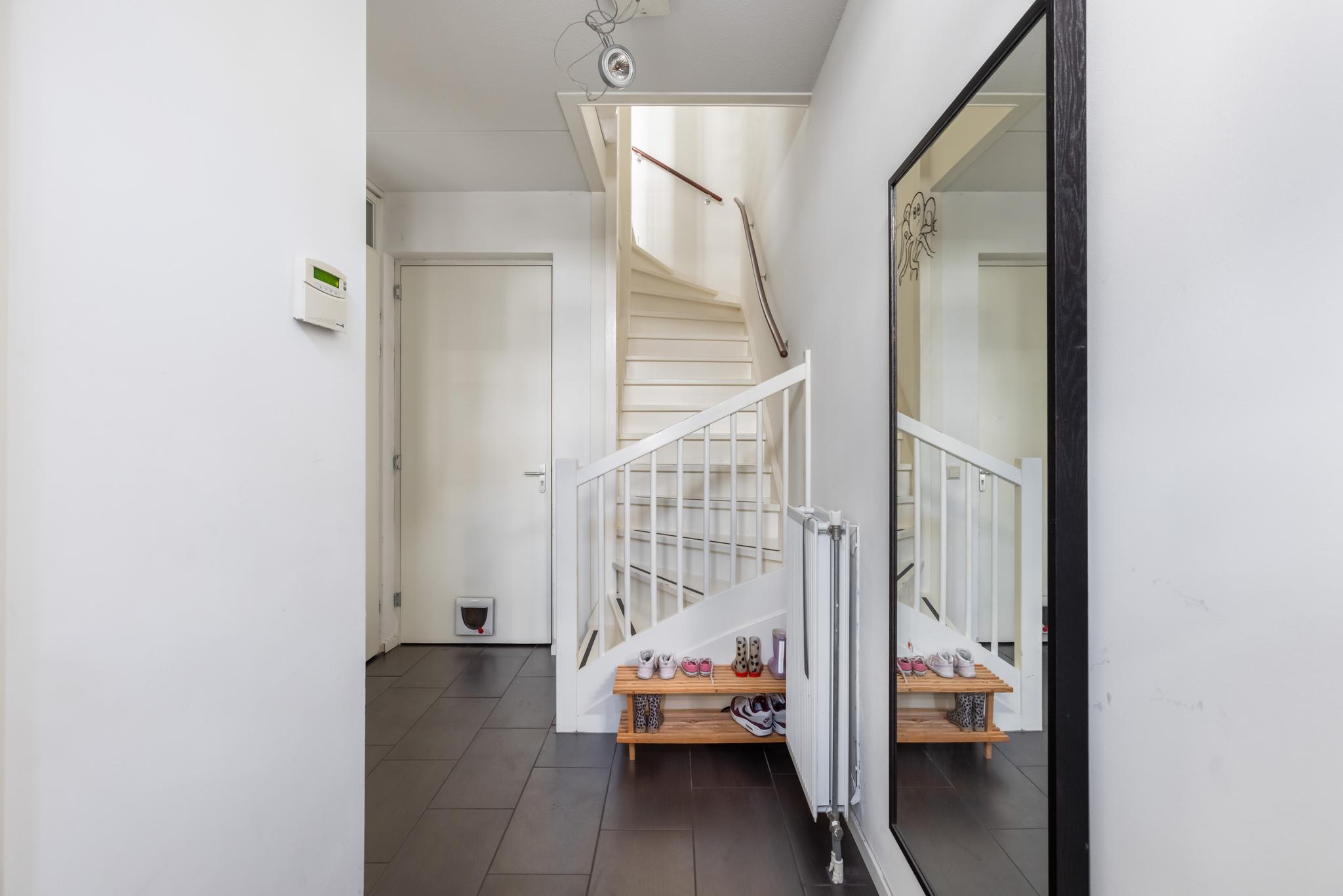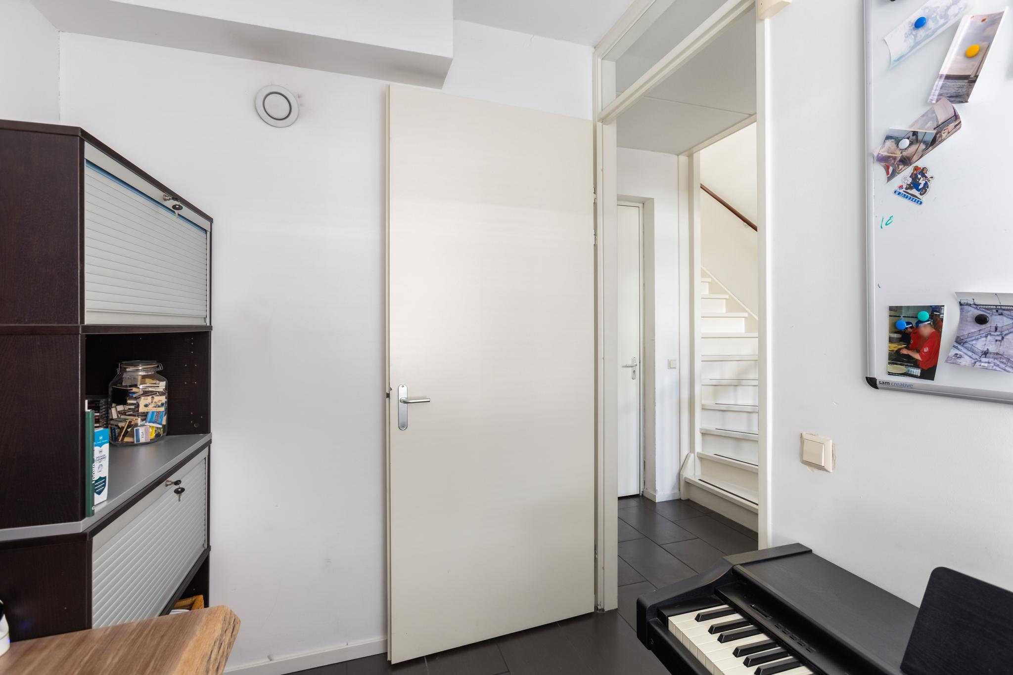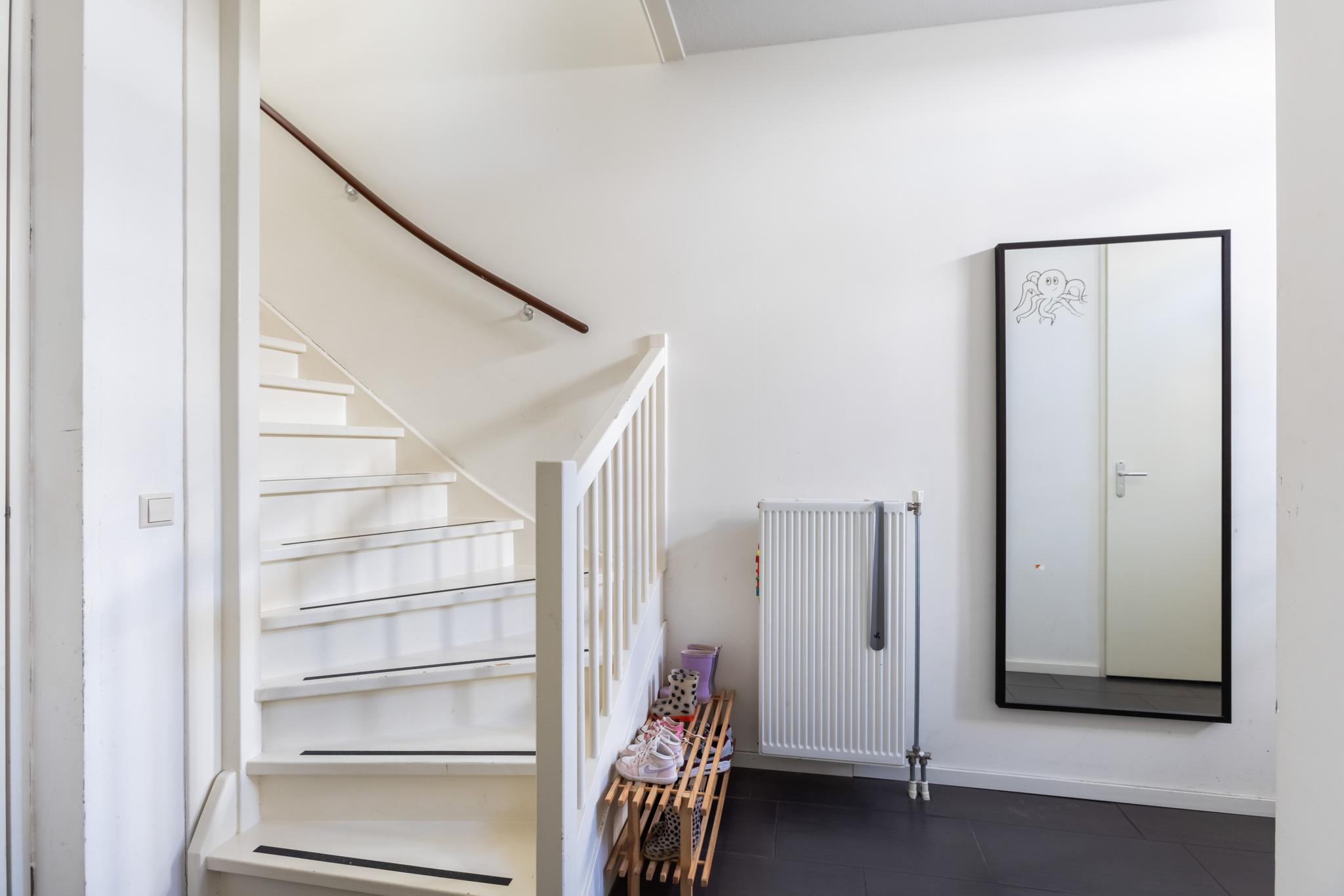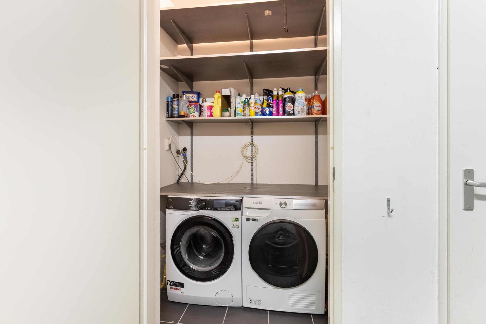 Op de begane grond vinden we verder een handige waskast met ruimte voor zowel een wasmachine als wasdroger en een praktische trapkast met lekker veel bergruimte.